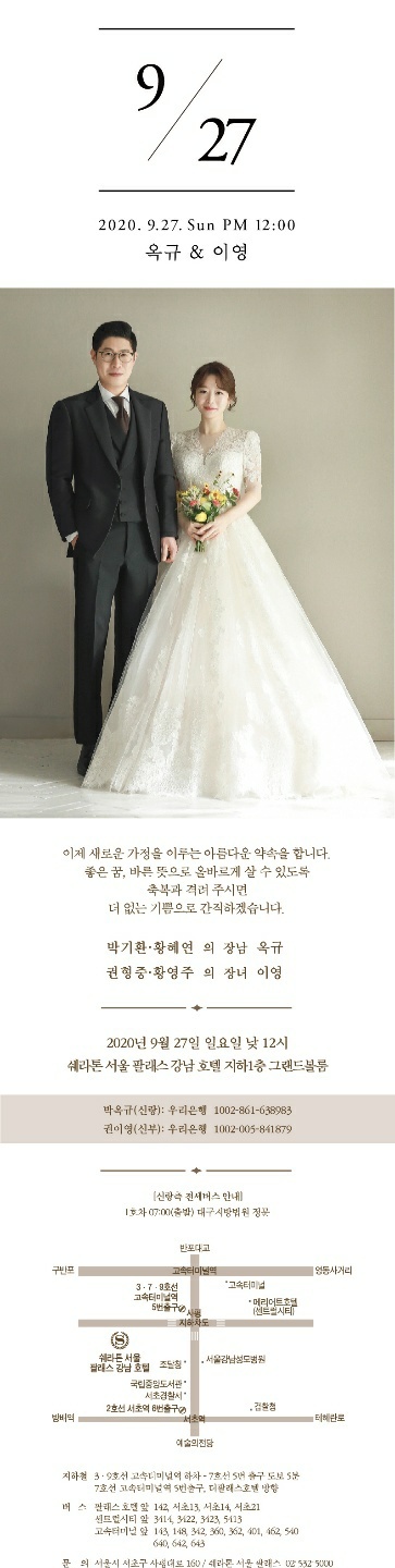 [祝 結婚] 권형중의 따님 결혼 작성자김상규|작성시간20.09.21|조회수352 목록 댓글 1 글자크기 작게가 글자크기 크게가 권형중의 따님이 결혼합니다.많이 축하해 주세요 다음검색 현재 게시글 추가 기능 열기 북마크 신고 센터로 신고 댓글 댓글 1 댓글쓰기 답글쓰기 댓글 리스트 작성자김상규 작성자 본인 여부 작성자 | 작성시간 20.09.26 결혼식장에 참석 못하시는 분은 청첩장 중간에 있는 구좌를 이용하세요.우리은행 권이영 1002 005 841879 댓글 전체보기
