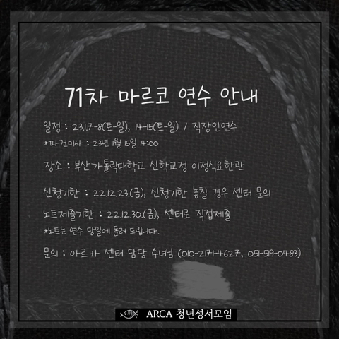 : 꼭!!! 71차 마르코연수 이름 세례명 이렇게 적어주세요.