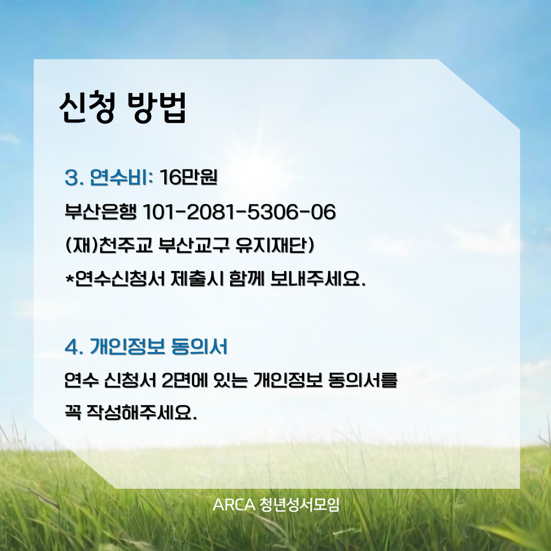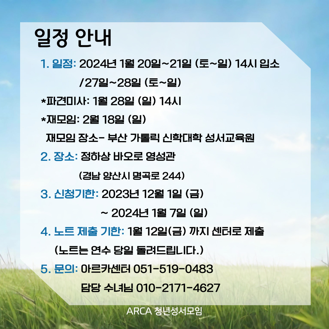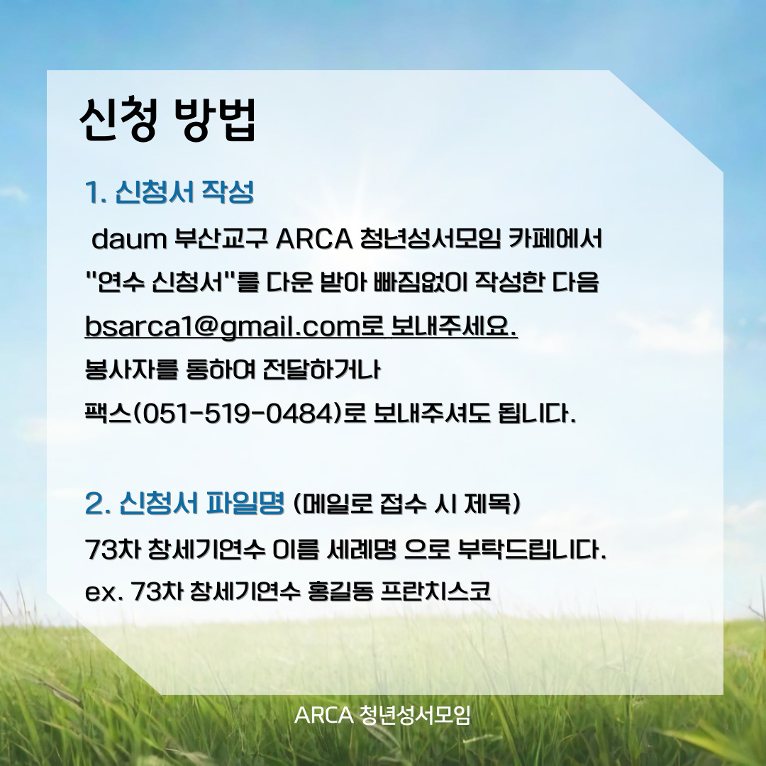 73차 창세기 연수 안내 작성자서예정 세실리아|작성시간23.11.30|조회수178 목록 댓글 0 글자크기 작게가 글자크기 크게가 https://cafe.daum.net/psbiblefamily/IRsp/123 다음검색 현재 게시글 추가 기능 열기 북마크 공유하기 신고 센터로 신고 댓글 댓글 0 댓글쓰기 댓글 리스트