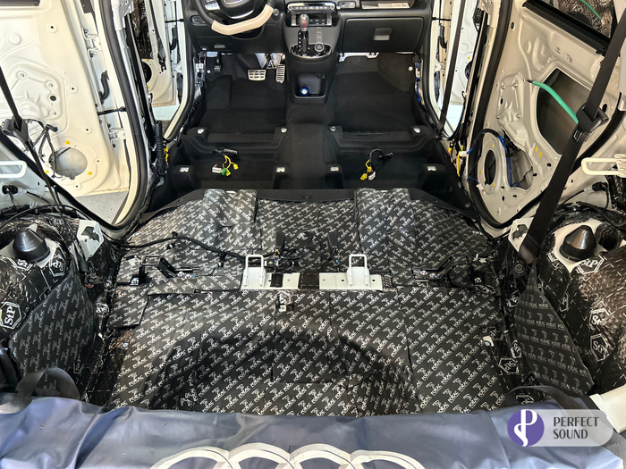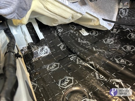 운전석/조수석 발판아래쪽부분에도 손닿는 곳까지는 꼼꼼히 방음매트를 시공해주었어요!