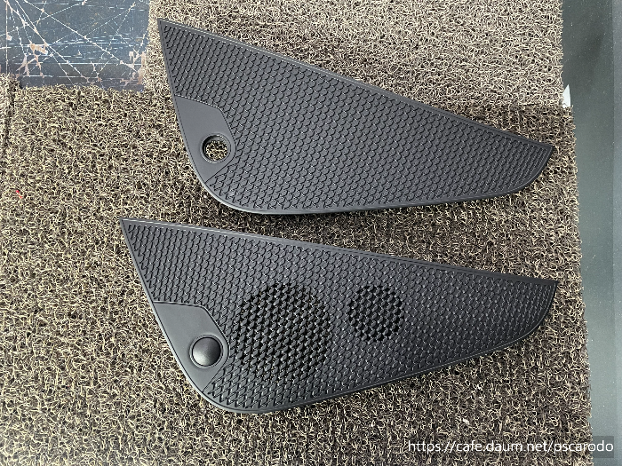 일반오디오옵션 차량은 아래 사진의 위쪽커버와같이 센터스피커 구멍이 막혀있습니다~