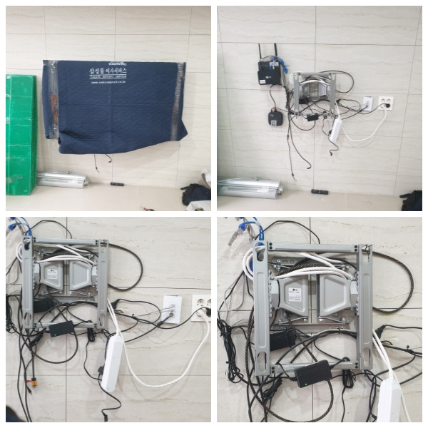 티비 중앙 기준으로 공유기 셋탑 멀티탭 순으로 작업을 진행합니다.