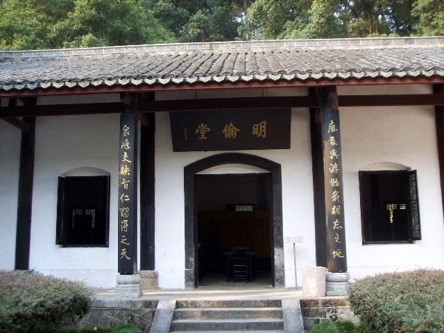 明伦堂,又名彝伦堂。明正统三年(公元1438年),南康知府翟溥福建。砖木结构,白寺灰瓦,人字形硬山顶,四开间,前有走廊。明伦堂系书院授课的地方,故外悬挂有“鹿 与游,物我相忘之地;泉峰交映,仁智独得之天”的对联,以鼓励生员用心攻读,以获得“仁智独得之天”。