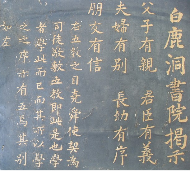 朱熹接辦書院時,曾立下《白鹿洞書院學規》(或稱《白鹿洞書院揭示》,內容略有所差),主要述說儒家倫理觀,影響書院千年的辦學方針。全文為: