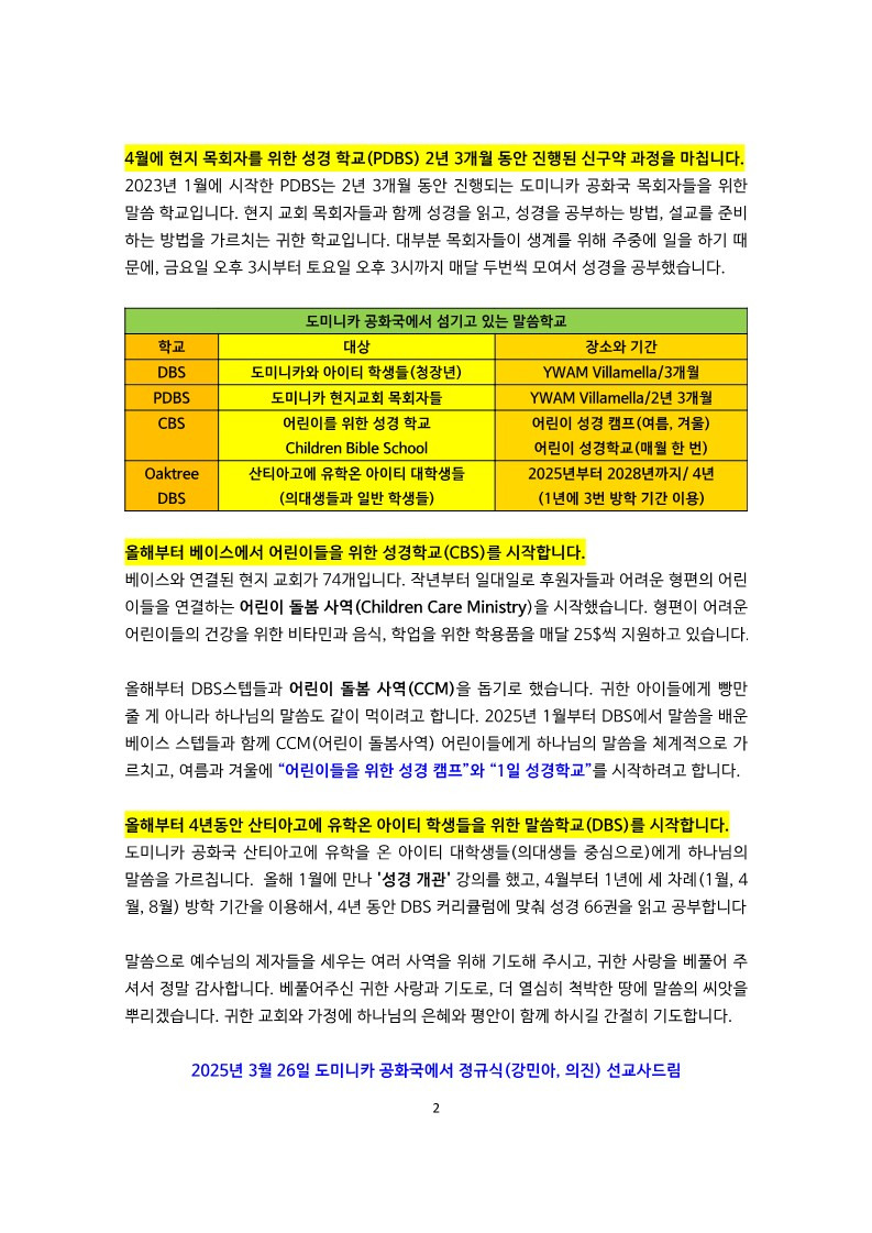 아이티, 도미니카공화국 - 정규식(강민아) 선교편지 (2025년 3월) 작성자부산갈매기|작성시간25.03.28|조회수17 목록 댓글 0 글자크기 작게가 글자크기 크게가 다음검색 현재 게시글 추가 기능 열기 북마크 공유하기 신고 센터로 신고 댓글 댓글 0 댓글쓰기 답글쓰기 댓글 리스트