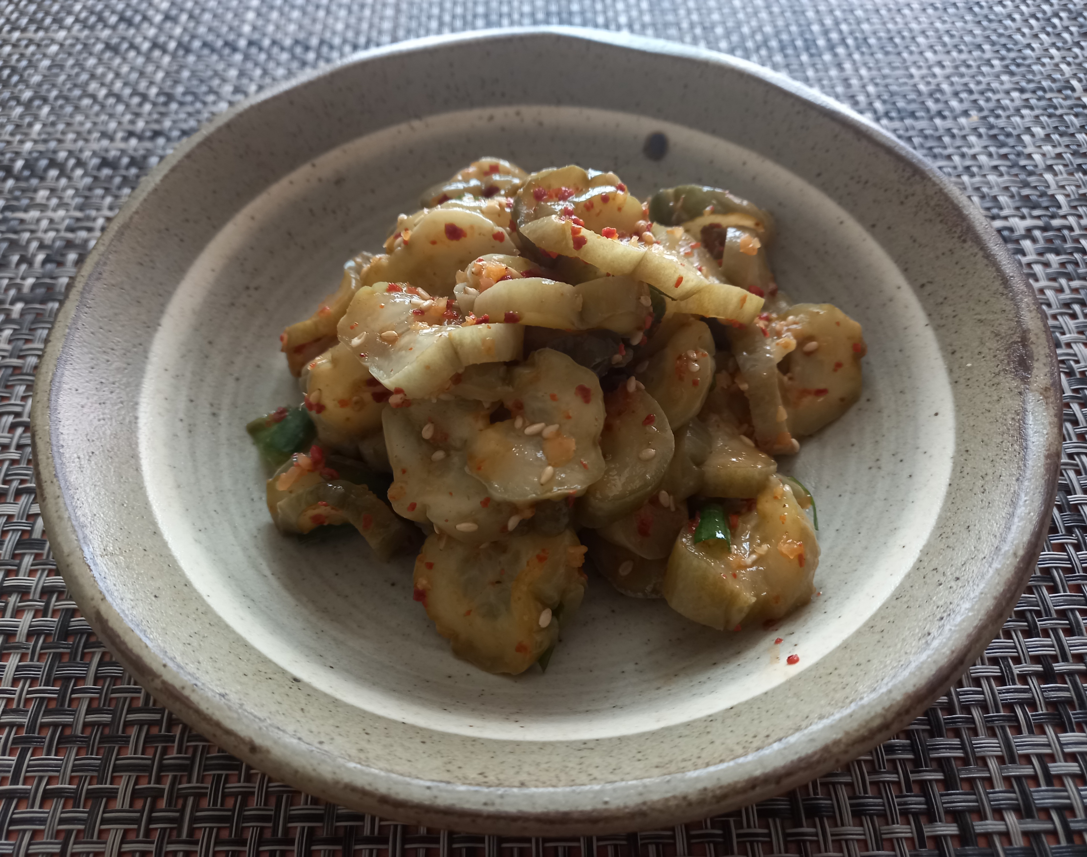 오이지 색이 참 이쁘게 잘 숙성되었어요.