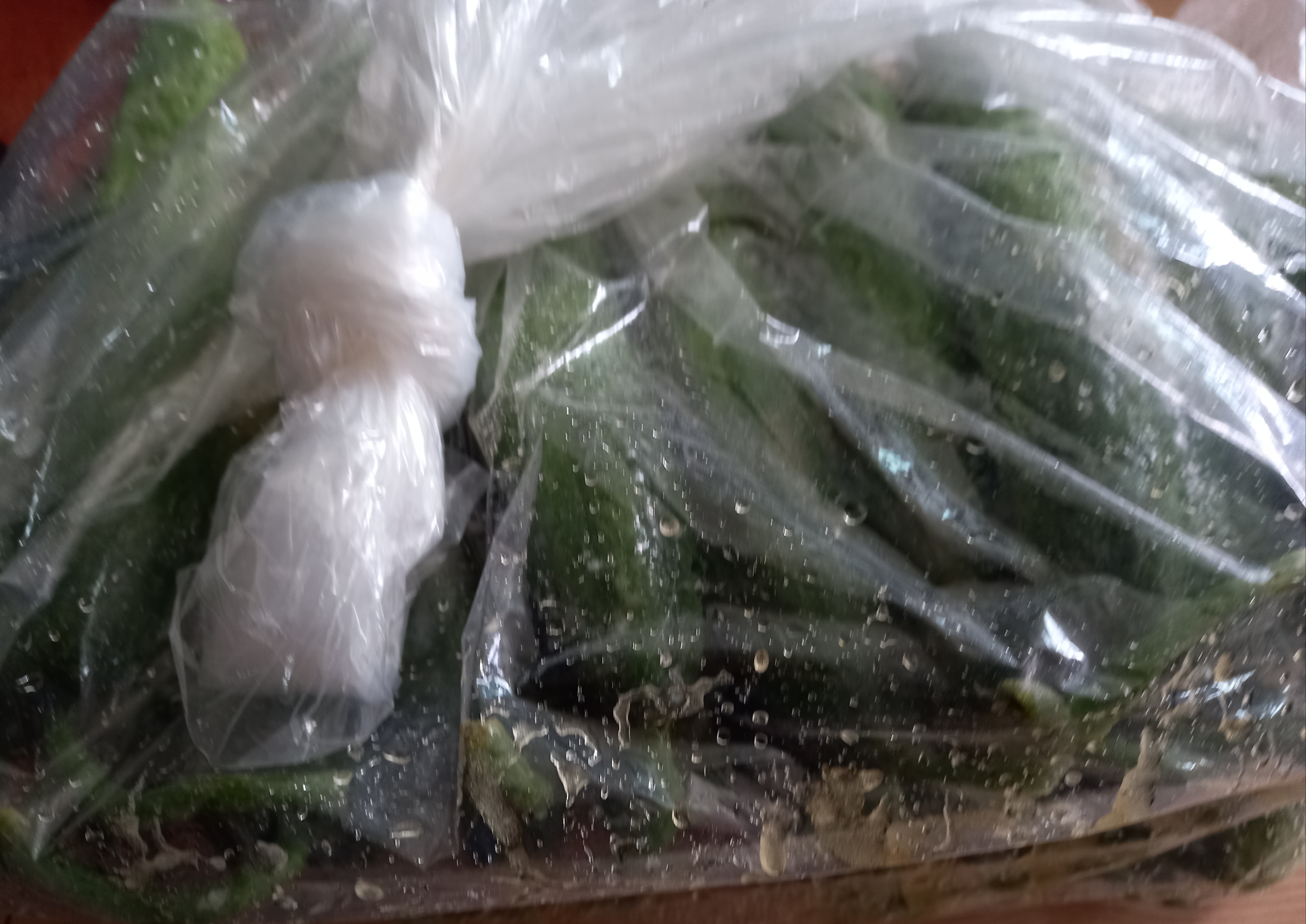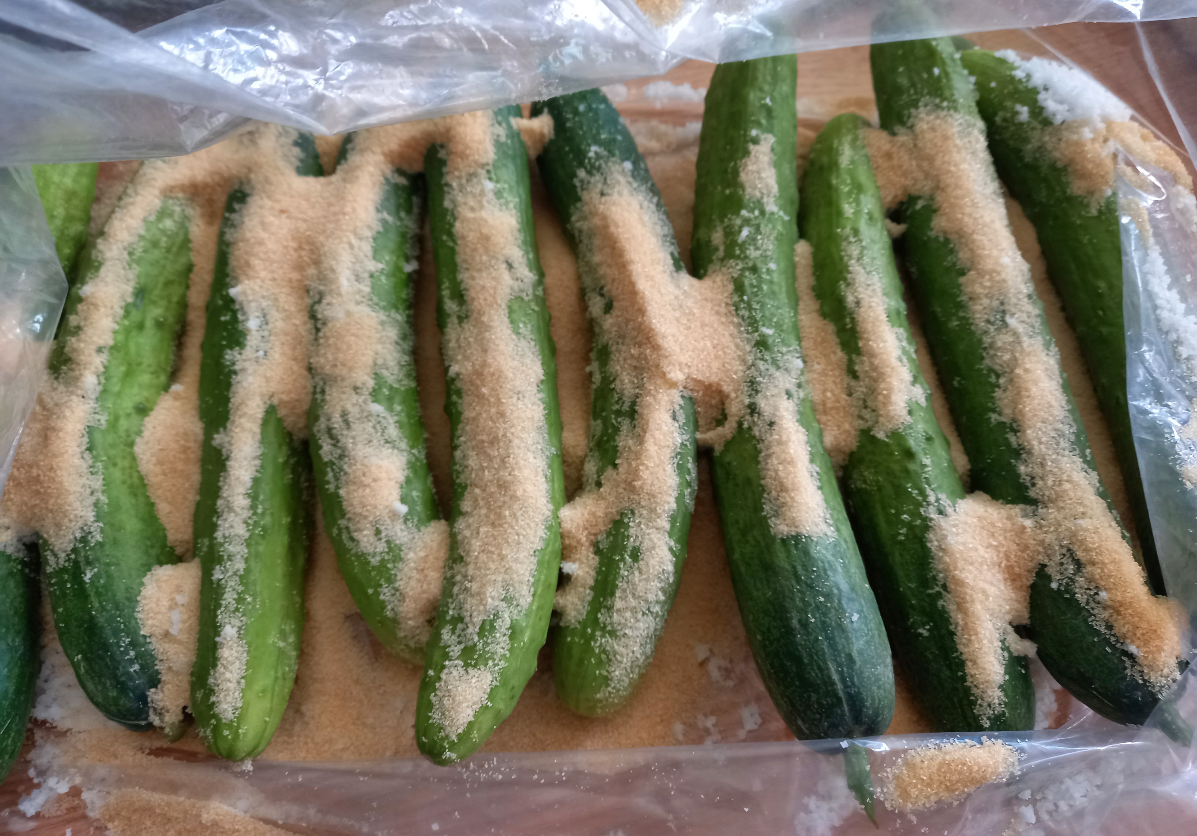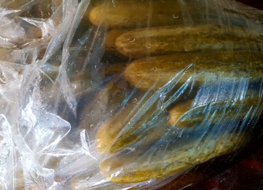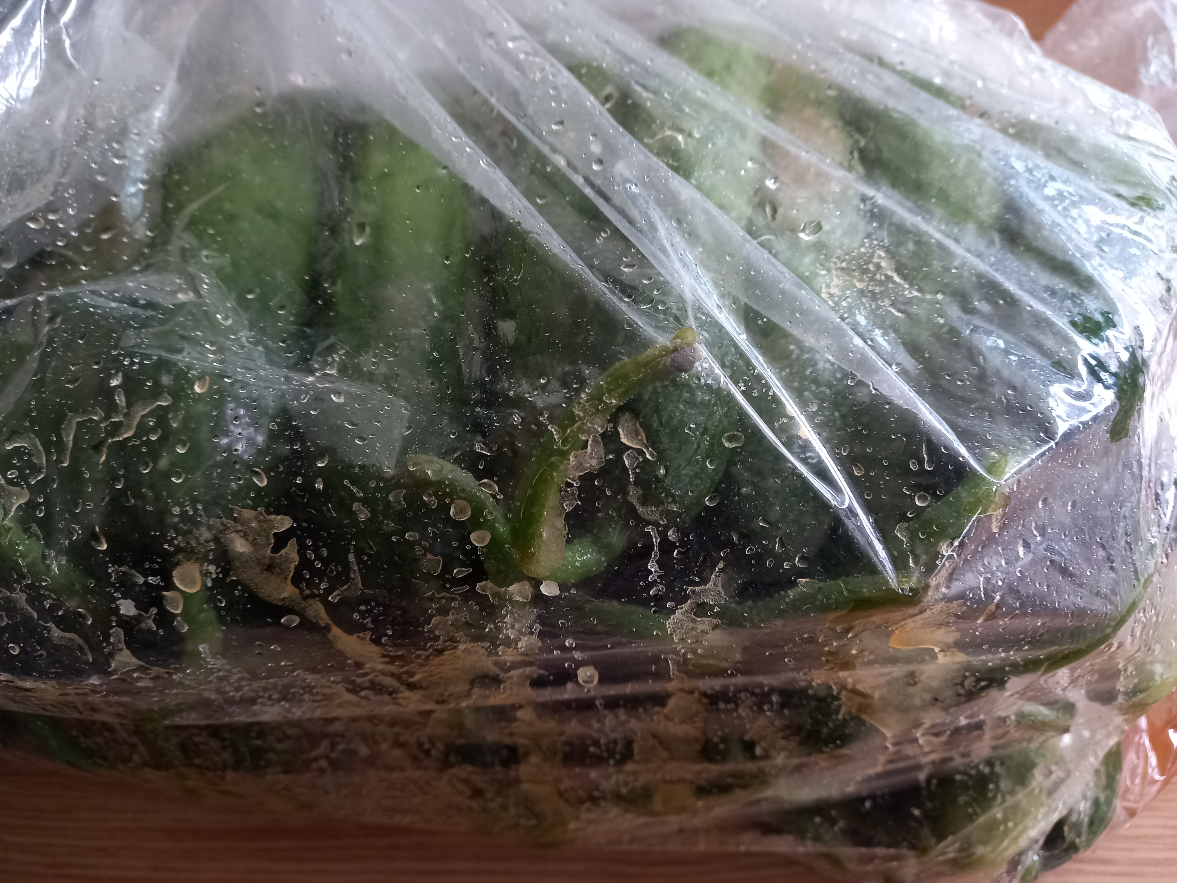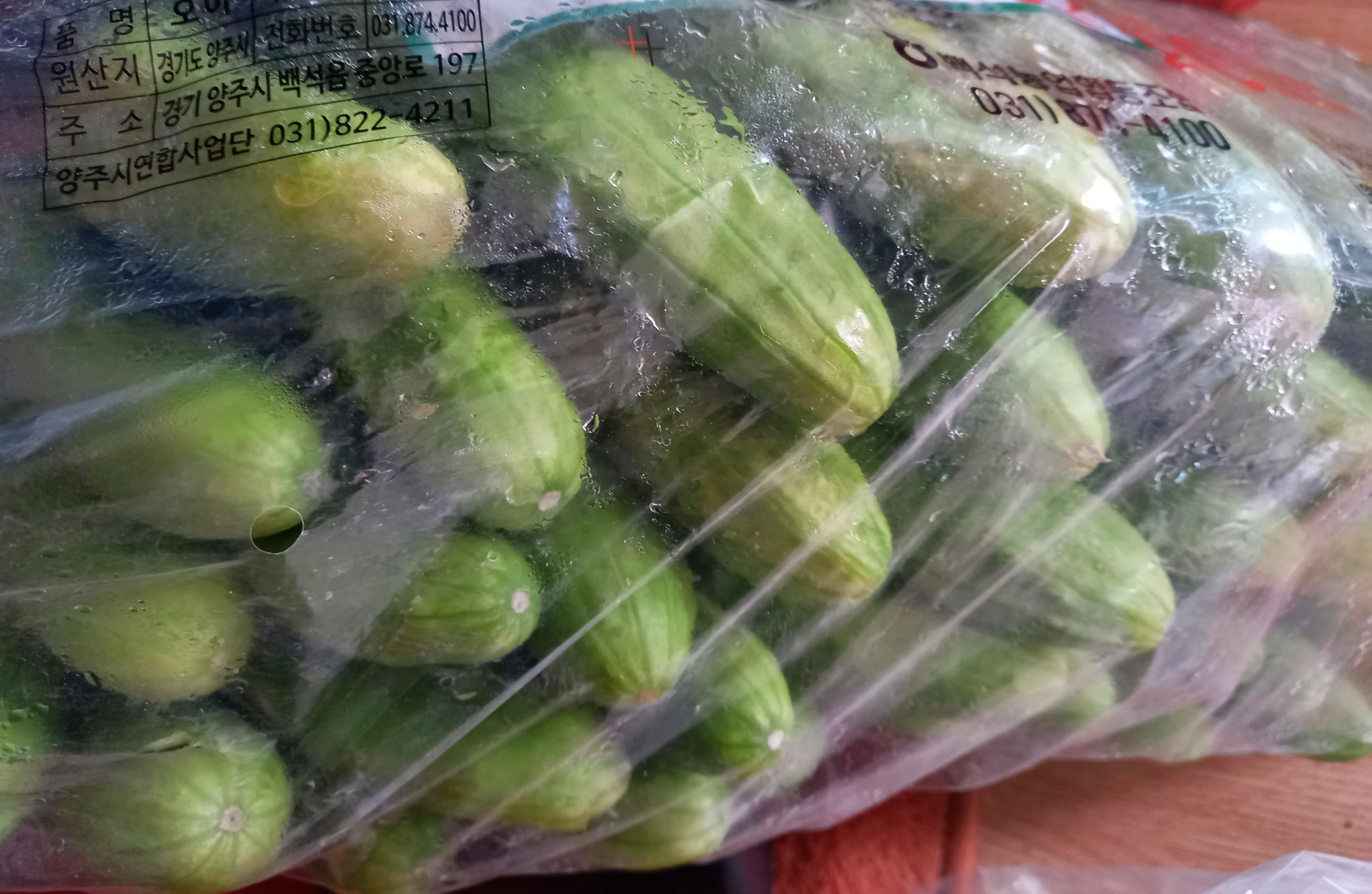 비닐 팩에 공간이 생기도록 묶어야 오이지에서 수분이 빠져 나오면서 국물이 생기기 때문 입니다.