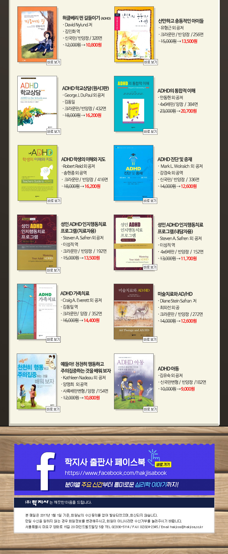 [서적] ADHD 관련 서적 작성자최현수|작성시간17.11.23|조회수130 목록 댓글 0 글자크기 작게가 글자크기 크게가 다음검색 현재 게시글 추가 기능 열기 북마크 신고 센터로 신고 댓글 댓글 0 댓글쓰기 답글쓰기 댓글 리스트