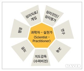 이러한 학문적 배경 하에 임상 심리학자들은 다양한 장면에서 매우 광범위한 역할을 수행하고 있다. 어떤 장면에서 활동하든 임상 심리학자는 객관적인 연구를 통해 이론을 검증하고 이러한 이론에 근거해 임상 활동을 수행해 나가야 한다는 점에서 과학자이자 실천가(scientist & practitioner)이다. 임상 심리학자들이 담당하는 역할을 일반적으로 요약하면 그림 1과 같다.