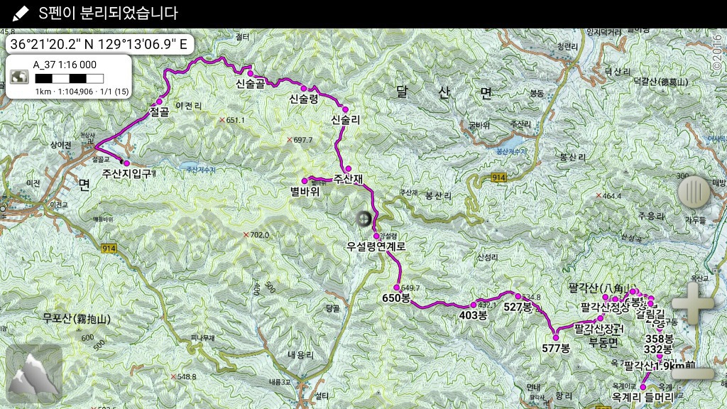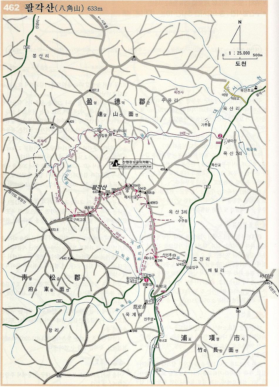 | 산 행 지 | 영덕 팔각산(628m) 코스A:주산지-절골-신술령-주산재-우설령-팔각산-팔각산1봉-옥계게곡-주차장 약19km 6:30분 코스B:옥산2리-산성골-도도구터골-팔각산(정상)-팔각산1봉-옥계계곡-주차장 약10km 6 시간 |