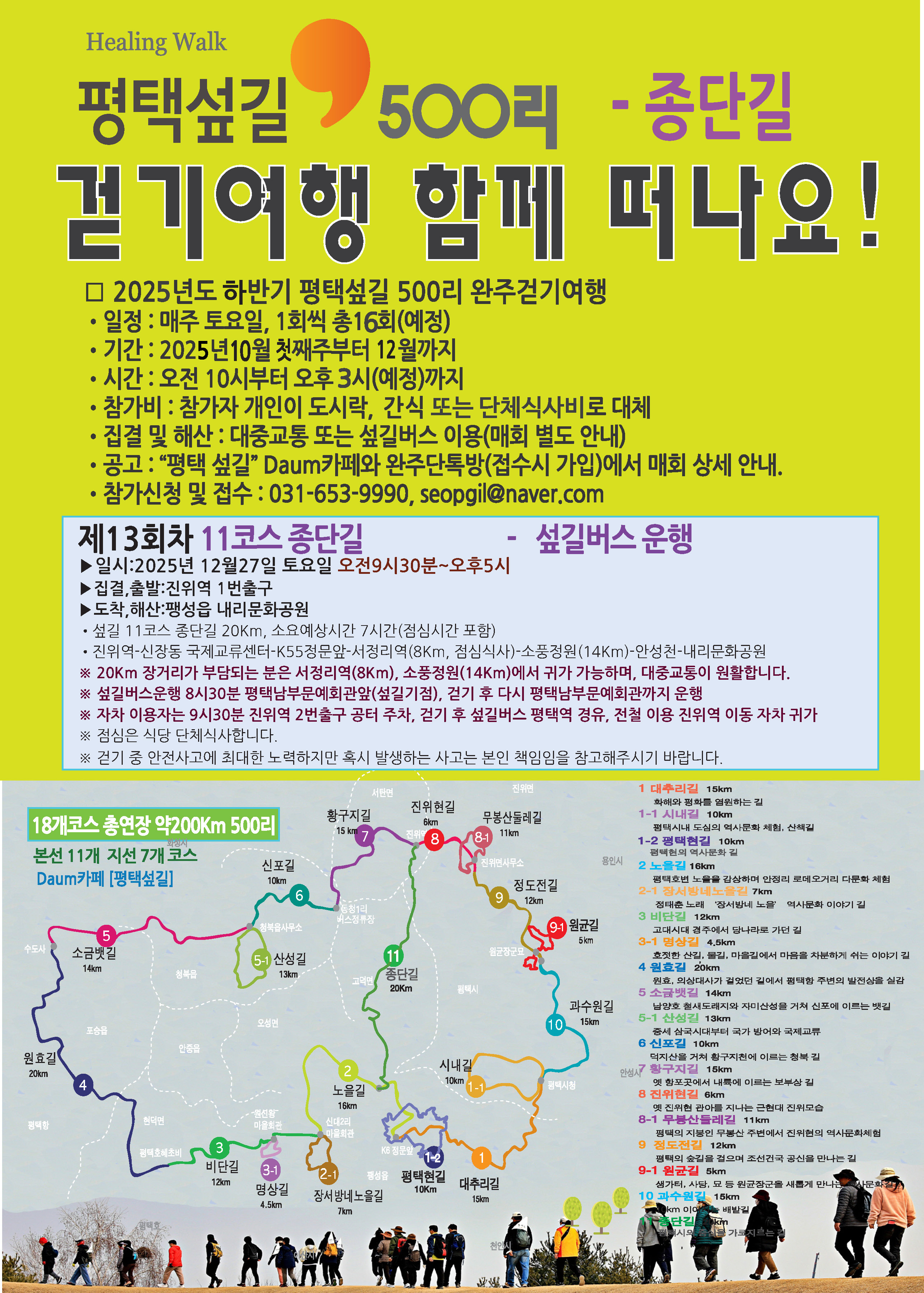 섶길500리 걷기여행 13회차 - 7코스 종단길(12월27일 토요일) 작성자광우|작성시간25.12.22|조회수107 목록 댓글 0 글자크기 작게가 글자크기 크게가 다음검색 현재 게시글 추가 기능 열기 북마크 공유하기 신고 센터로 신고 댓글 댓글 0 댓글쓰기 답글쓰기 댓글 리스트