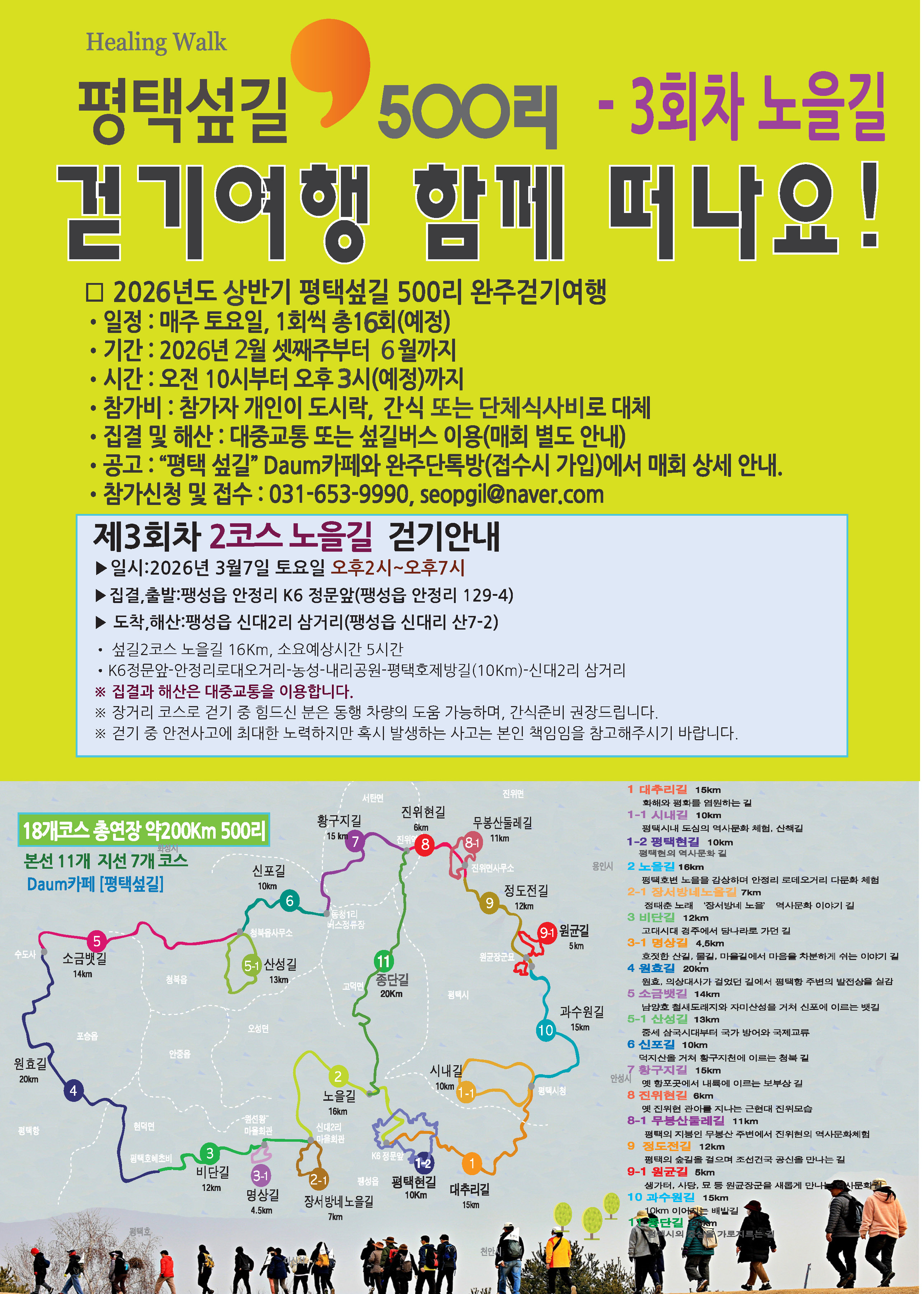 2026년 상반기 500리 걷기여행 안내 - 2코스 대추리길(3월7일 토요일) 작성자광우|작성시간26.02.28|조회수128 목록 댓글 0 글자크기 작게가 글자크기 크게가 다음검색 현재 게시글 추가 기능 열기 북마크 공유하기 신고 센터로 신고 댓글 댓글 0 댓글쓰기 답글쓰기 댓글 리스트
