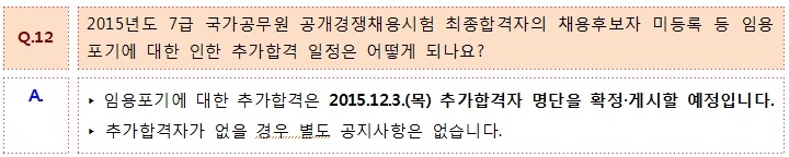 - 어제 고시센터를 통해 인혁처가 공개한 “질의응답(Q&A)” 중에 12월 3일 추가합격을 공지한다는 내용이 있습니다.