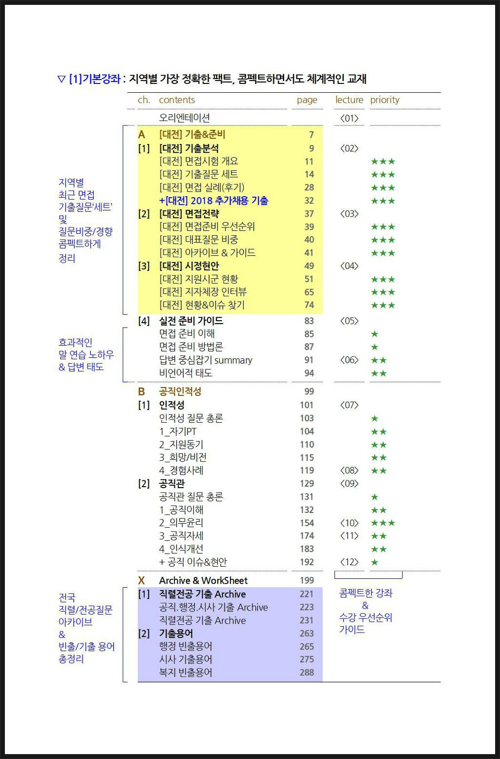 제 교재/강의의 차별성은 그뿐만 아닙니다. 소수 기술직렬 응시생들로선 가장 신경쓰이는, 하지만 비중은 높지 않은, "계륵" 같은 것이 바로 전공/직렬질문입니다. 이를 위해서 거의 모든 직렬을 대상으로 "전국" 시도 면접에서 나온 해당 질문 3개년치가 망라된 Archive도 교재에 실려있습니다. 이 역시 일선 전공과목 강사들이 모아서 대물림되는 기출전공질문 복사물과 비교해서 신뢰도나 양적인 면에서 나을 것이라 믿습니다. 이들 기출만 점검하시고 면접장 가셔도 기본은 충분히 하실 것입니다.
