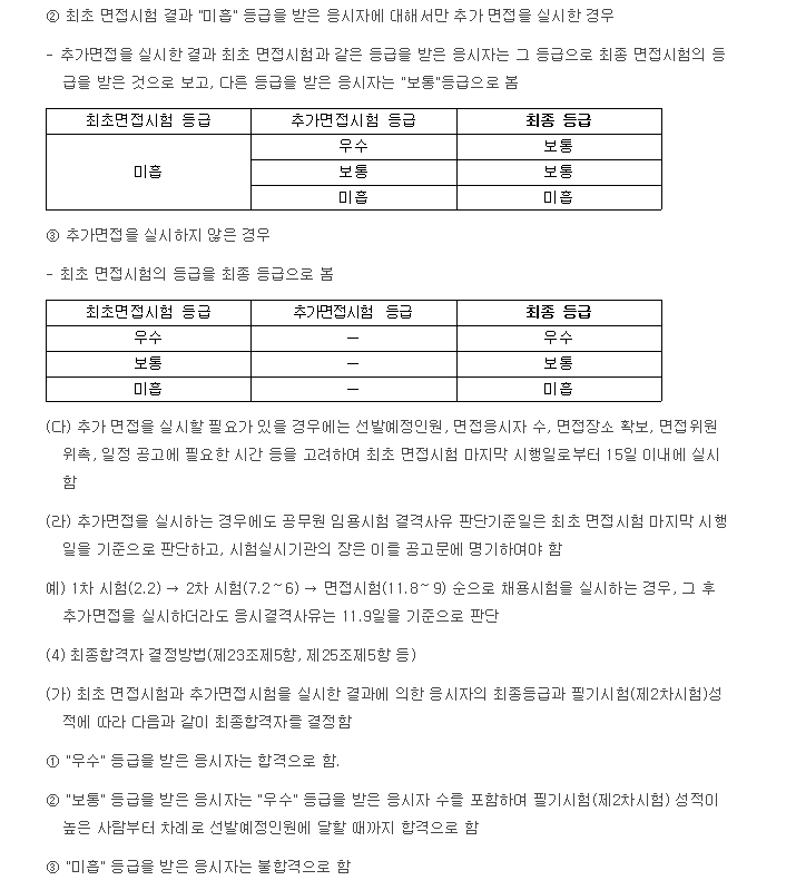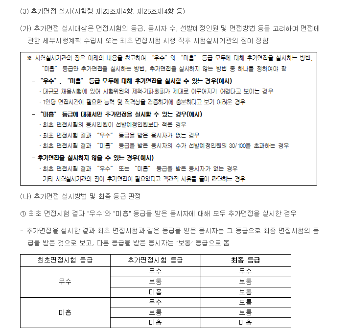 * 현실적으로 별로 없긴 합니다. 다만, 소수직렬의 경우(1-2명 뽑는 데 필합자가 3명 이상인 경우)는 '우수' 대상자에 한해 재면접을 실시하는 경우도 있는 것으로 "추정'됩니다.