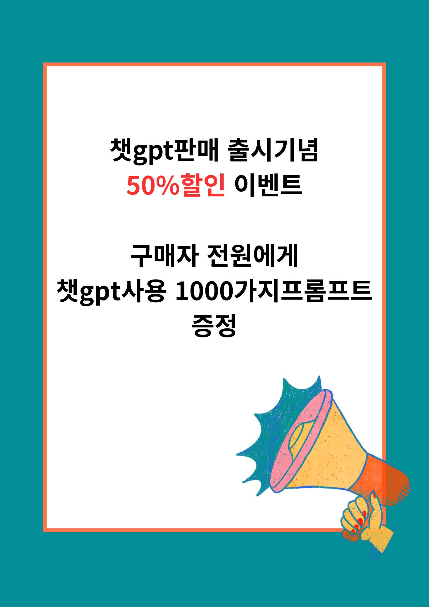 챗gpt 판매 출시기념으로 50%할인 행사를 하고있습니다.