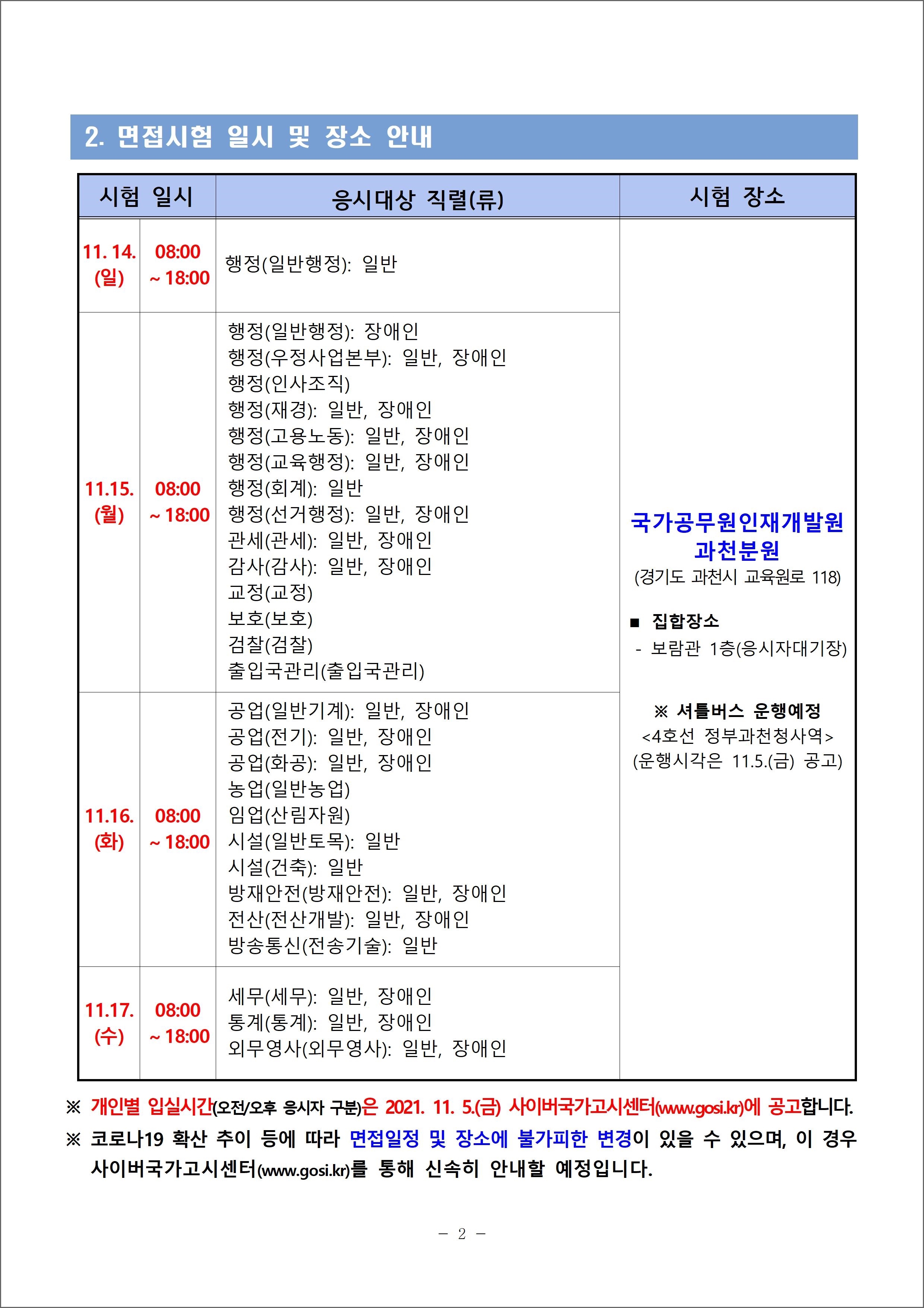 - 면접일정은 11월14일 #일반행정 등 공고됐습니다(아래 사진). 해당 면접일 "오전조/오후조" 어디에 배정될 것인지는 11월5일 사이버고시센터에 공고될 예정입니다.
