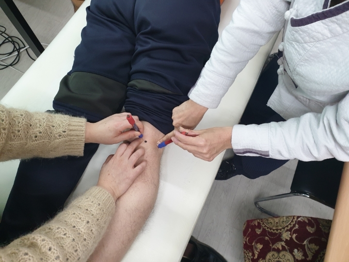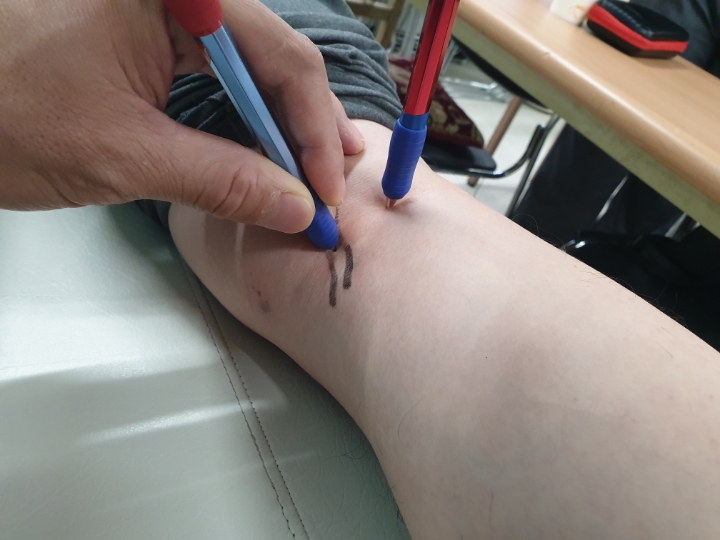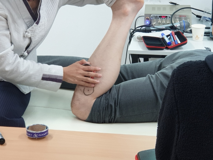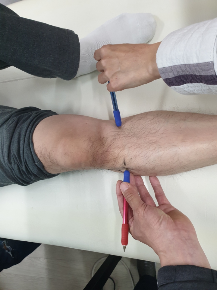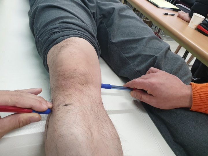 이렇게 무릎에 있는 혈자리만 취혈하고 테스트를 해보니 무릎이 한결 편해지고 10프로 정도 통증이 남으셨다고 하네요.