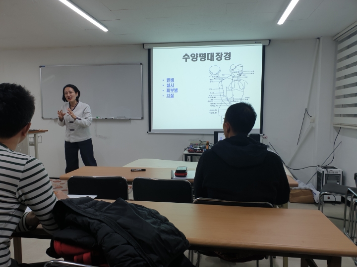 어김없이 강의는 진행이 되었는데 이번 주제는 '무릎질환' 해결하는 방법 부터 시작되었습니다