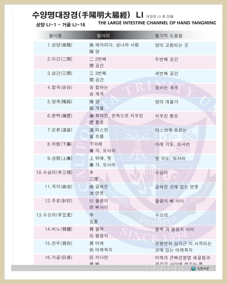 수양명 대장경 혈자리 순서 입니다! 작성자이한진(전주)|작성시간10.12.14|조회수1,922 목록 댓글 6 글자크기 작게가 글자크기 크게가 다음검색 현재 게시글 추가 기능 열기 북마크 공유하기 신고 센터로 신고 댓글 댓글 6 댓글쓰기 답글쓰기 댓글 리스트 작성자김옥일(대전) | 작성시간 10.12.15 멋들어진 정리네요. 작성자박재형(영양) | 작성시간 11.03.04 대단히 감사합니다^^ 작성자조종길(시드니) | 작성시간 11.03.17 정말 외우기 쉽게 잘 만드셨습니다.감사합니다 작성자윤남훈(노화) | 작성시간 11.10.05 우후,,,,,,,,,,,대단 하시네요. 감사합니다. 작성자이명환(함평) | 작성시간 11.11.10 오 보기 좋게 정리가 되었네요 정말 감사합니다. ^^ 댓글 전체보기