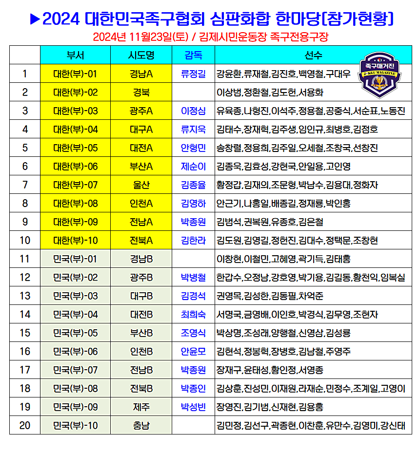 [스크랩] 2024 대한민국족구협회 심판화합 한마당(참가현황/대진표) 작성자평택마루홍준|작성시간24.11.23|조회수28 목록 댓글 0 글자크기 작게가 글자크기 크게가 다음검색 스크랩 원문 : 전성배의 족구매거진 현재 게시글 추가 기능 열기 북마크 공유하기 신고 센터로 신고 댓글 댓글 0 댓글쓰기 답글쓰기 댓글 리스트