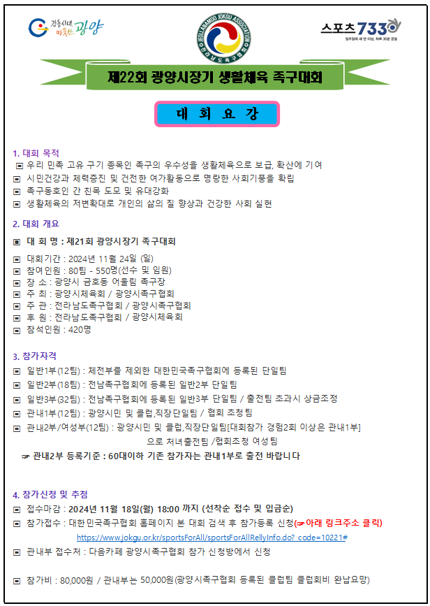 [스크랩] 제22회 광양시장기 족구대회 결과 작성자평택마루홍준|작성시간24.11.26|조회수26 목록 댓글 0 글자크기 작게가 글자크기 크게가 다음검색 스크랩 원문 : 전라남도 족구협회 현재 게시글 추가 기능 열기 북마크 공유하기 신고 센터로 신고 댓글 댓글 0 댓글쓰기 답글쓰기 댓글 리스트