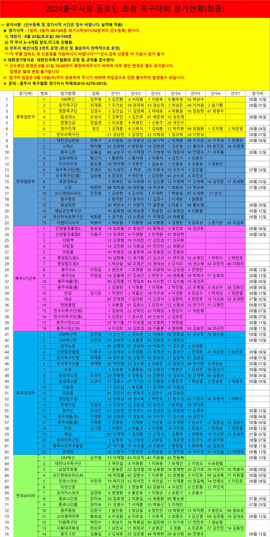 [스크랩] 2024충주사랑 사과배 동호인초청 족구대회 최종참가현황 작성자평택마루홍준|작성시간24.08.18|조회수26 목록 댓글 0 글자크기 작게가 글자크기 크게가 다음검색 스크랩 원문 : 충주시족구협회 현재 게시글 추가 기능 열기 북마크 공유하기 신고 센터로 신고 댓글 댓글 0 댓글쓰기 답글쓰기 댓글 리스트