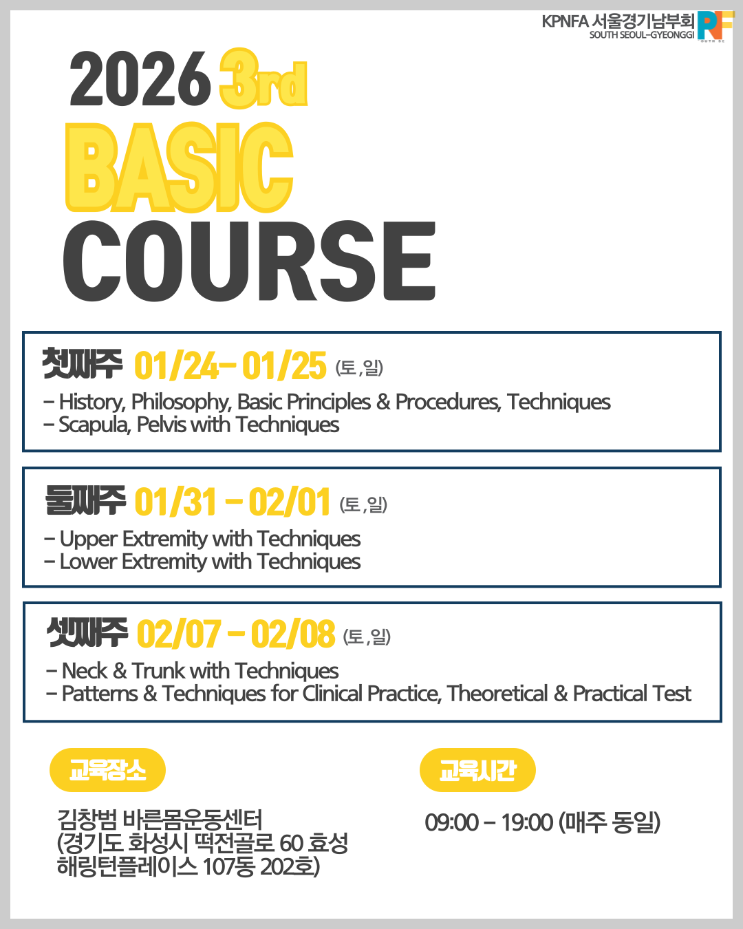 안녕하세요. KPNFA 서울·경기남부회에서 2026년도 제3차 Basic Course를 다음과 같이 개최합니다.