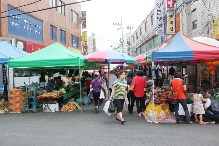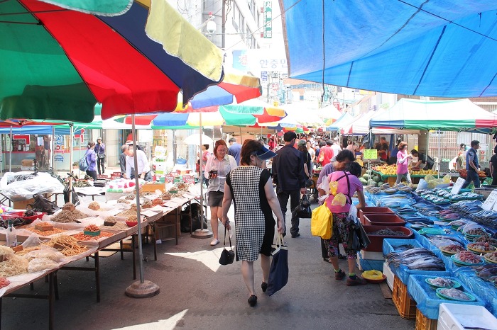 안중전통시장은 1995년 서부 4개면( 포승면(읍), 청북면, 오성면, 현덕면)의 중심지인 오성면 안중리에 시장이 형성되었으나, 안중이 읍으로 승격되며 서부지역 5개 읍·면을 어우르는 전통시장으로 300여개의 점포가 입점할 만큼 성장해 왔으나, 대형마트 입점 등으로 인한 전통시장경제가 위축, 대응차원으로 전통5일장을 확대하여, 생활과 밀접한 상품과 먹거리를 다양하게 즐길 수 있는 종합시장으로 재 개장했습니다.