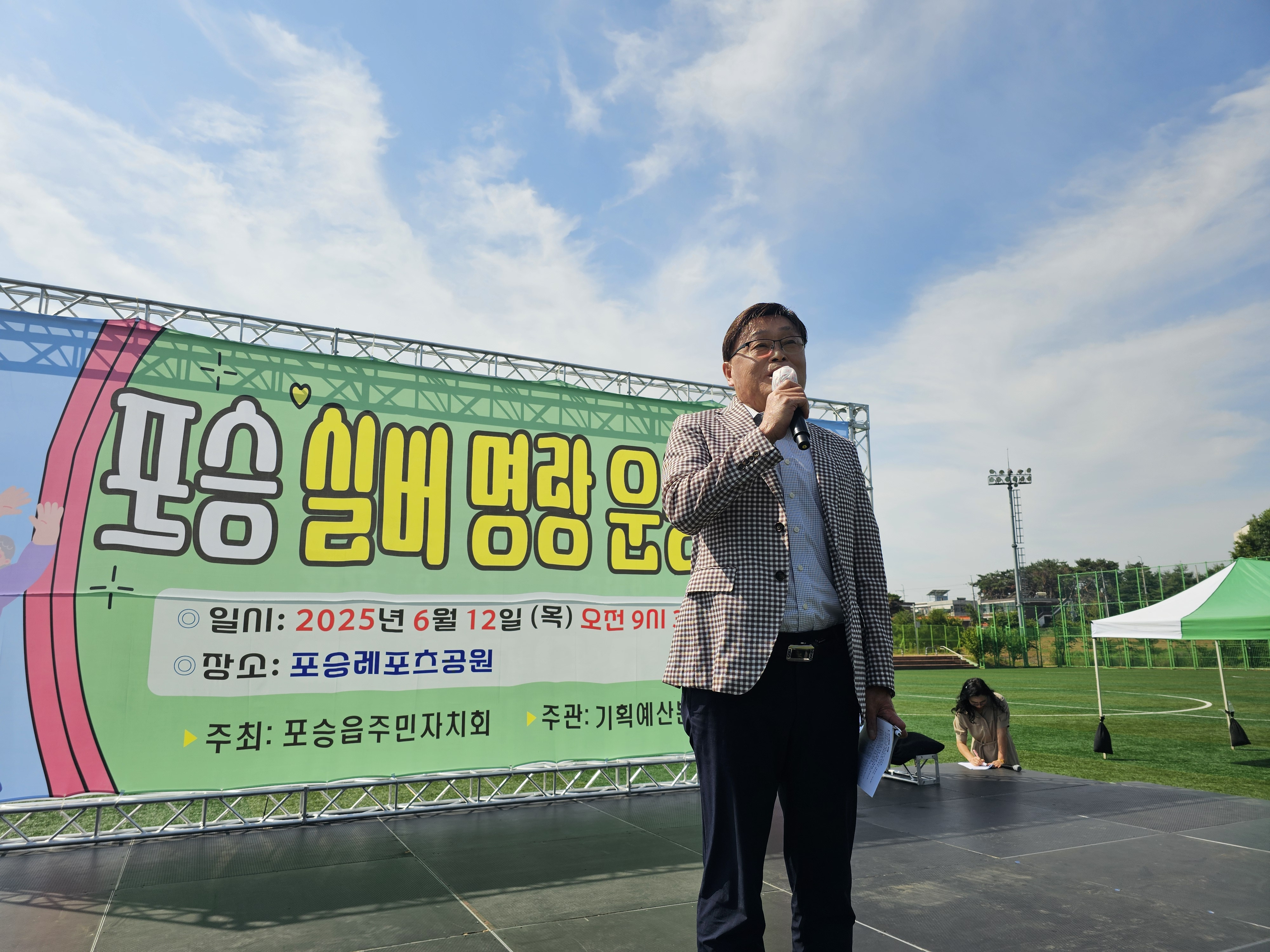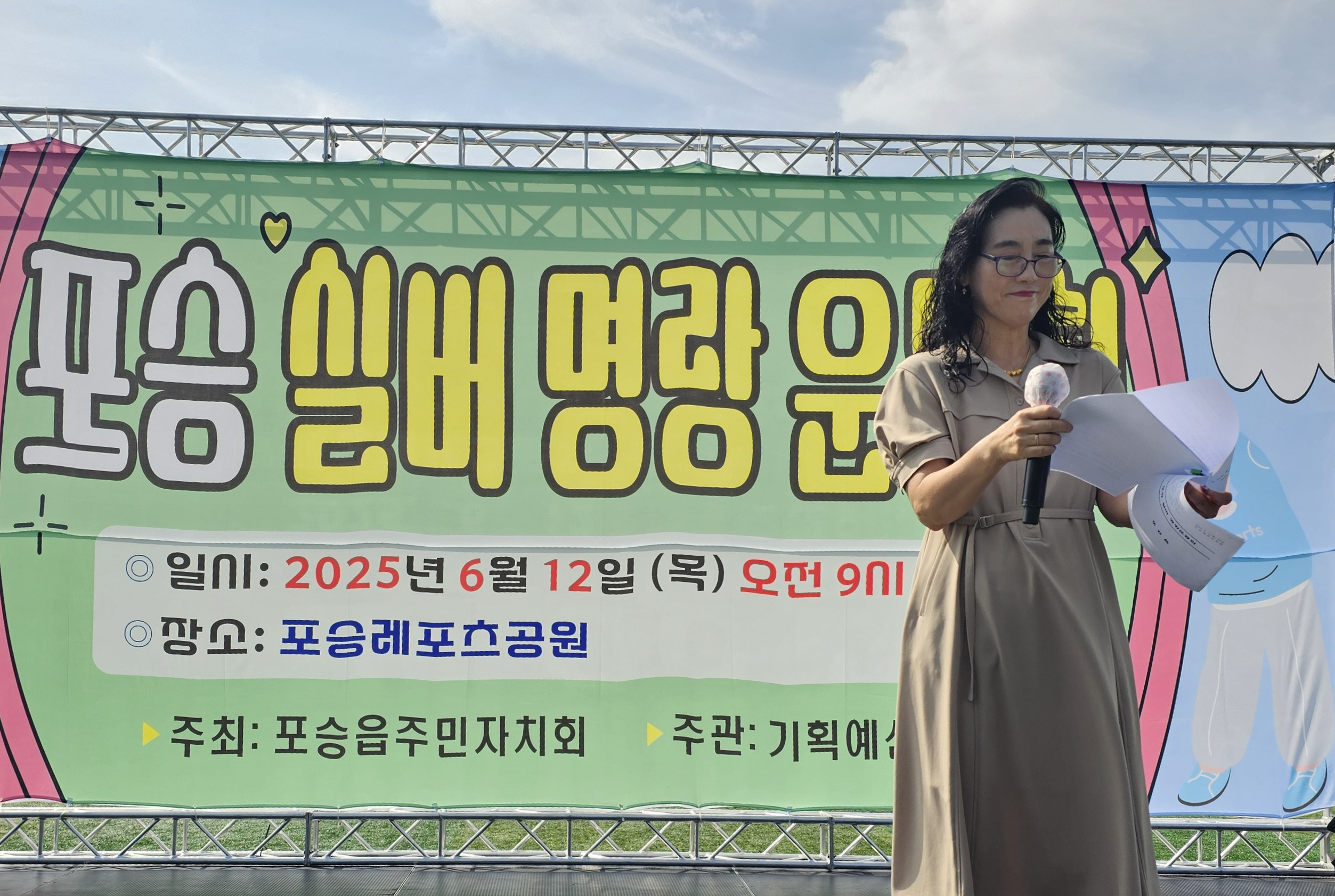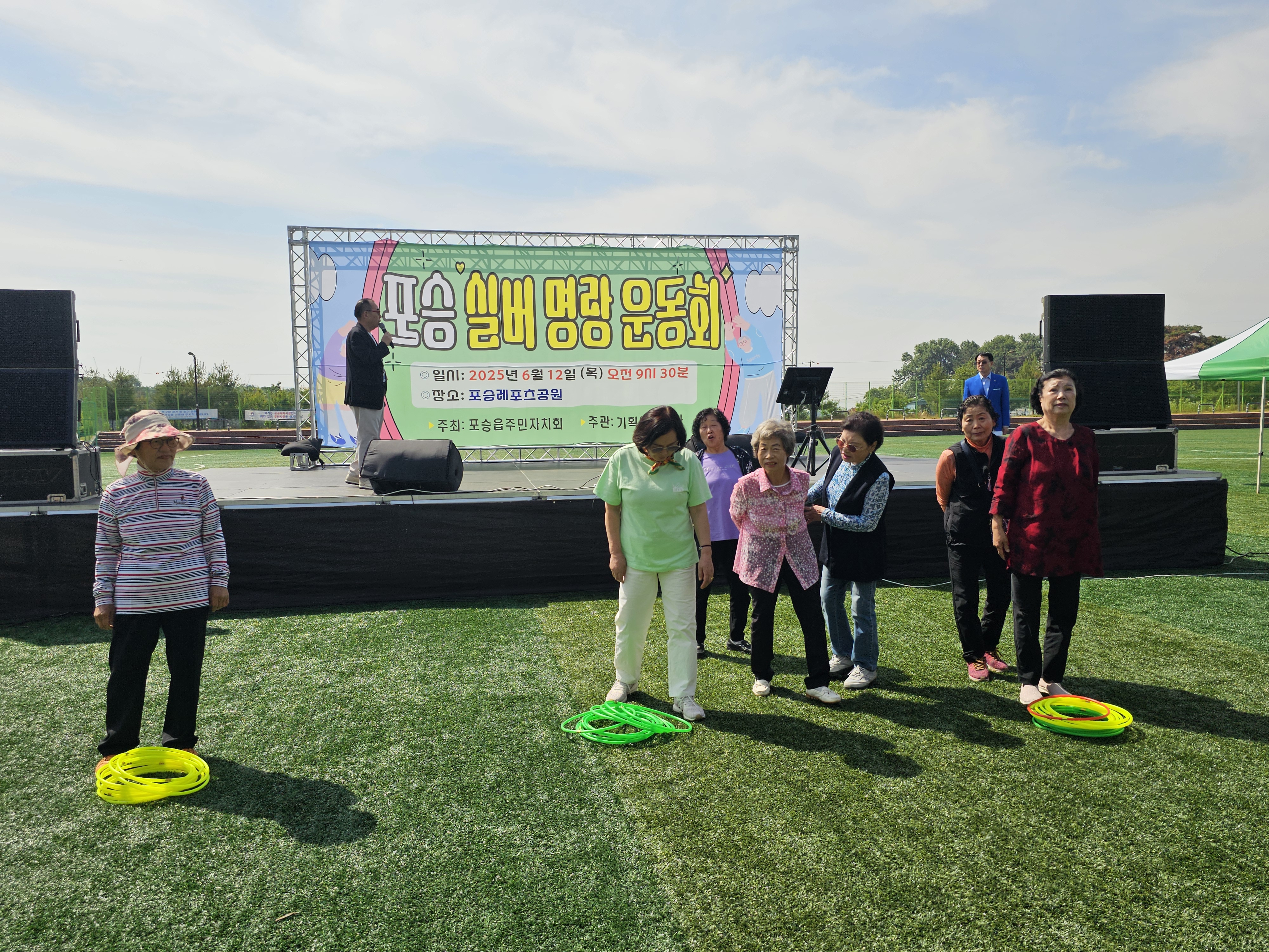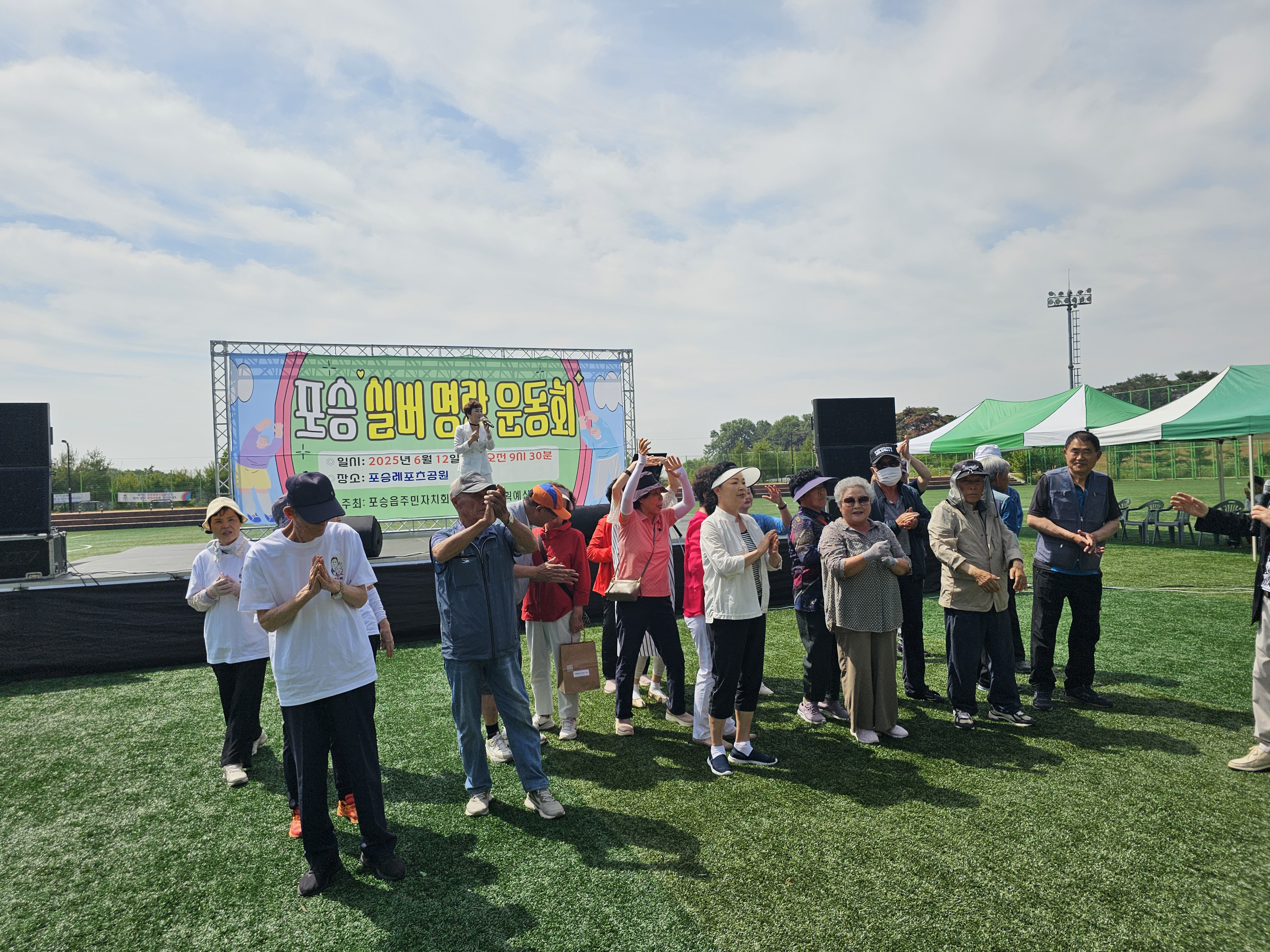 포승읍 주민자치회(회장 홍성범)가 주최하고 기획예산분과(분과장 조일재)에서 주관한 포승실버 명랑운동회를 2025년 7월 12일 09:30부터 14:00까지 포승레포츠공원에서 관내 300여 어르신을 모신가운데 성대히 치렀습니다.