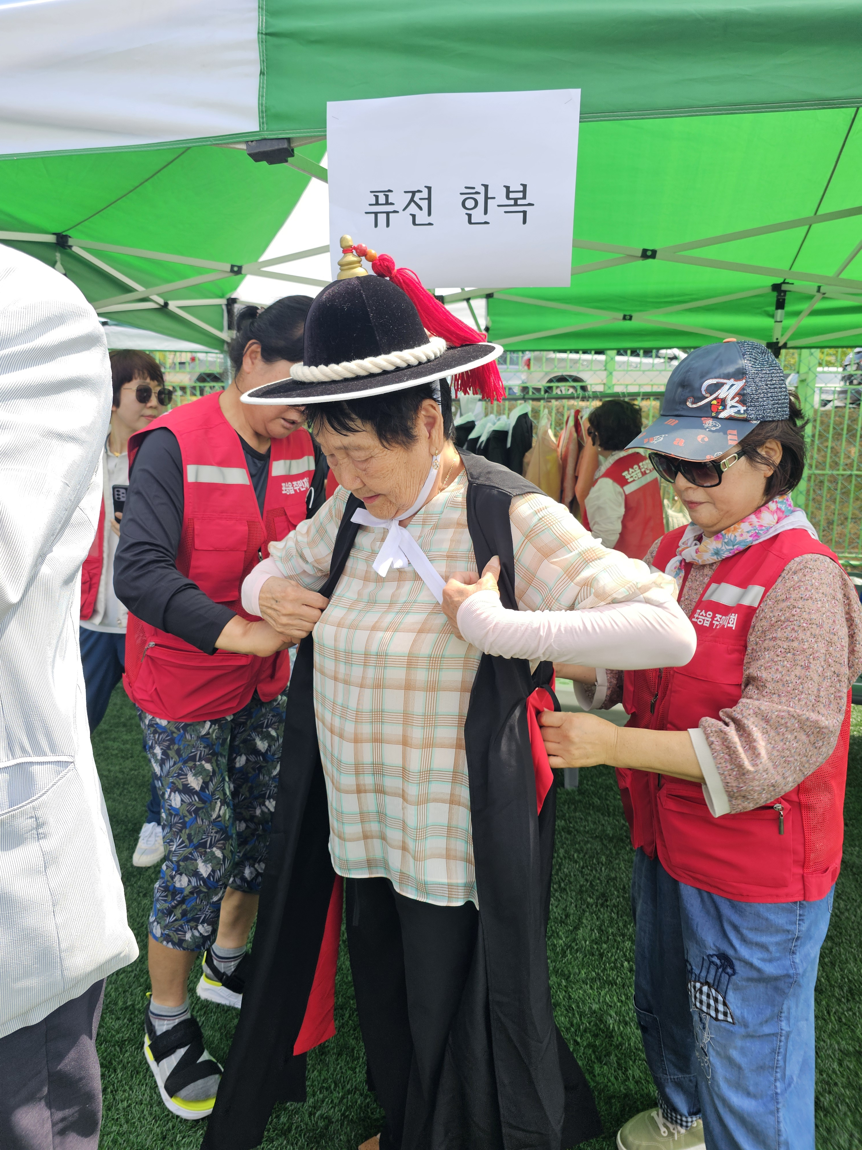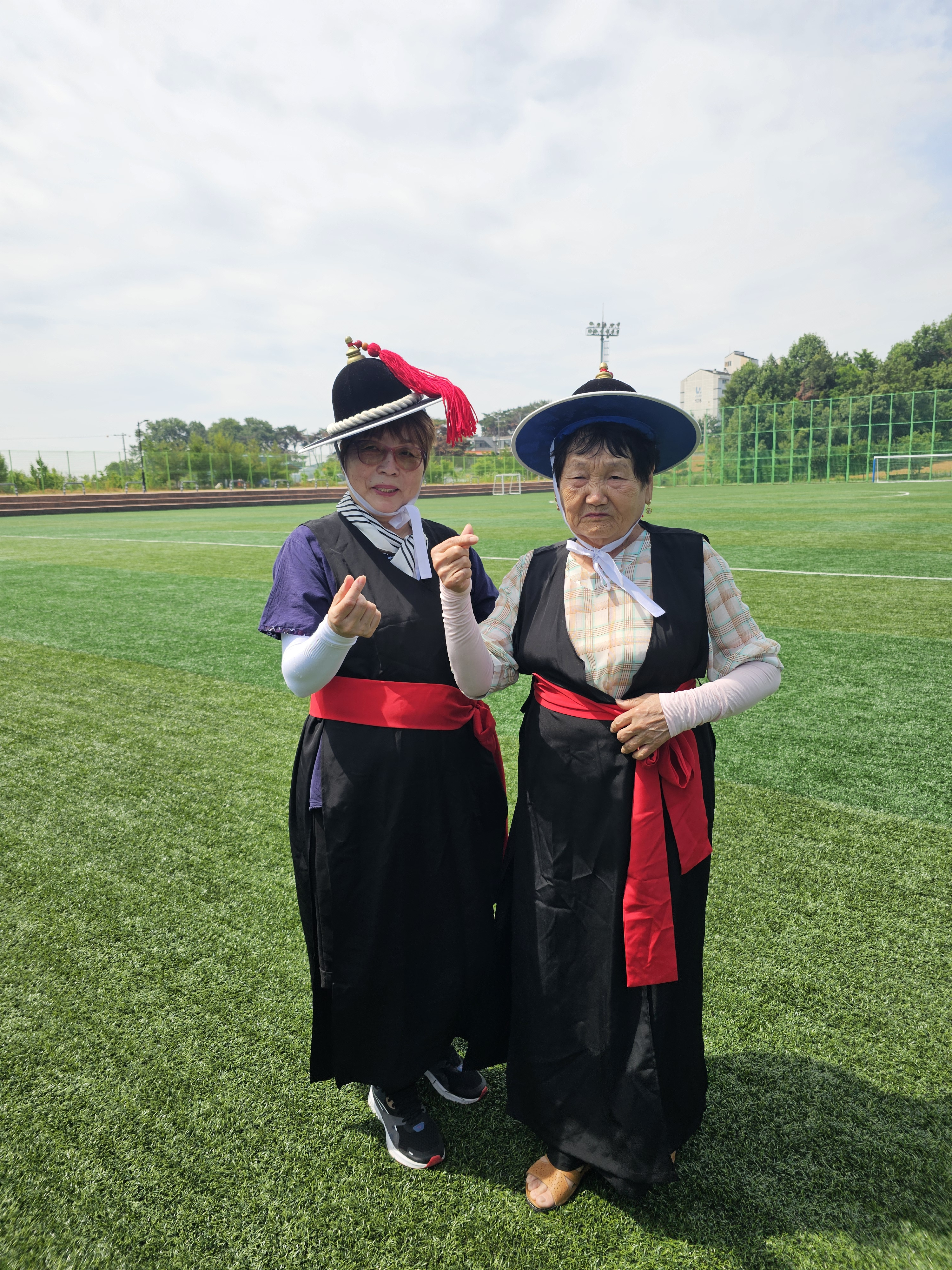 단체복을 마춰 입고온 만호4리 어르신들을 박시형 MC가 특별히 소개해 주.목을 받았습니다