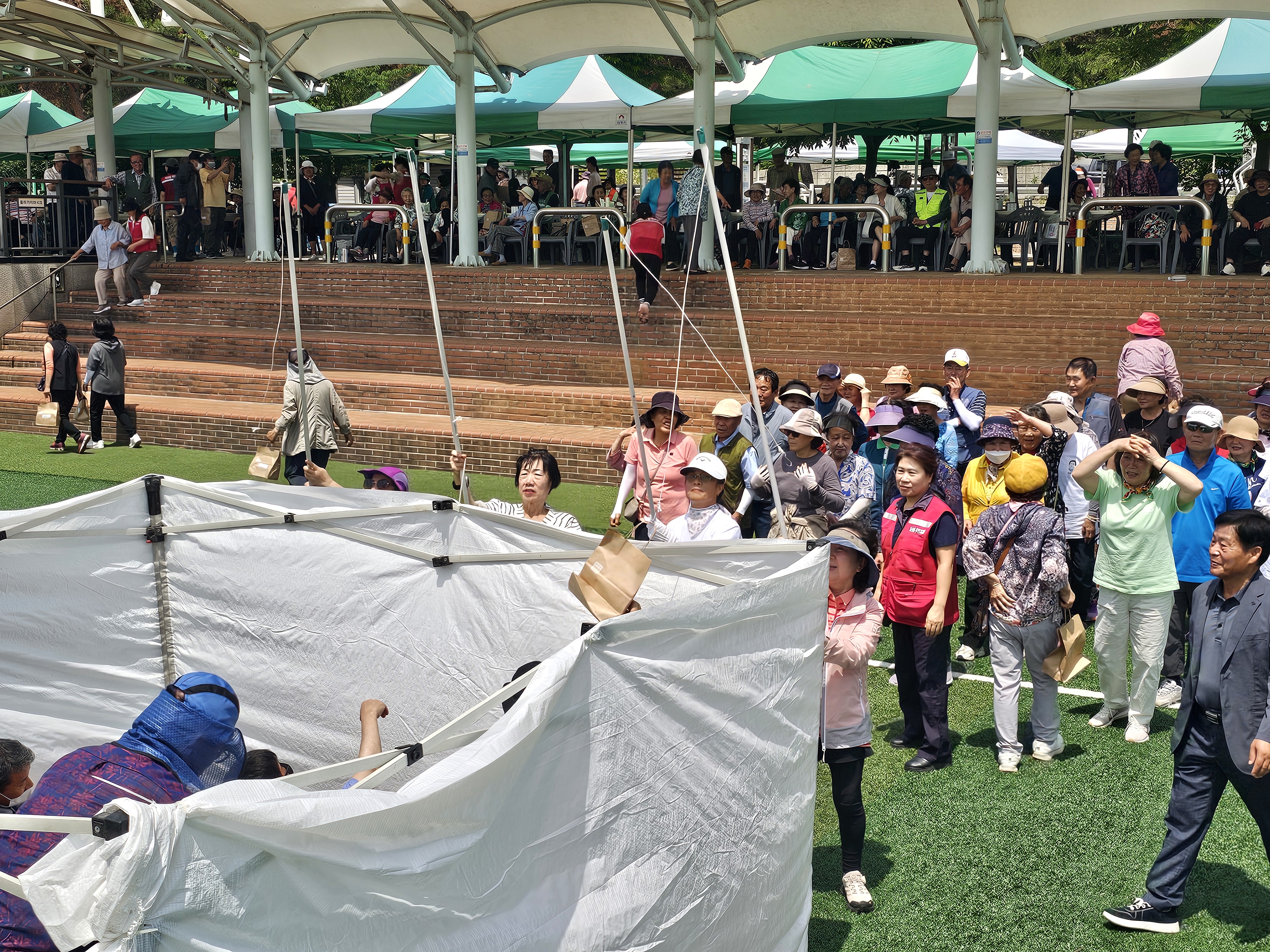 행사 내용은 참석 내빈 소개 및 내빈 축사가 있은 개회식에 이어 , 탤런트 박시형씨의 진행으로 다양하게 준비된 이벤트(링 던지기, 투호 던지기, 신발 양궁 등의 경기와 서예, 부채 및 냄비받침대 만들기, 퓨전한복 입어보기,, 추억의 학생복 입어보기 등의 체험 프로그램 종목이 진행되는 중간중간 초정가수들 공연이 있었으며, 후원사에서 제공한 점심 식사 후에는 5개 주민자치프로그램 공연, 어르신 노래자랑, 초청가수 공연 등 으로 참석 어르신들을 즐겁게 해드렸습니다.