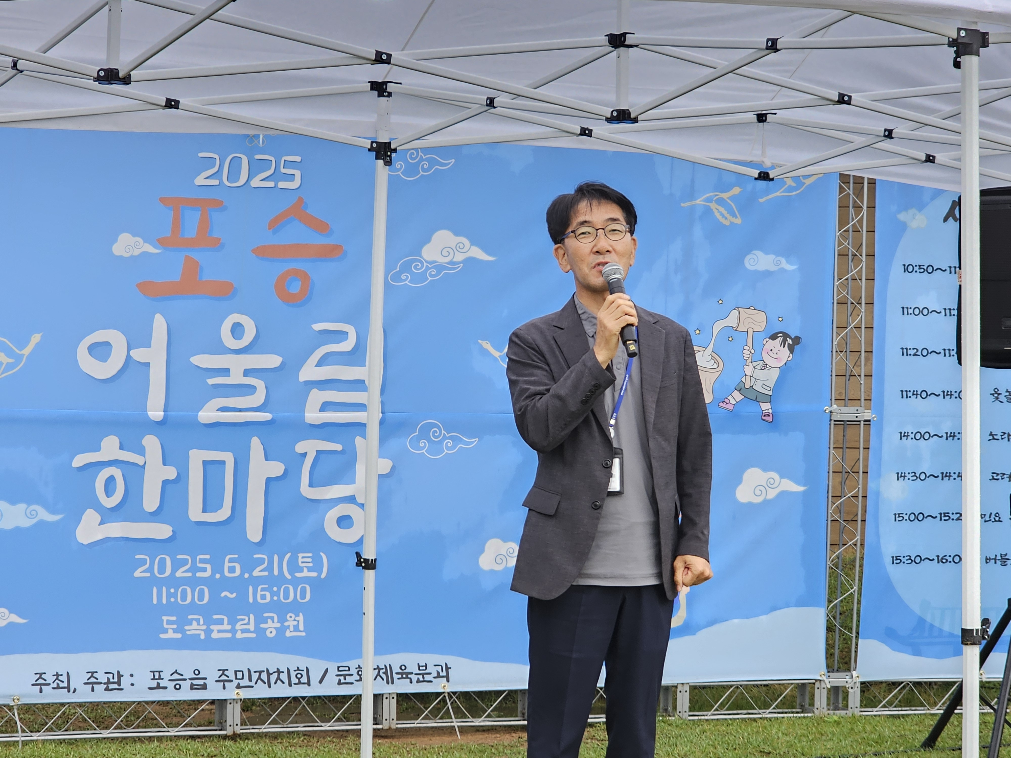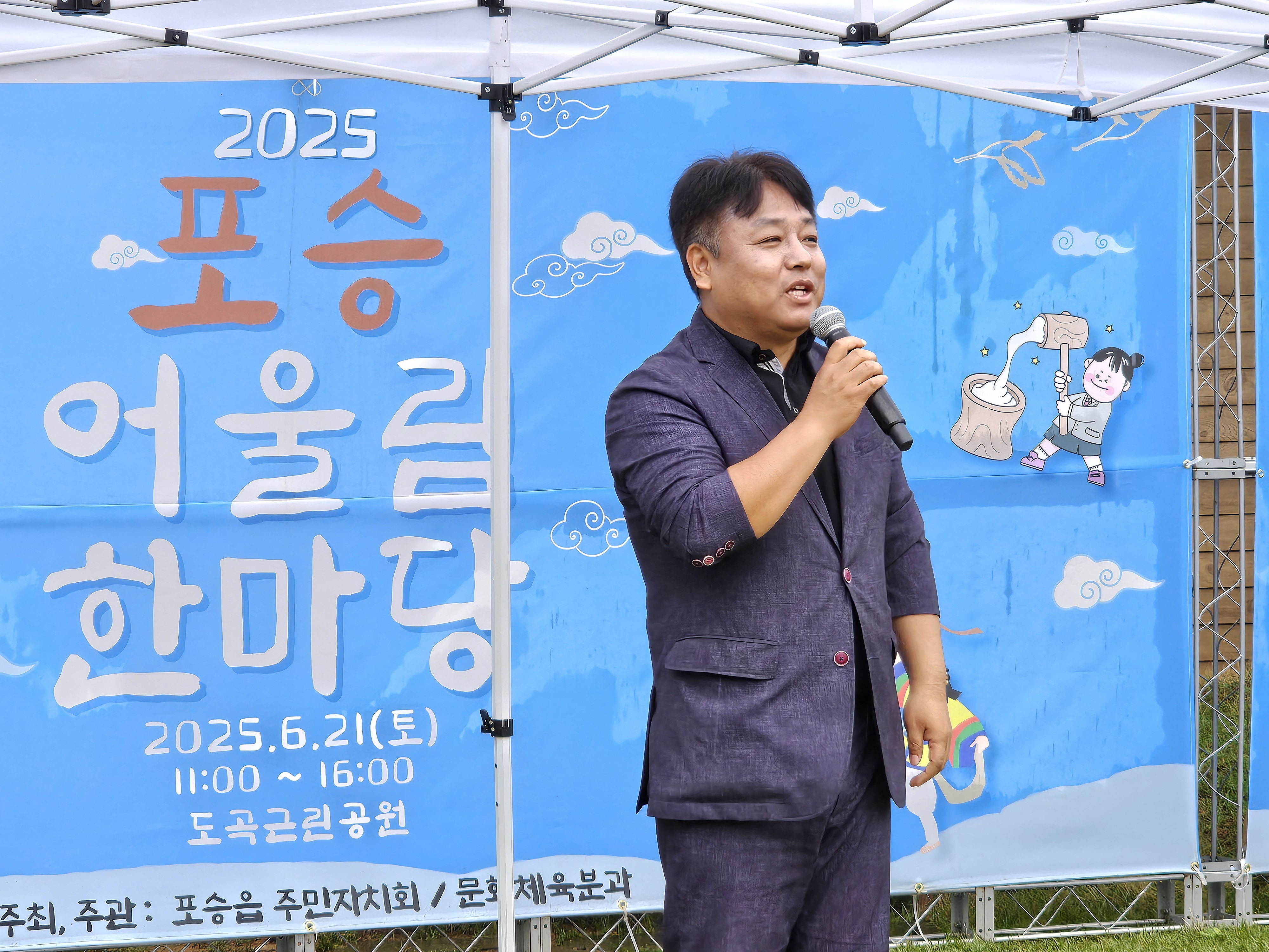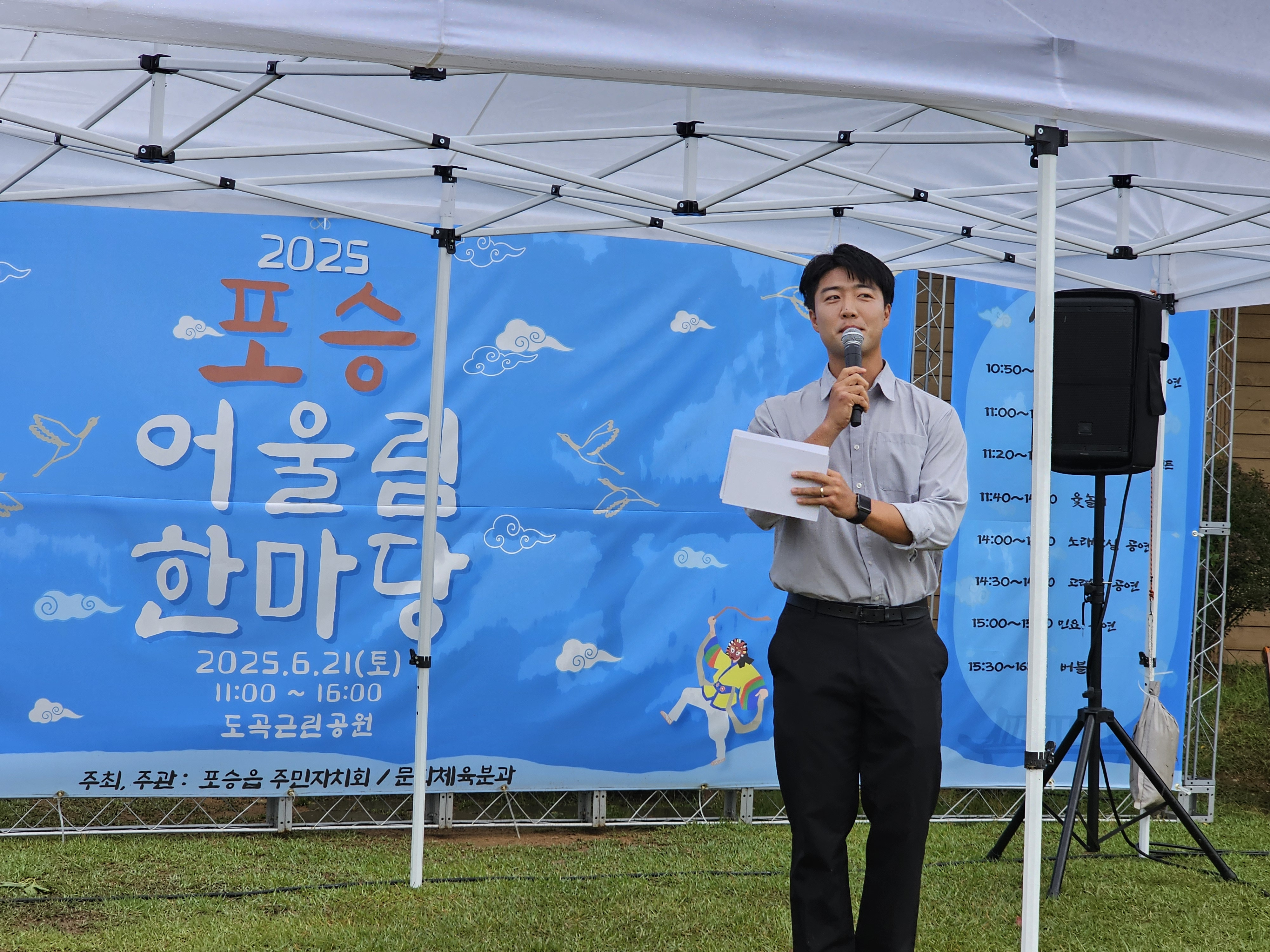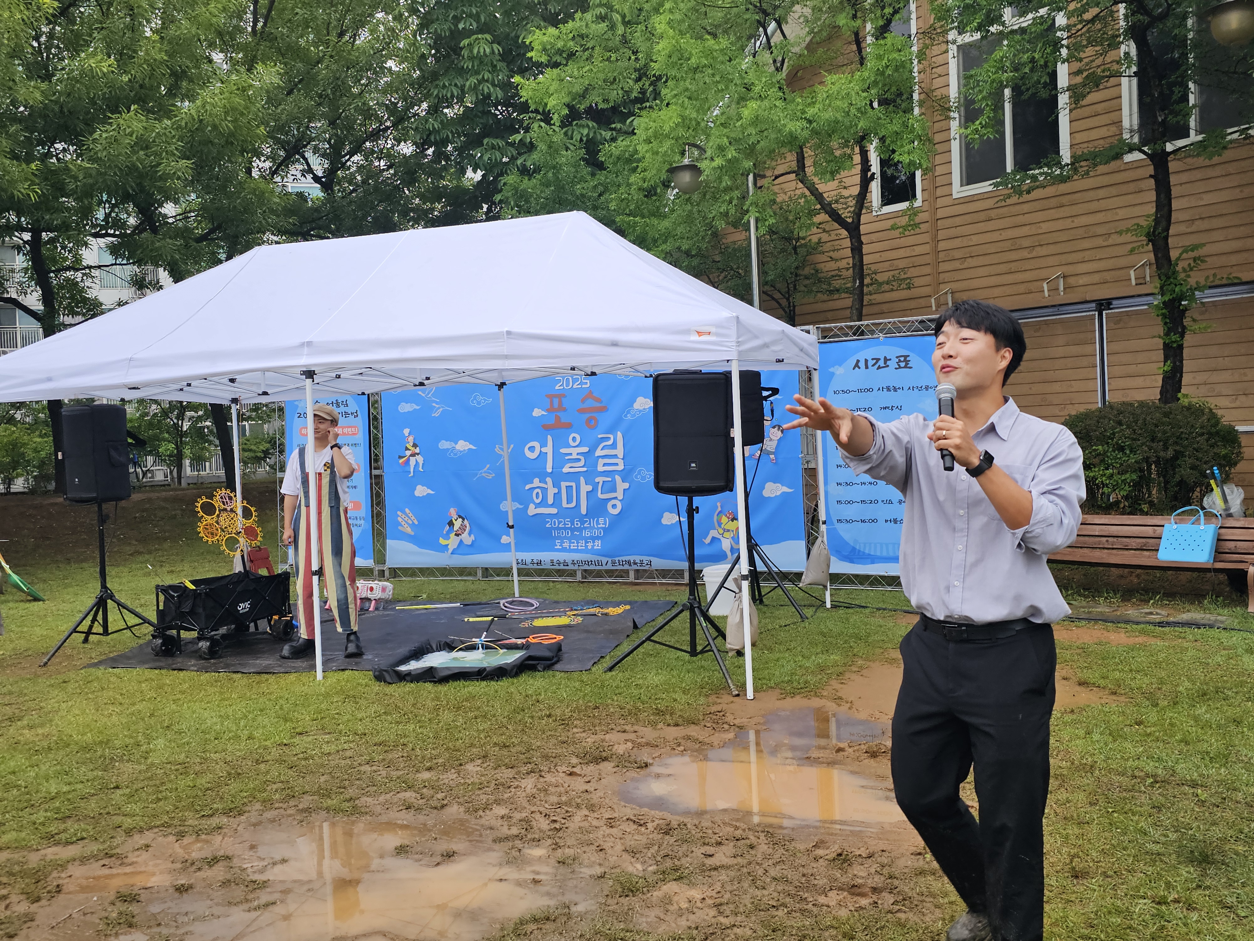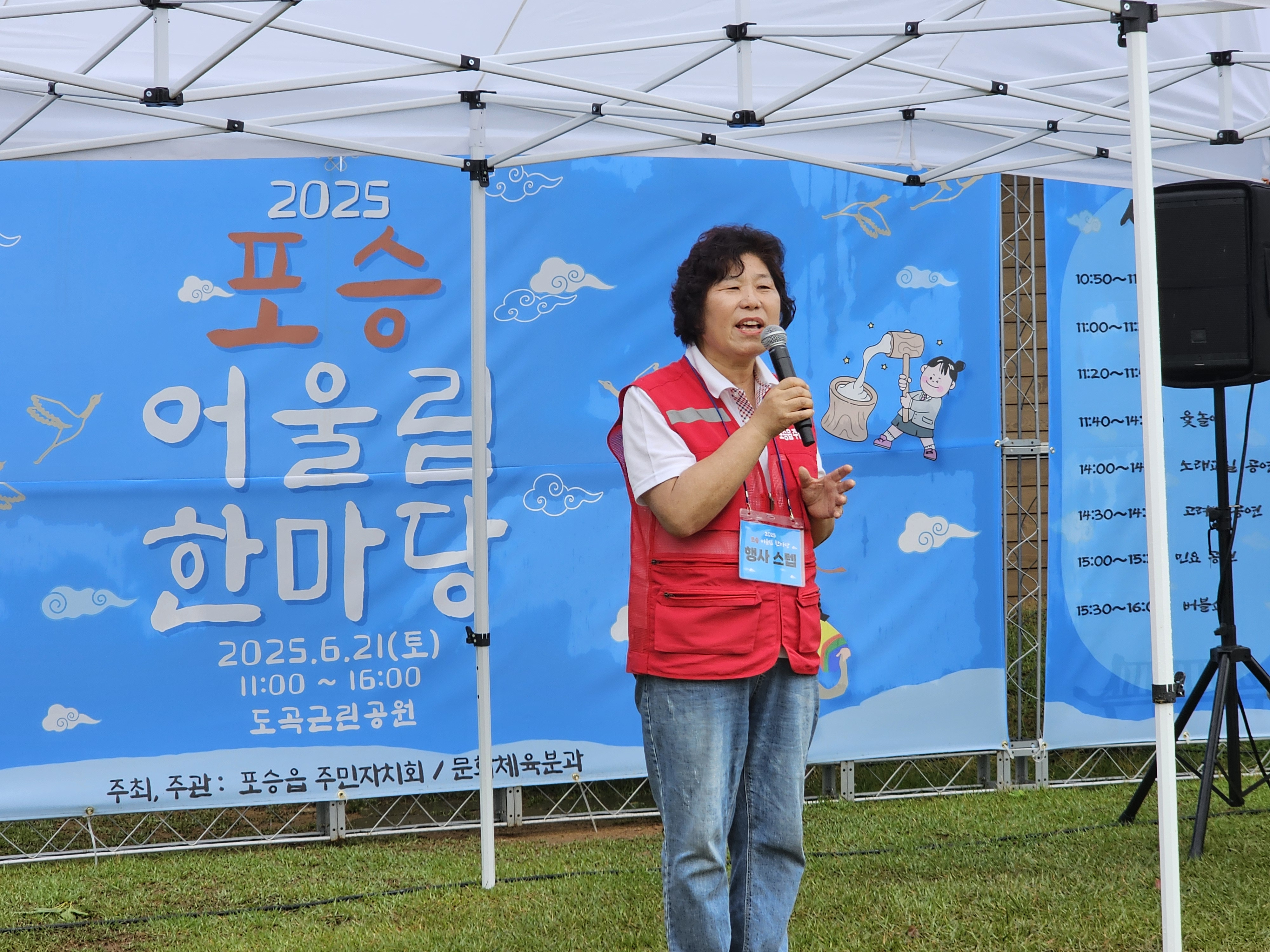 포승읍 주민자치회(회장 홍성범)가 주최하고 문화체육분과(분과장 김유순)에서 주관한 포승 어울림 한마당 행사가 2025년 6월 21일 11:00 포승읍 도곡근린공원에서 주요내빈, 주민, 행사 관계자 등 200 여명이 참석한 가운데 개최되었습니다.