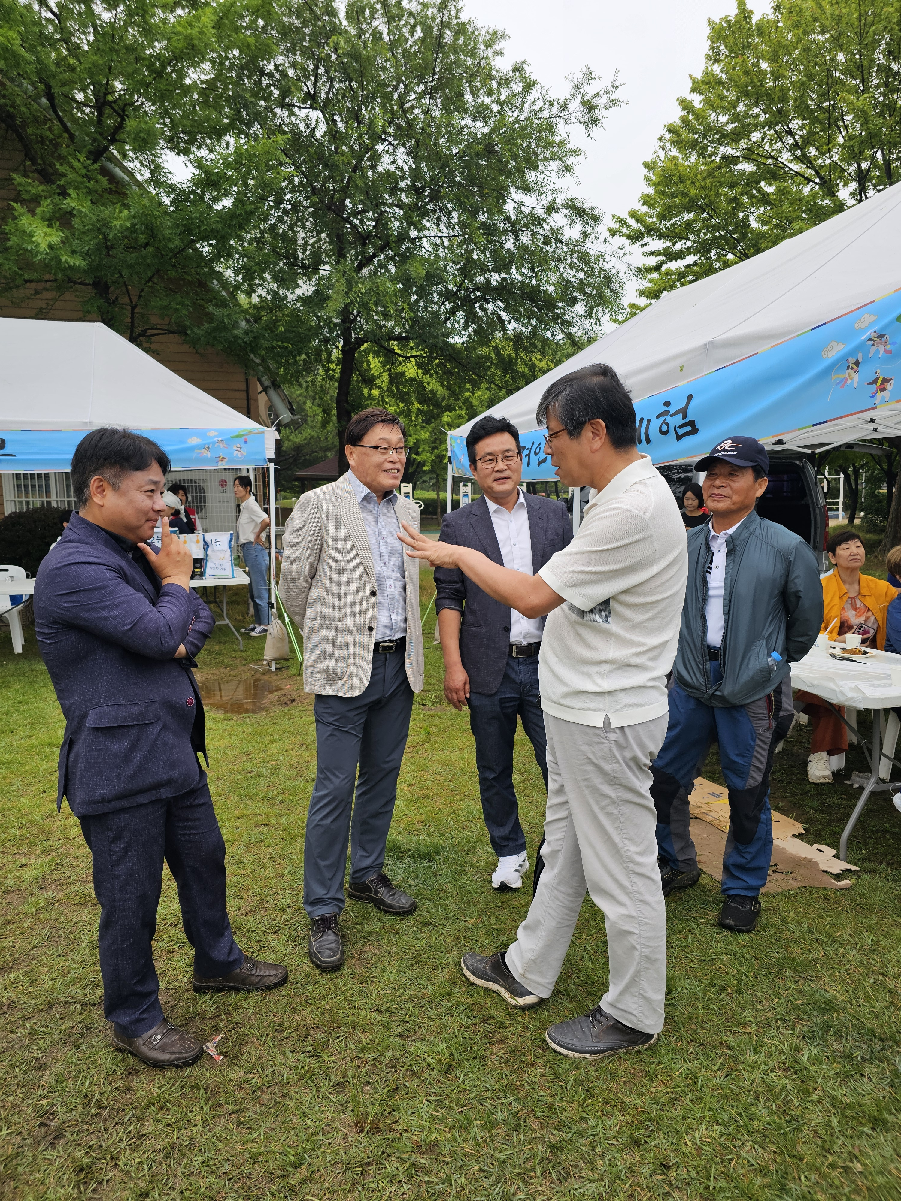 고려인 부스를 찾아 인사하는 문종호 안중출장소장, 한승훈 평택시 주민자치협의회장