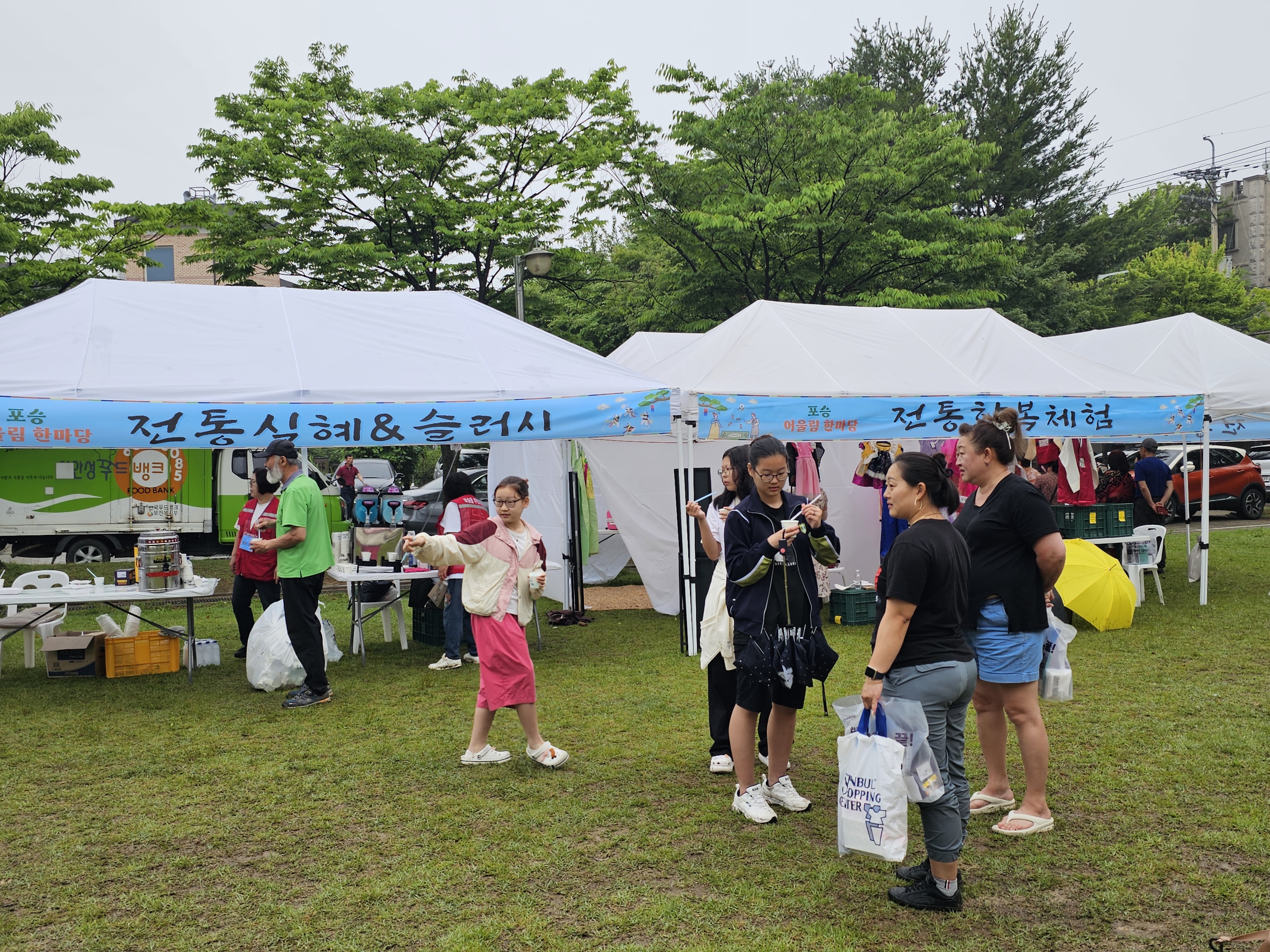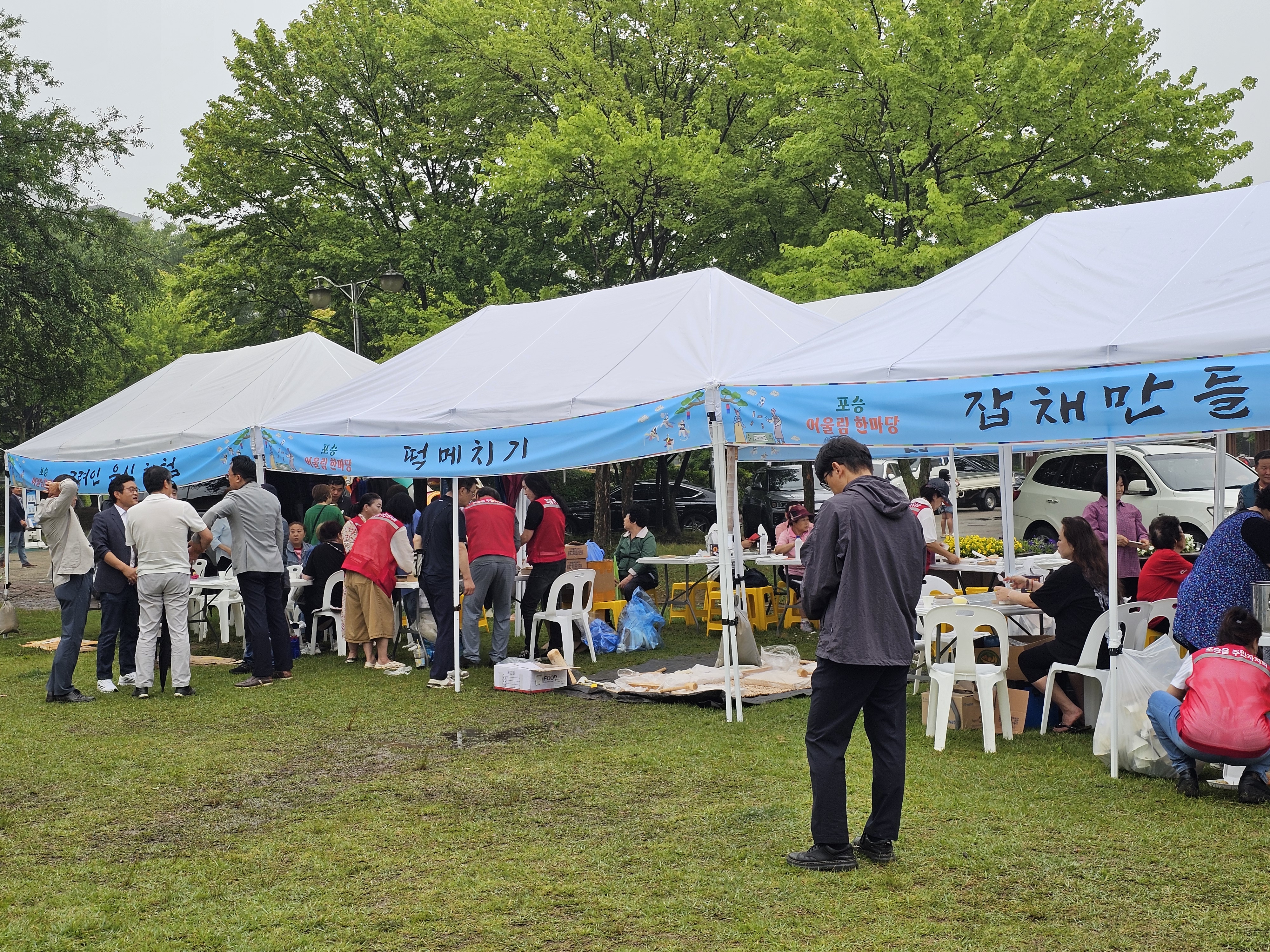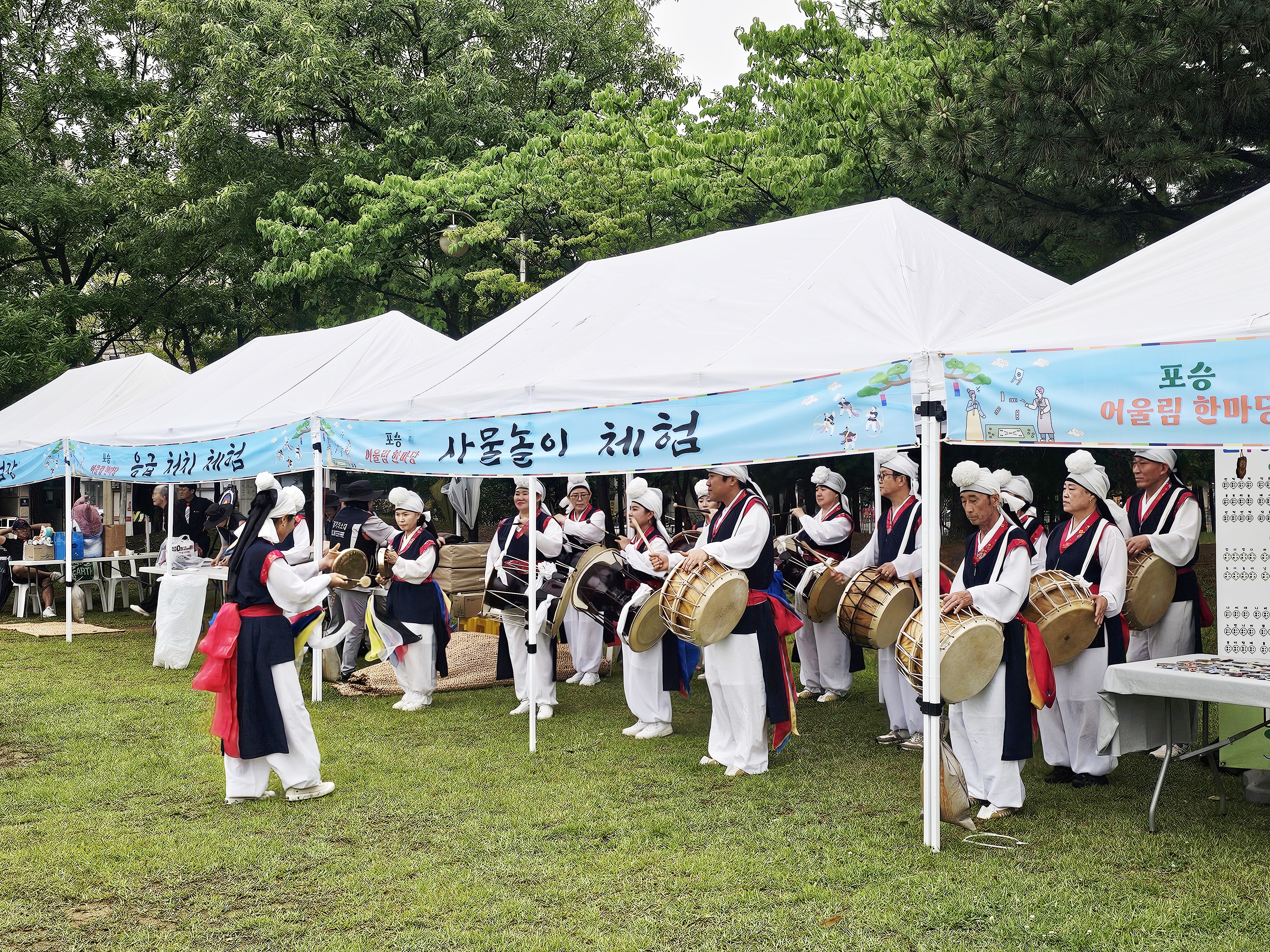 아침부터 비가 내려 행사에 치질을 빚을까 하는 걱정도 잠시, 정오부터 비가 개이기 시작, 행사장을 찾는 주민들이 점차 늘어가며 부스에 마련된 체헙부스(윷놀이, 떡메치기, 잡채 만들기, 한복 입어보기, 사물놀이, 고려인 음식, 한궁, 투호, 나무오카리나 색칠하고 배우기. 응급처치등)을 체험하고, 중간 중간 펼쳐진 공연(사물놀이(식전 공연), 포승읍 주민자치센터 노래교실, 경기민요, 고려인 한국전통무용 및 난타, 매직쑈 등)을 보며 즐거운 시간을 보냈습니다.