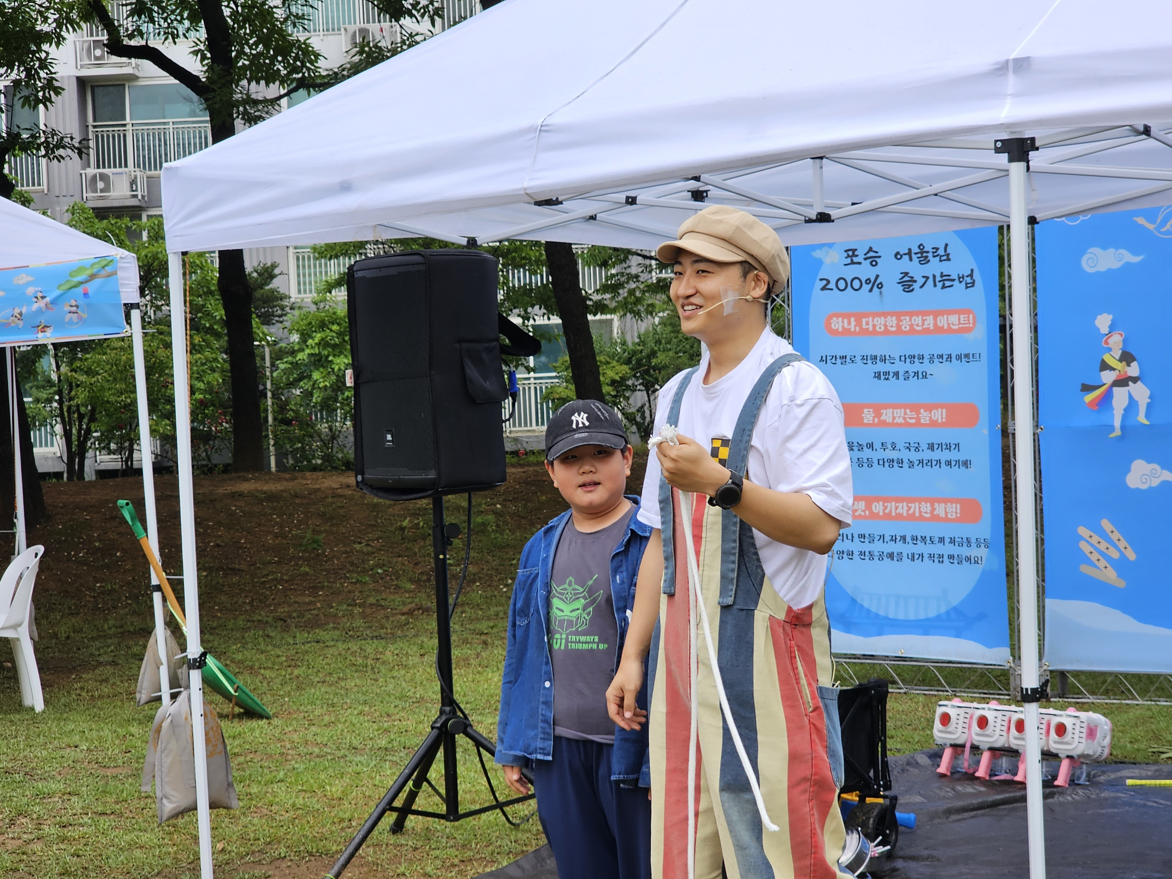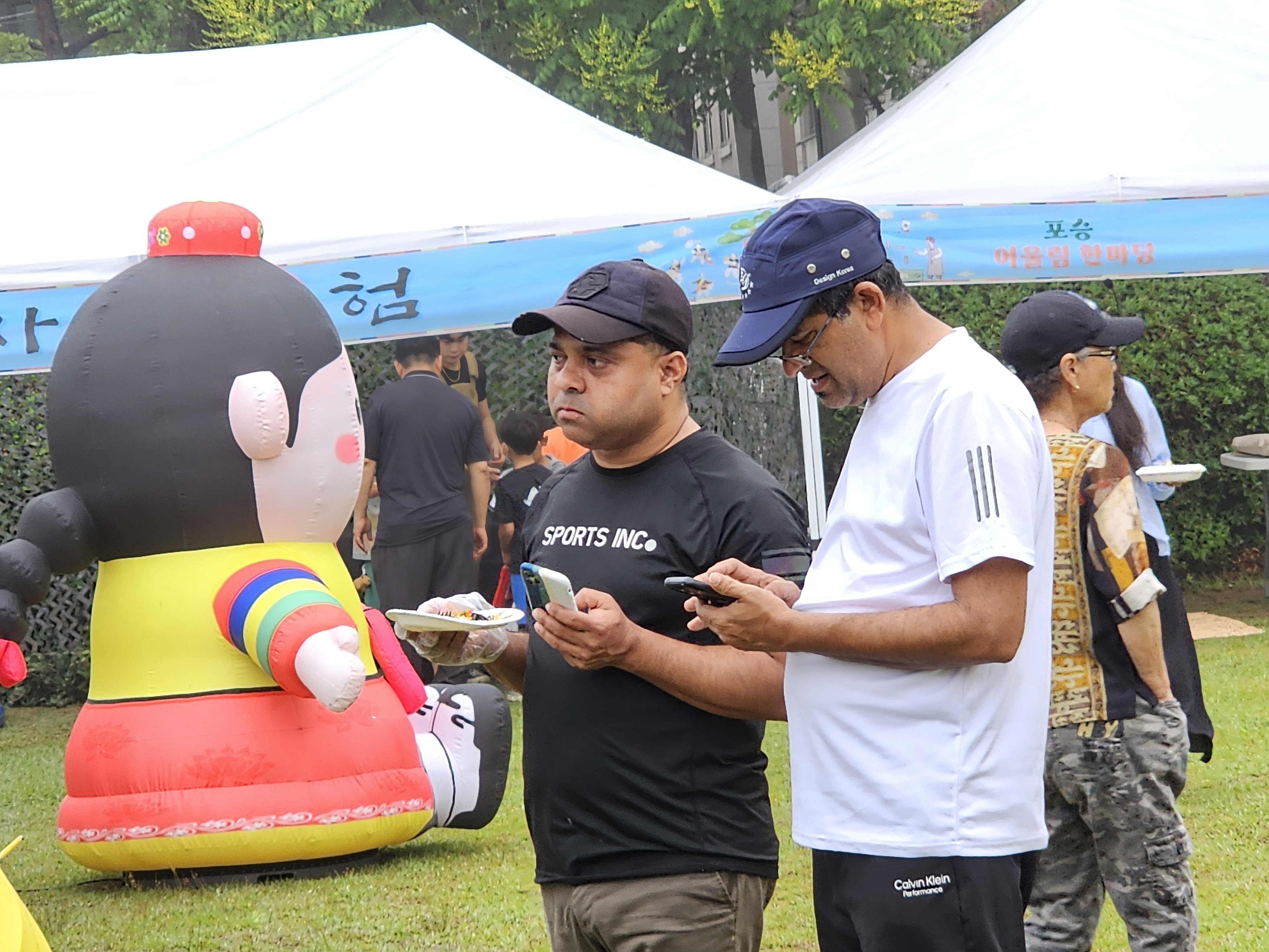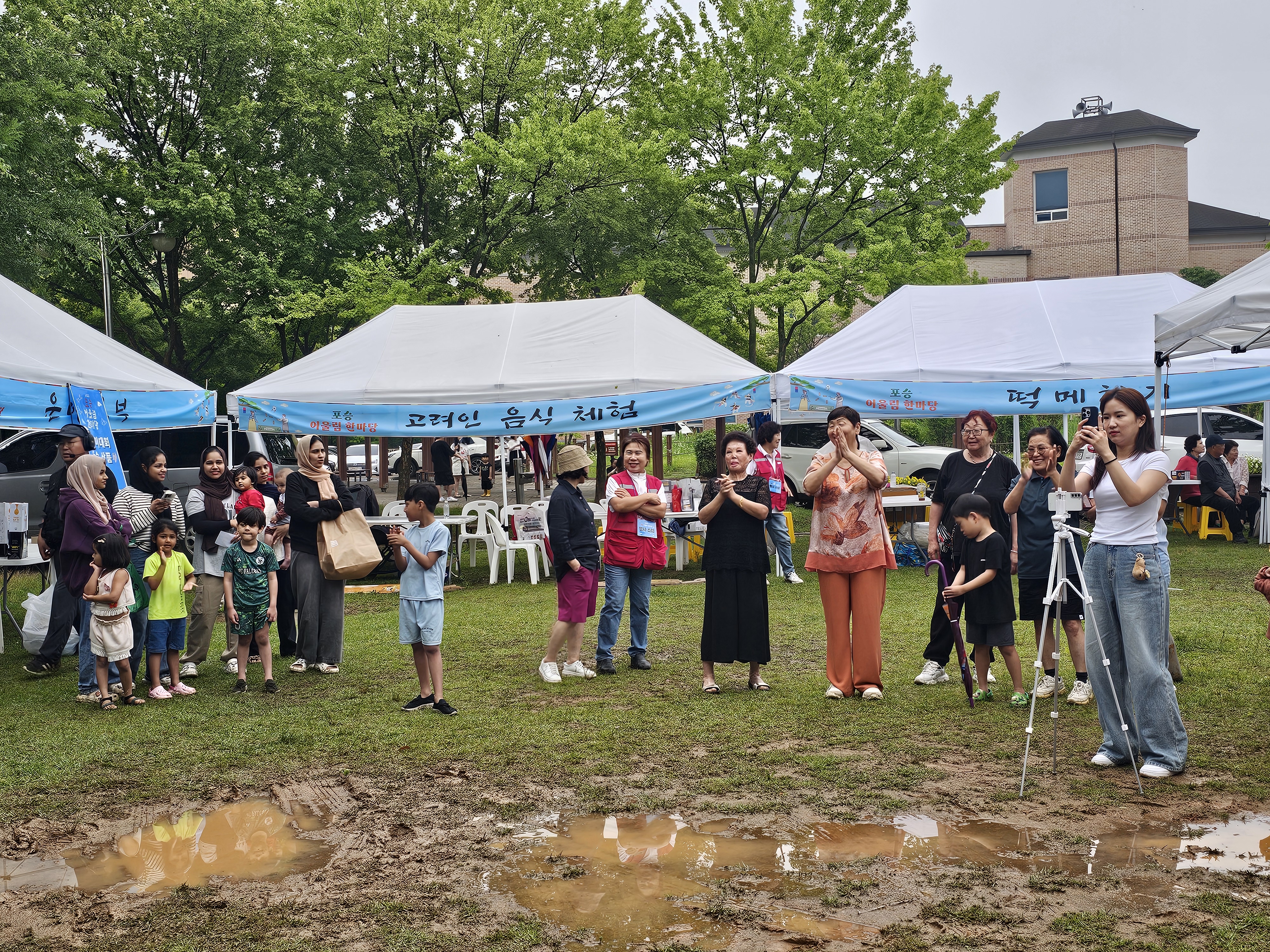 아침부터 비가 내려 행사에 치질을 빚을까 하는 걱정도 잠시, 정오부터 비가 개이기 시작, 행사장을 찾는 주민들이 점차 늘어가며 부스에 마련된 체헙부스(윷놀이, 떡메치기, 잡채 만들기, 한복 입어보기, 사물놀이, 고려인 음식, 한궁, 투호, 나무오카리나 색칠하고 배우기. 응급처치등)을 체험하고, 중간 중간 펼쳐진 공연(사물놀이(식전 공연), 포승읍 주민자치센터 노래교실, 경기민요, 고려인 한국전통무용 및 난타, 매직쑈 등)을 보며 즐거운 시간을 보냈습니다.