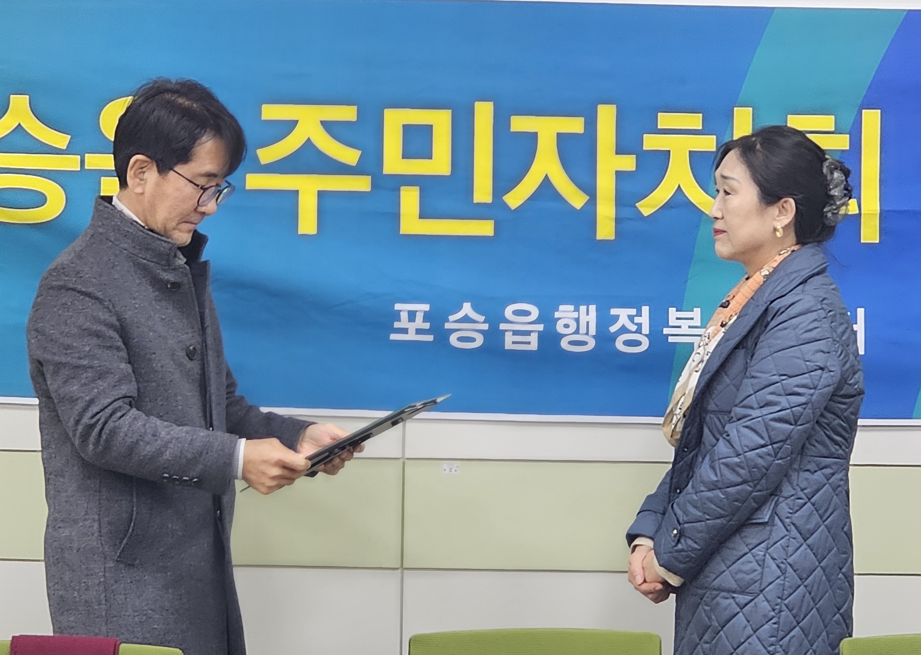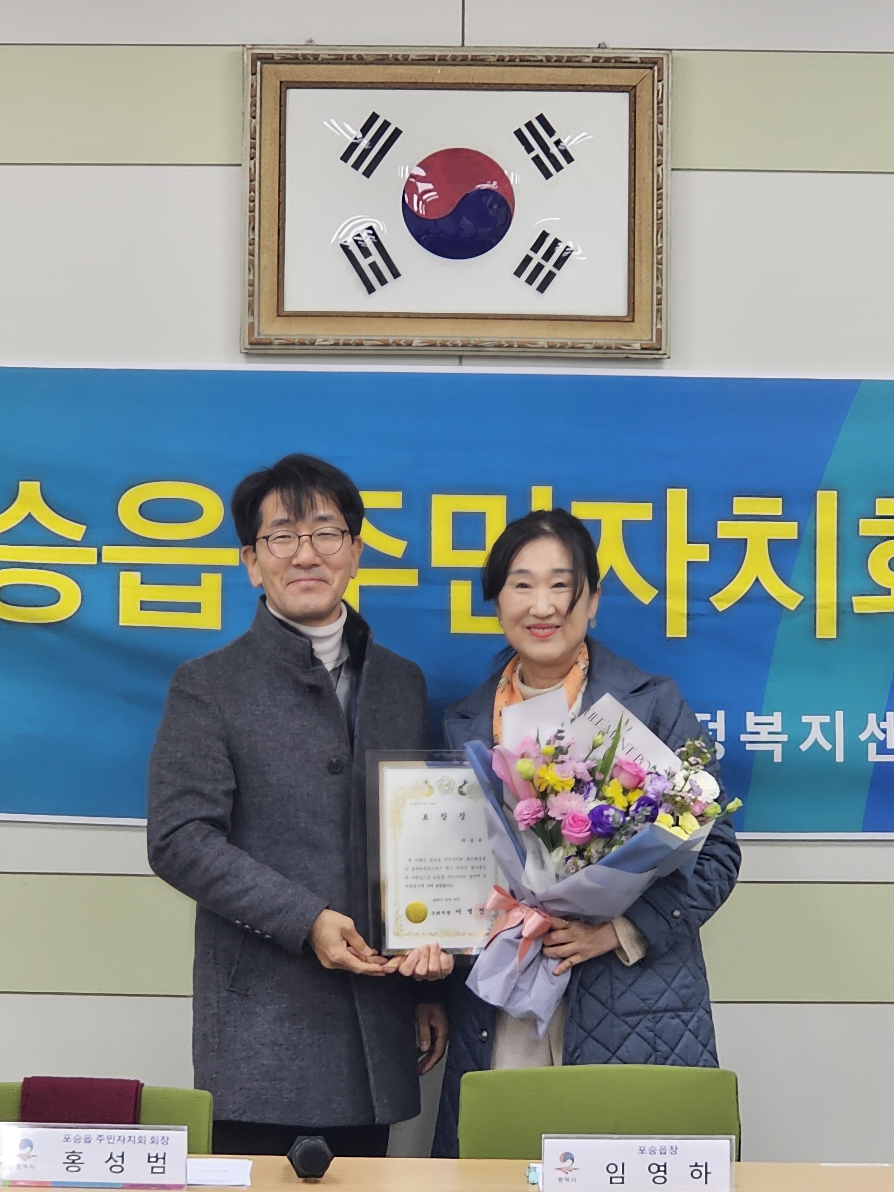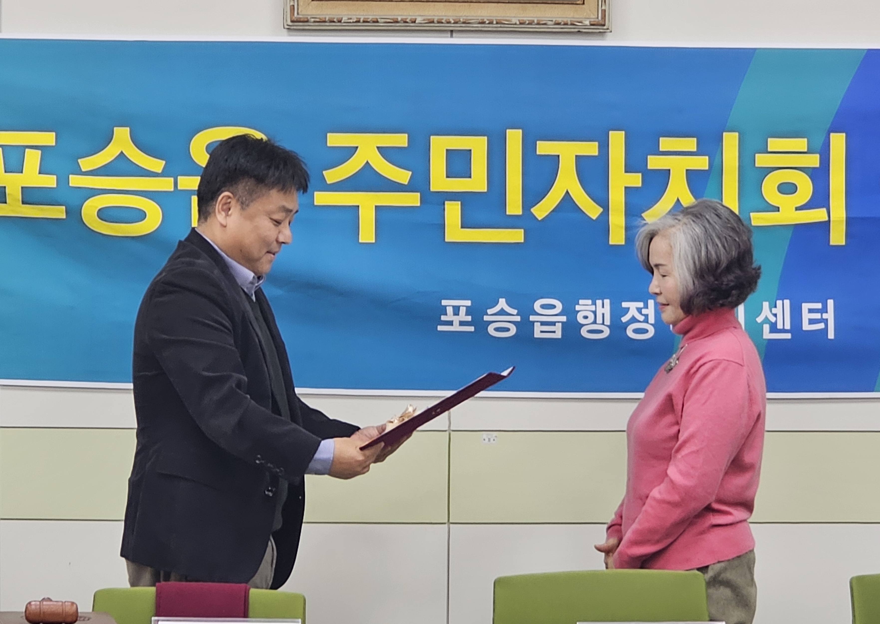 주민자치회 감사장 : 서인서 전 주민자치담당 주무관