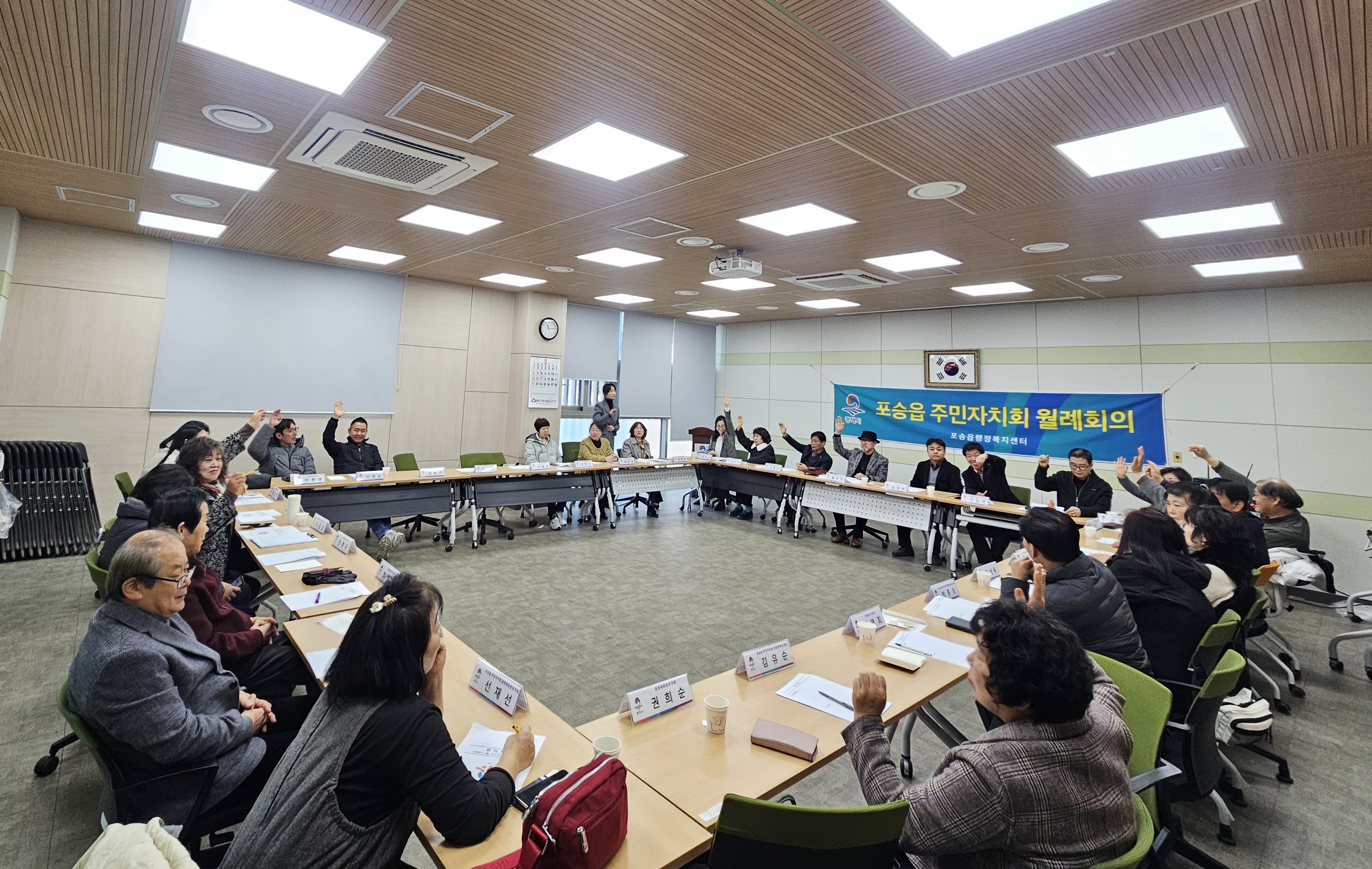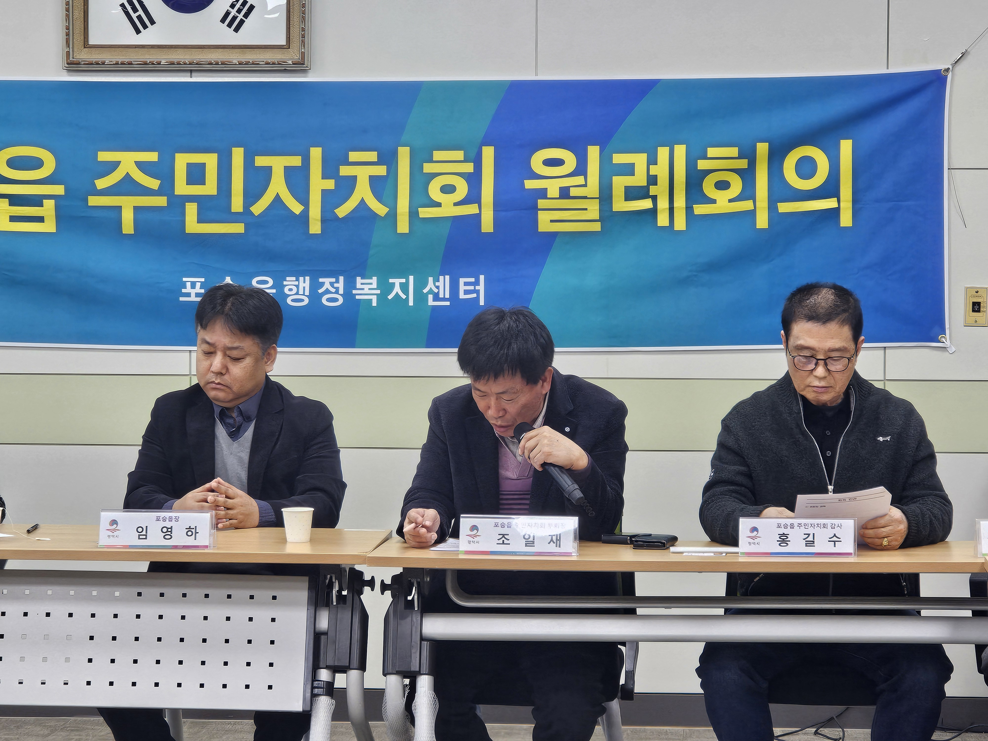 포승읍 주민자치회(회장 홍성범)는 2026년 2월 23일 11:00 포승문화복지센터 2층 주민자치회의실에서 2월 월례회를 갖고 아레 안건을 으결했습니다.