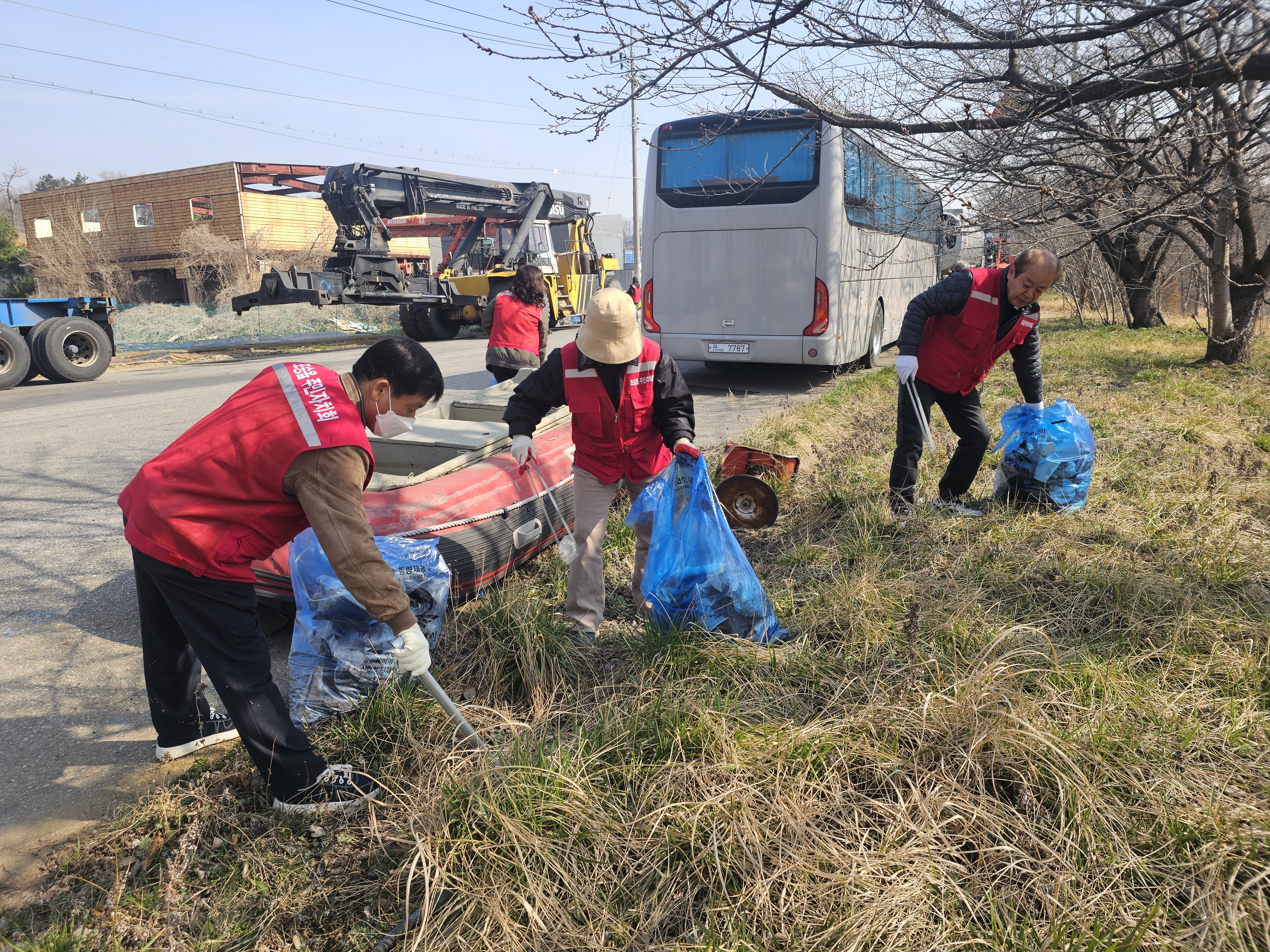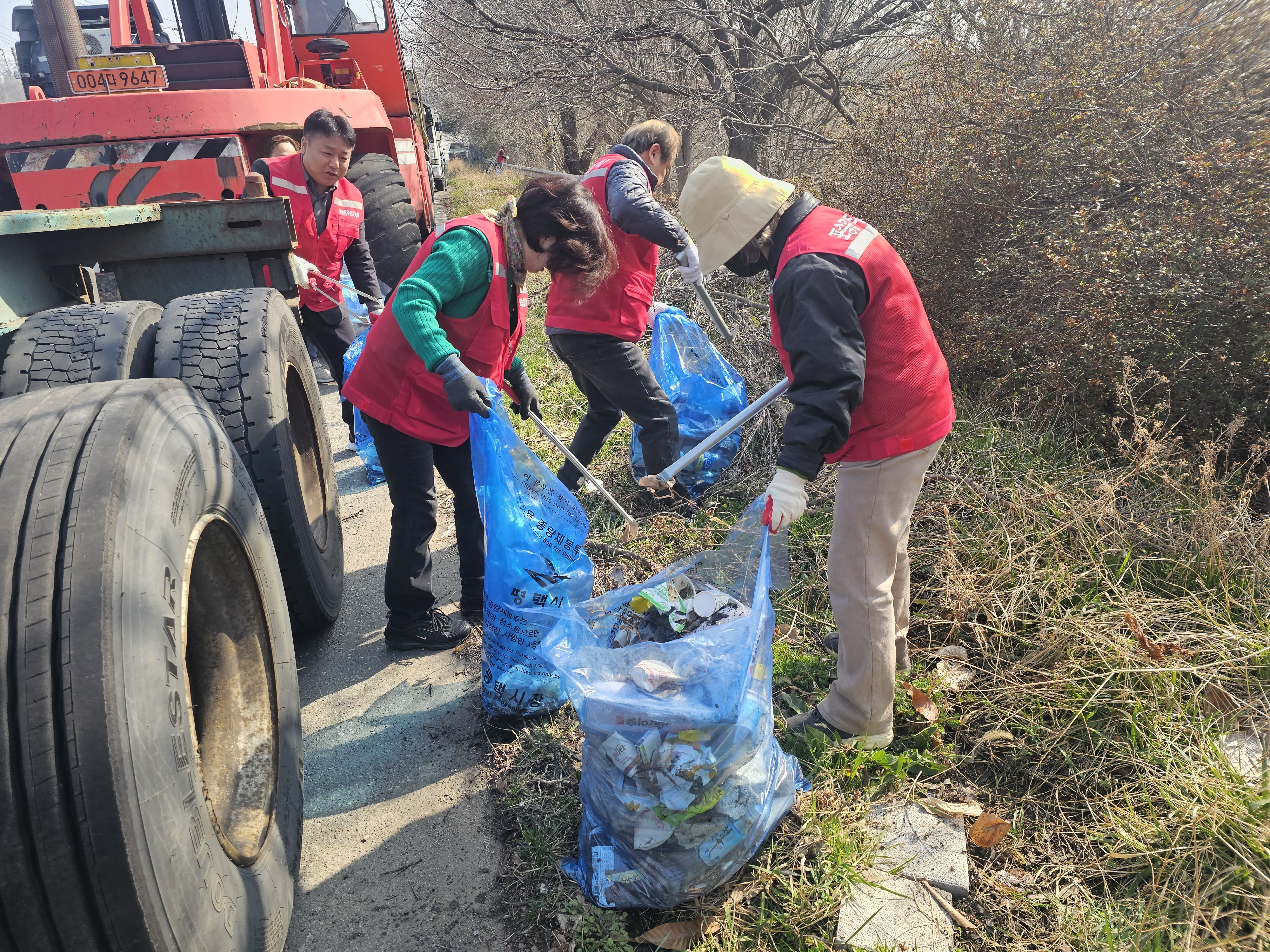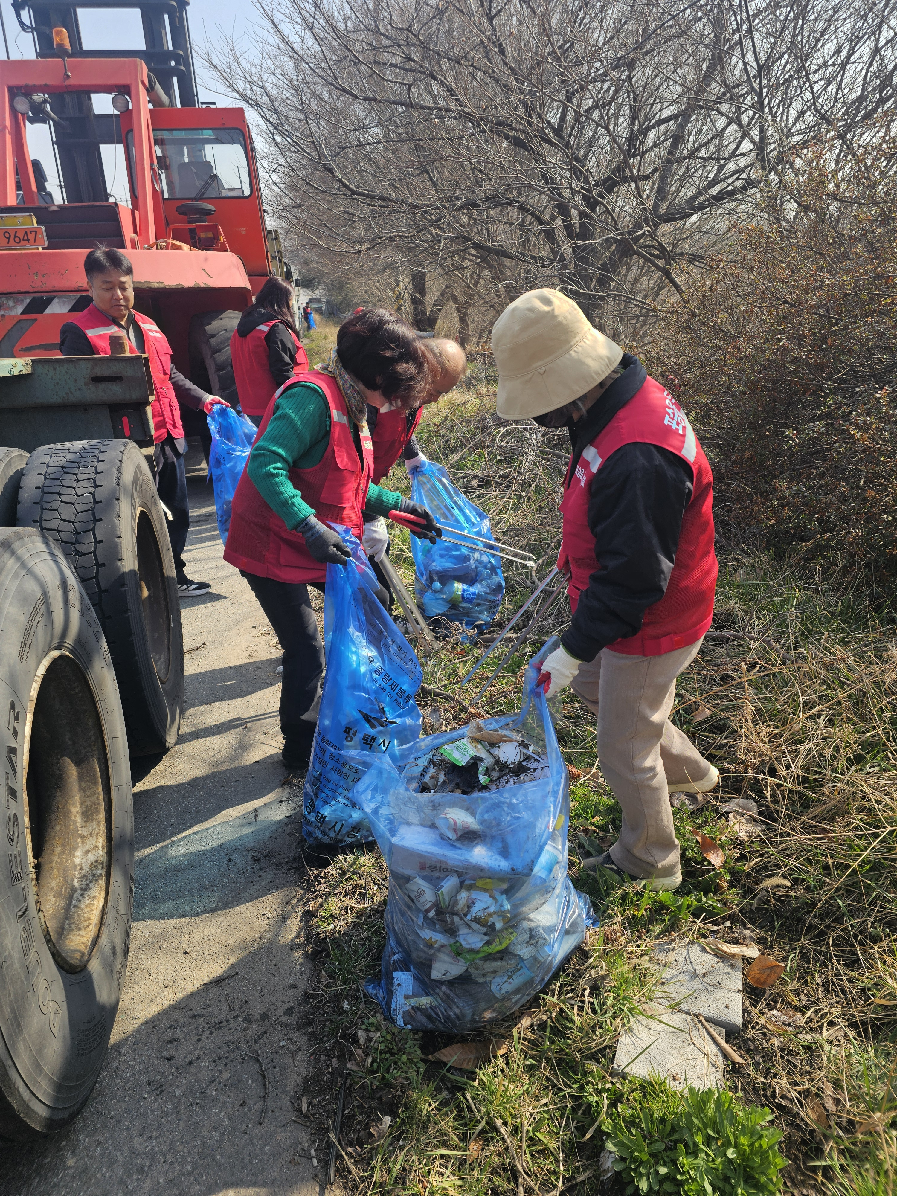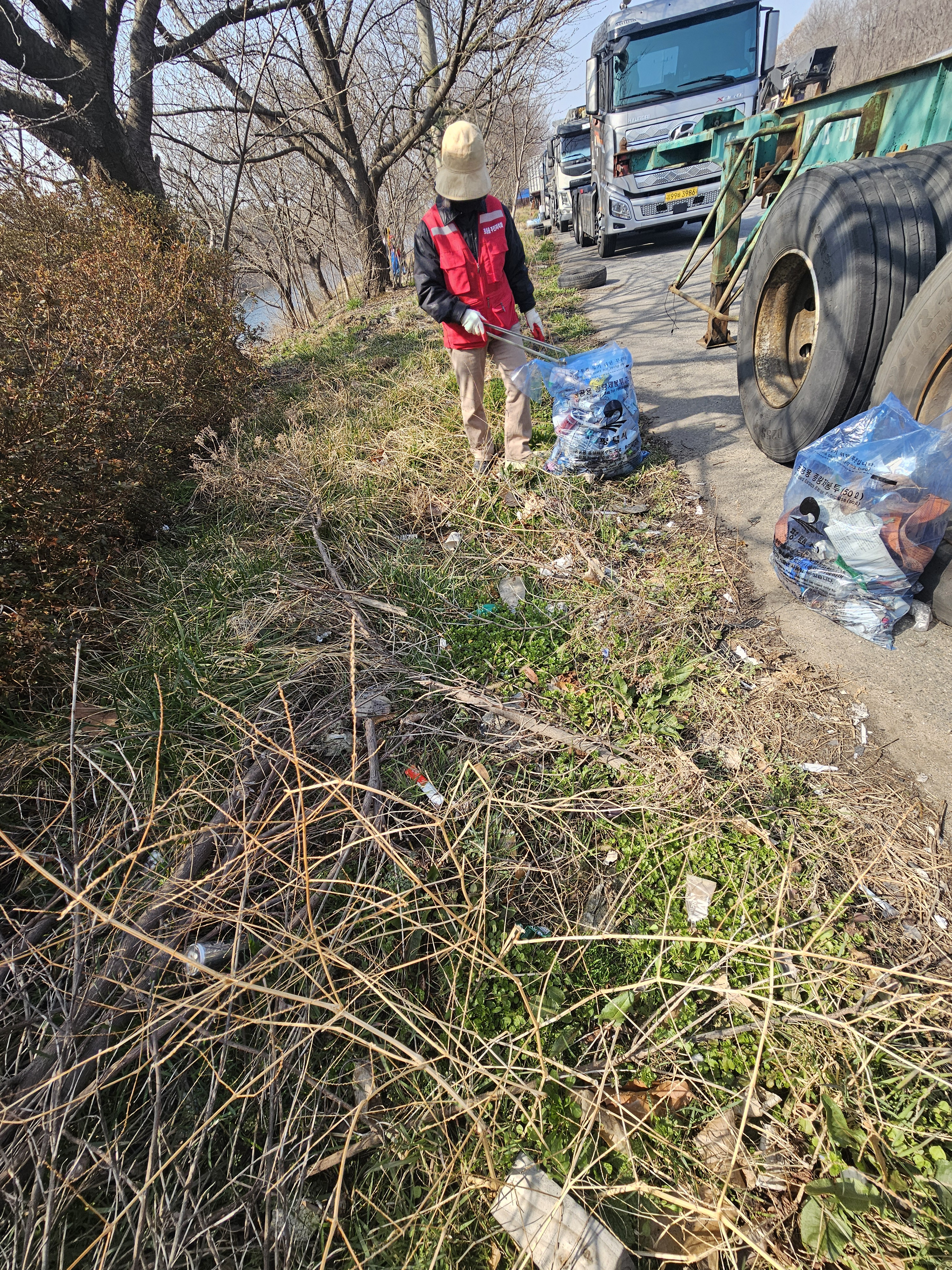 오늘 환경정화활동은 11시에 있을 주민자치월례회의 전 09:40 포승문화복지센터 앞에 집결하여 차량으로 이동, 쓰레기를 수거 했는데 겨우내 쓰레기들이 널부러져 있어 많은 양을 수거했습니다.