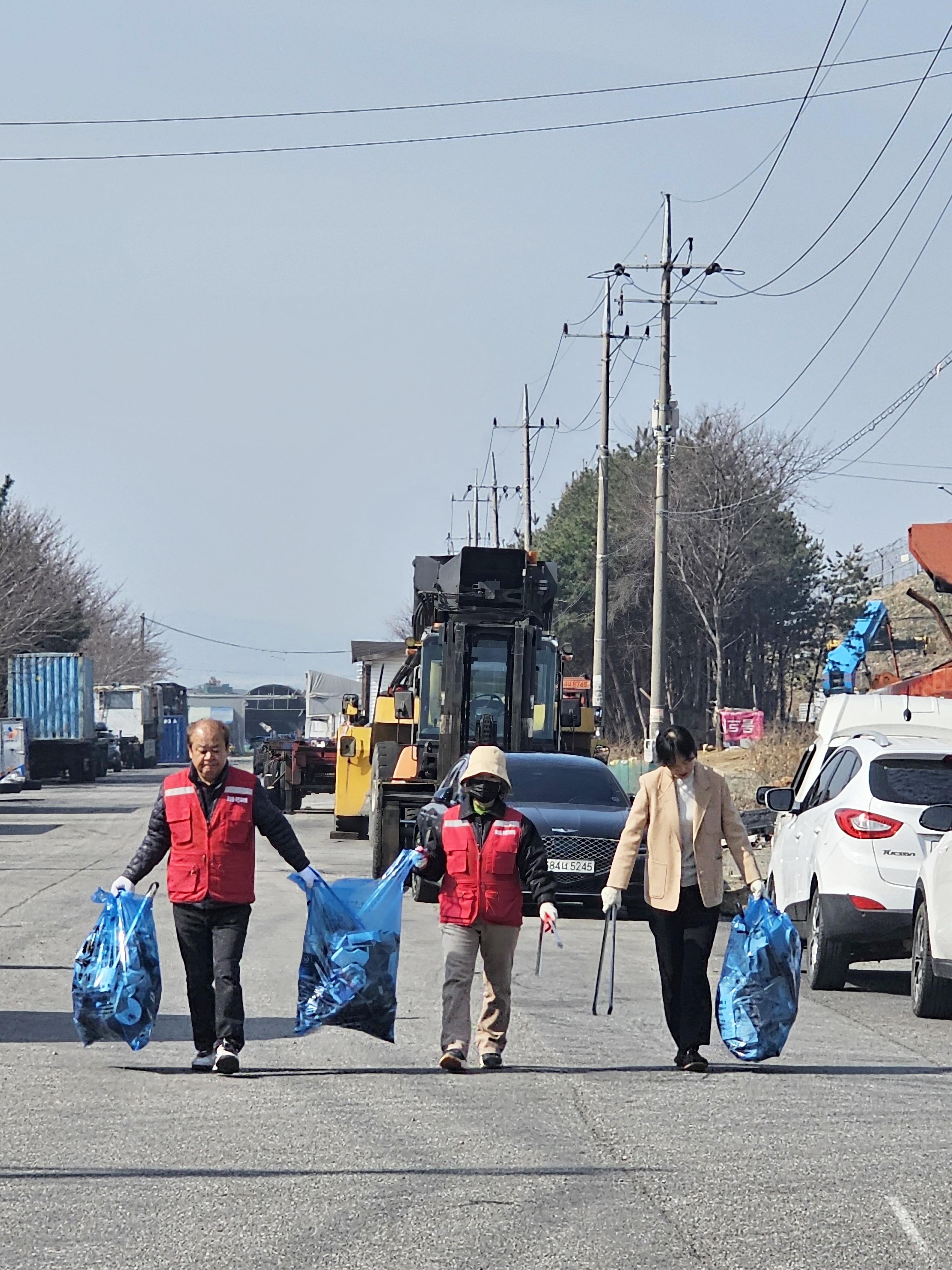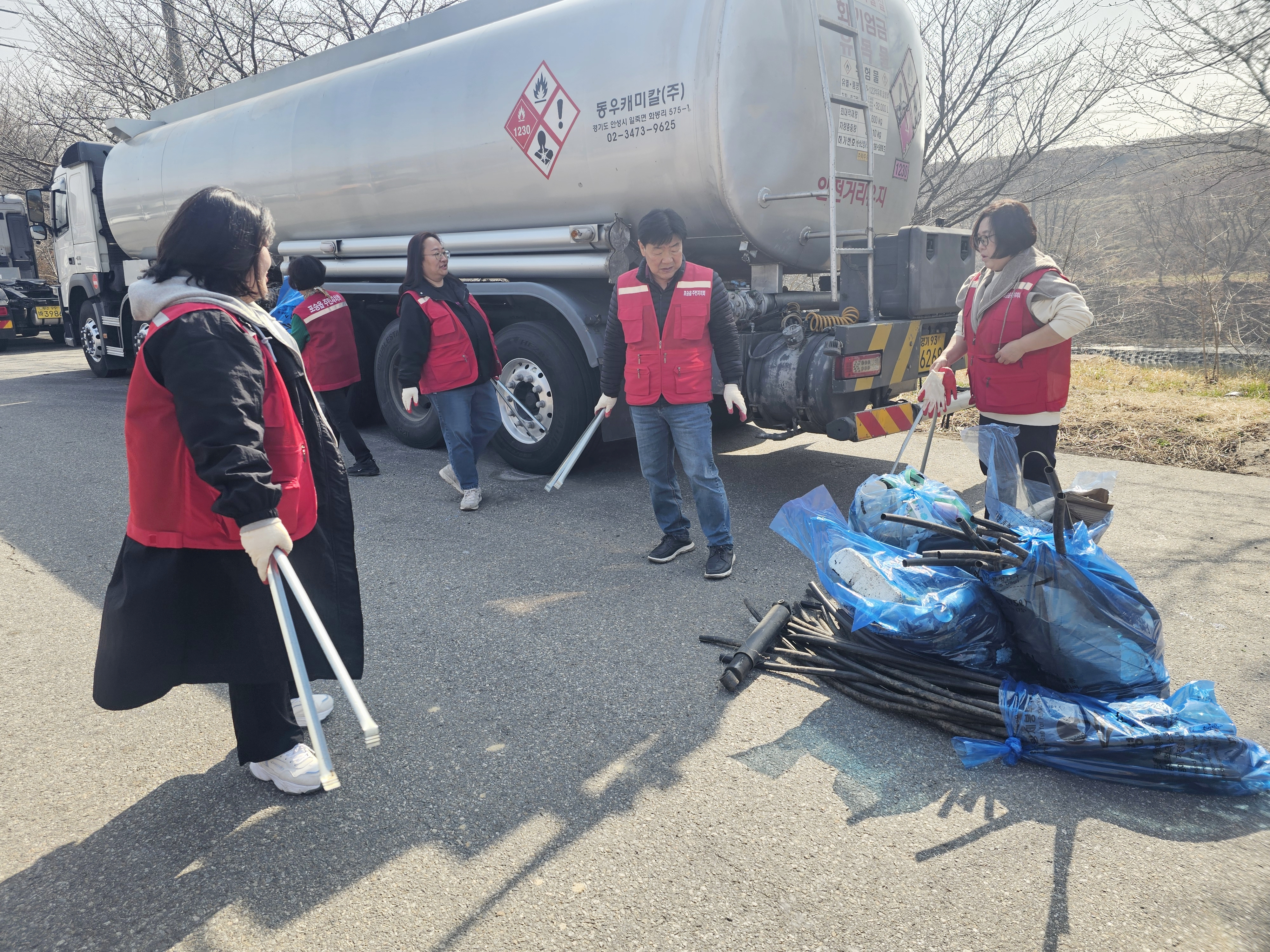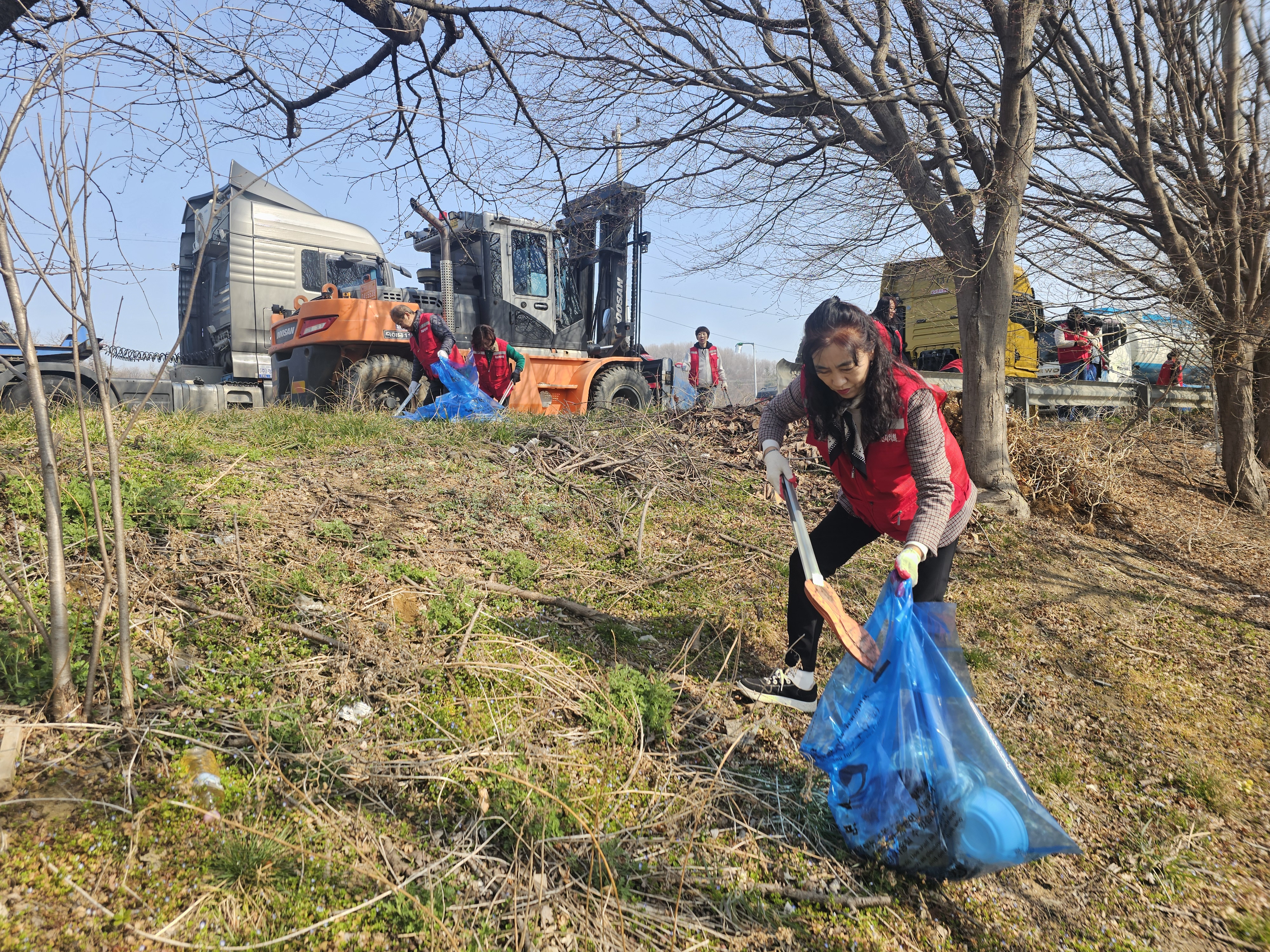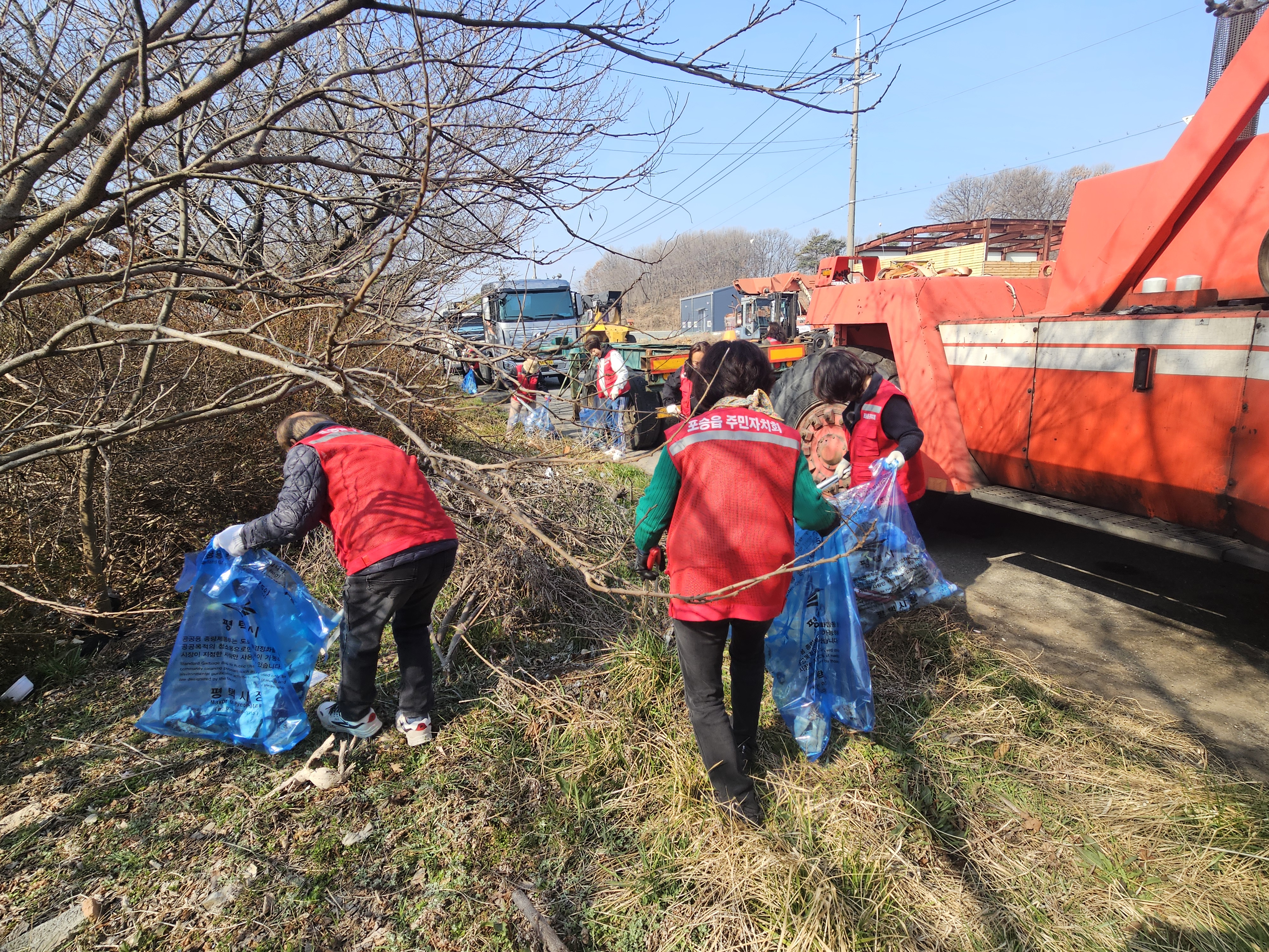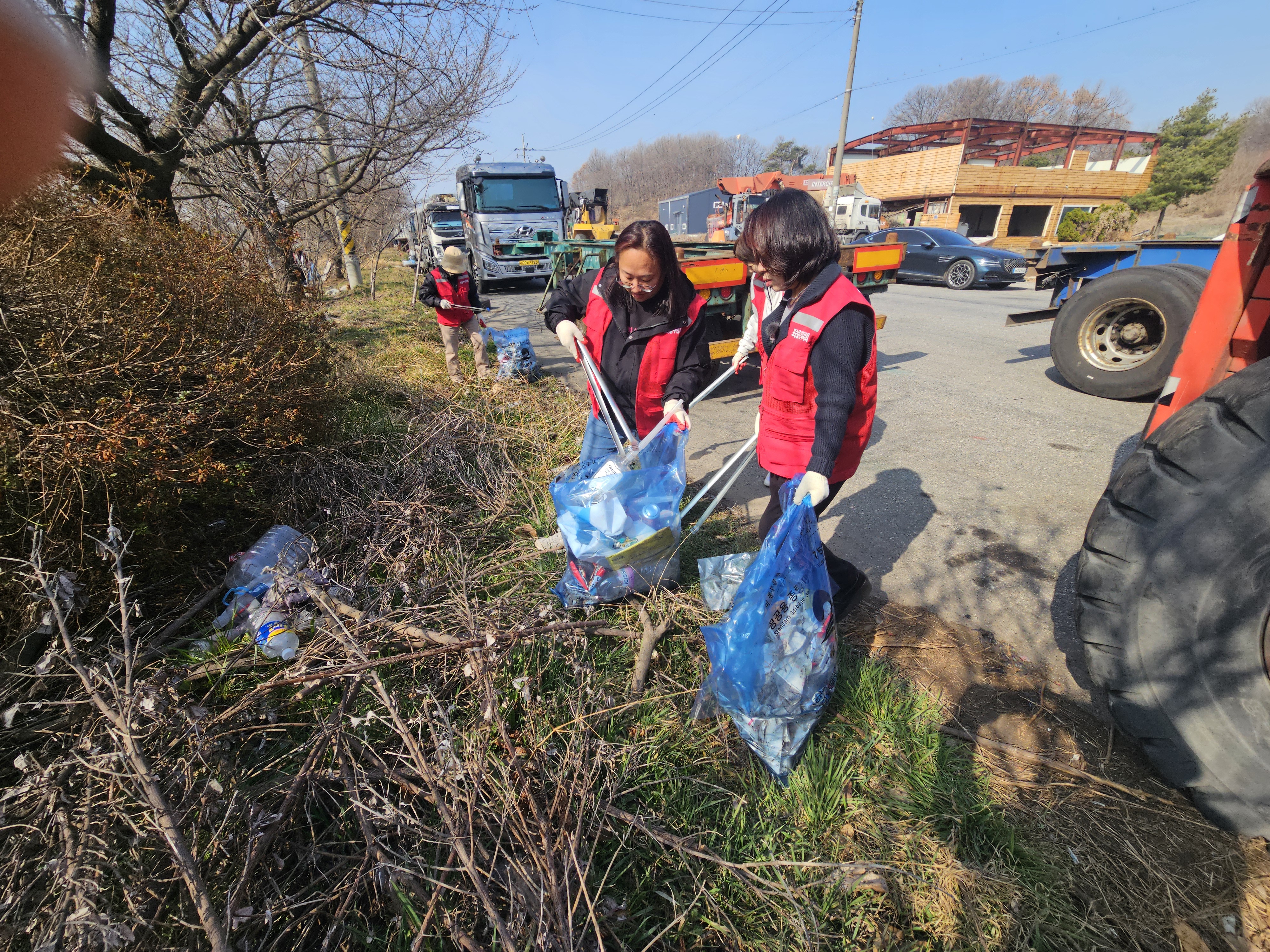 오늘 환경정화활동은 11시에 있을 주민자치월례회의 전 09:40 포승문화복지센터 앞에 집결하여 차량으로 이동, 쓰레기를 수거 했는데 겨우내 쓰레기들이 널부러져 있어 많은 양을 수거했습니다.