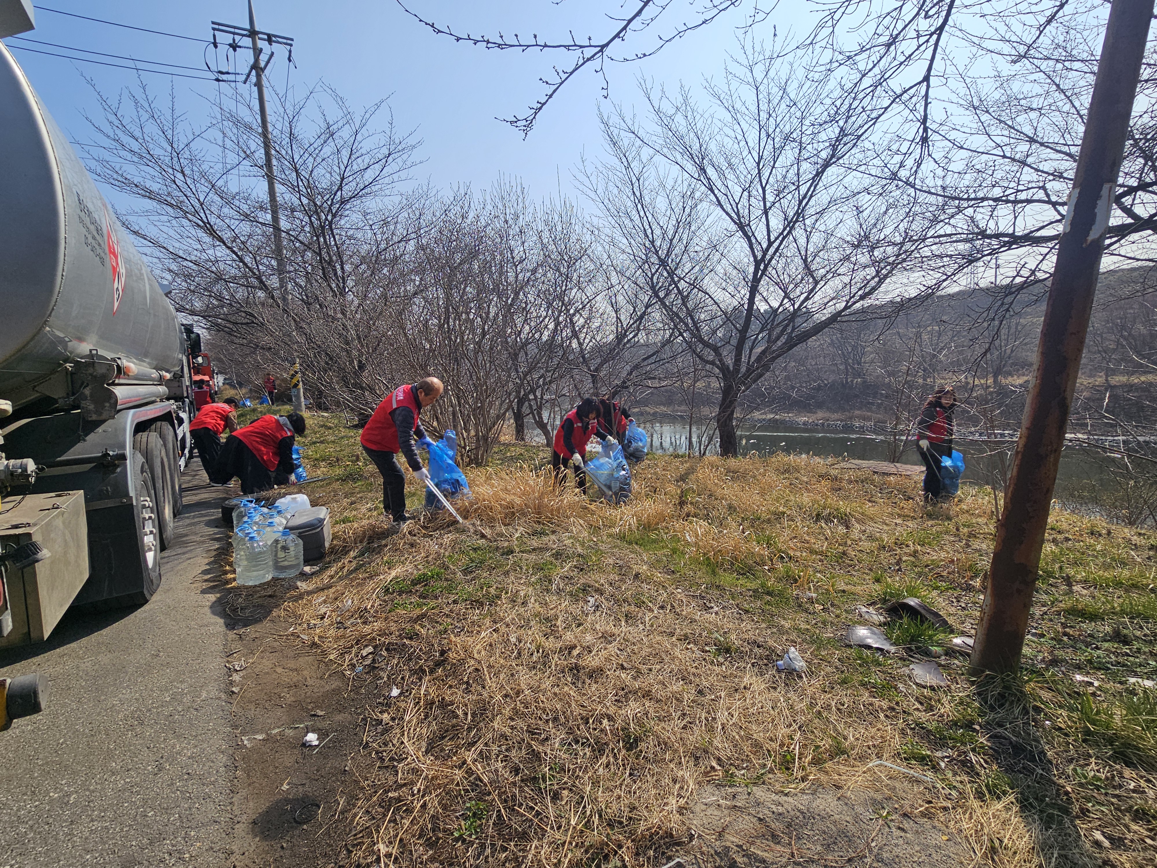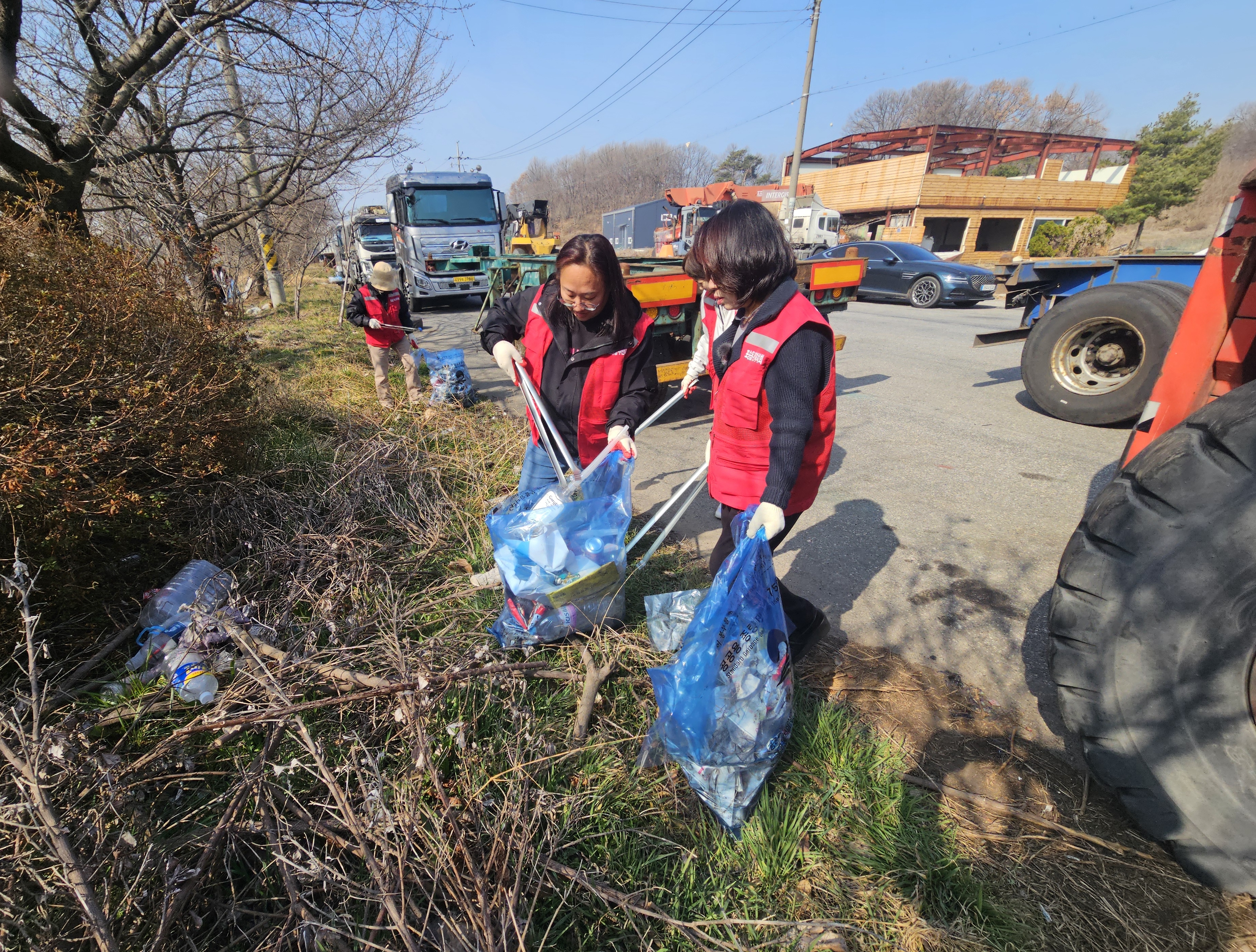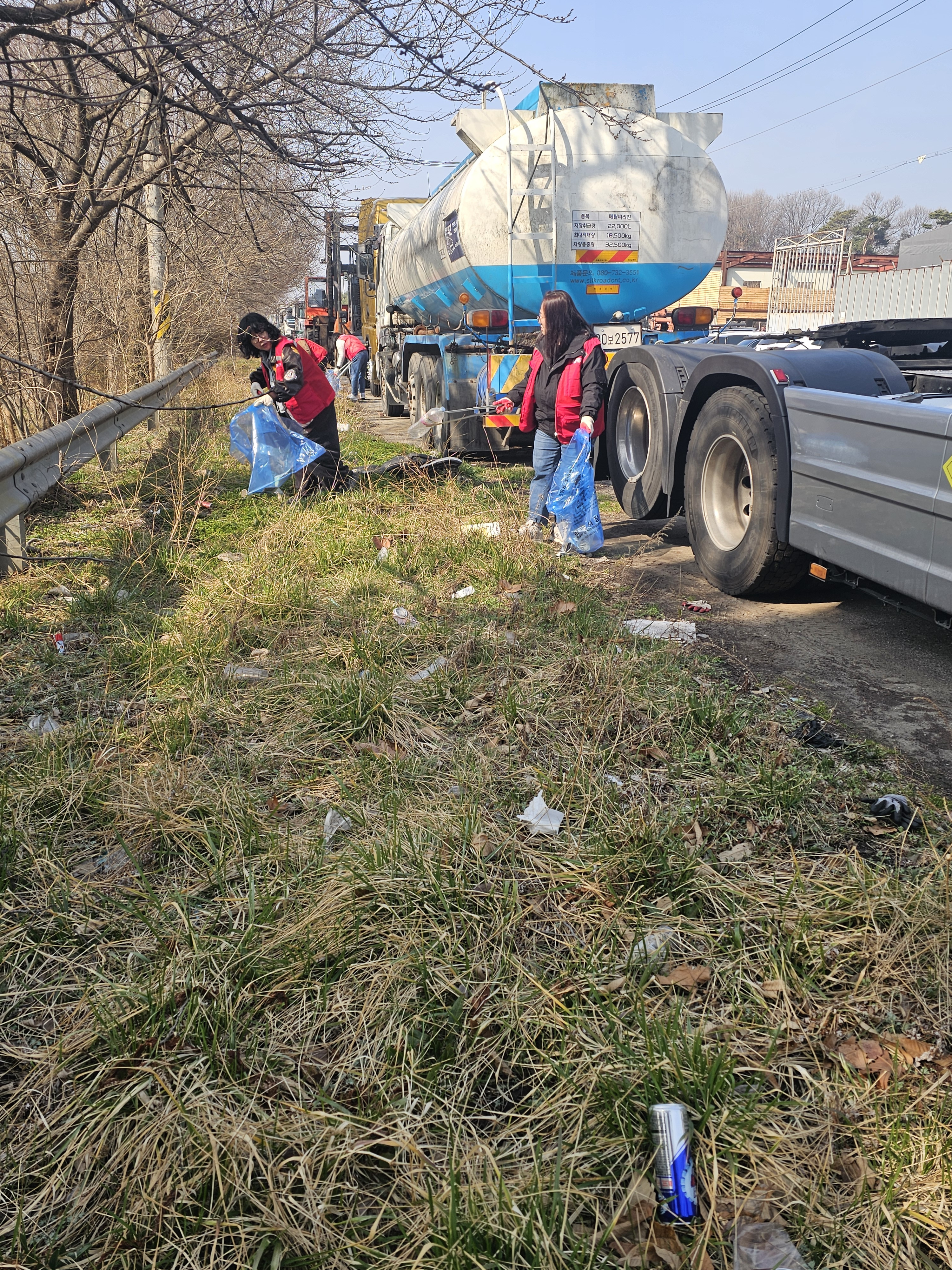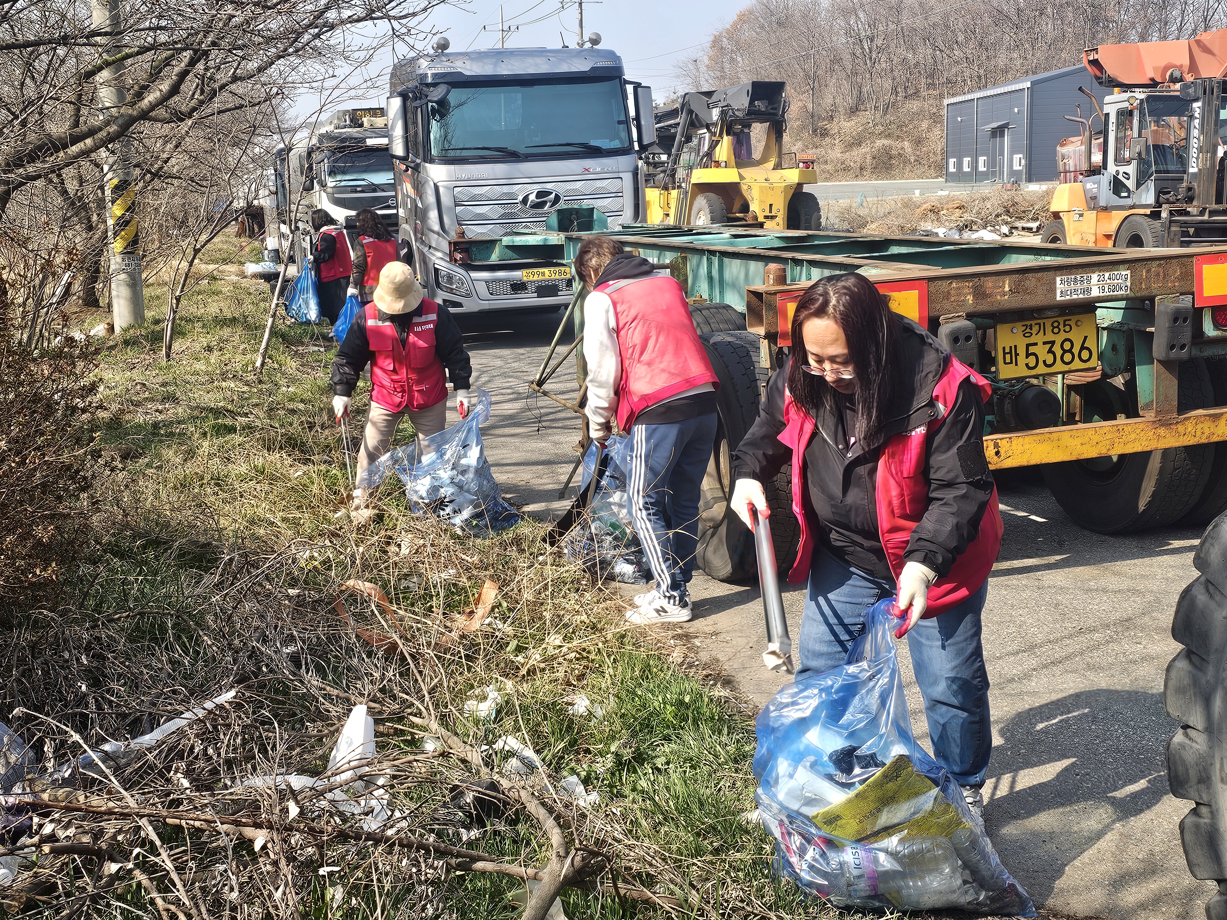 오늘 환경정화활동은 11시에 있을 주민자치월례회의 전 09:40 포승문화복지센터 앞에 집결하여 차량으로 이동, 쓰레기를 수거 했는데 겨우내 쓰레기들이 널부러져 있어 많은 양을 수거했습니다.