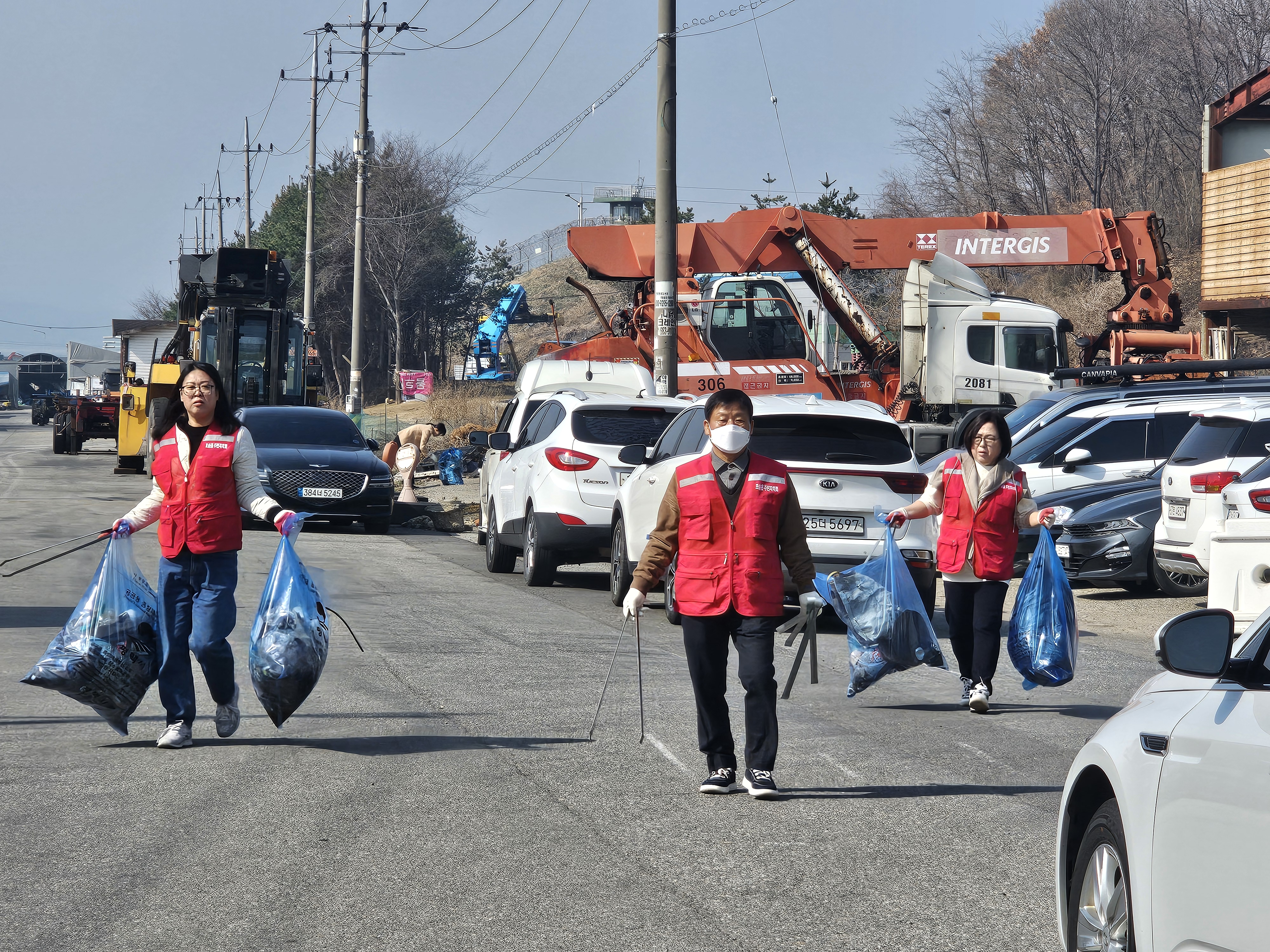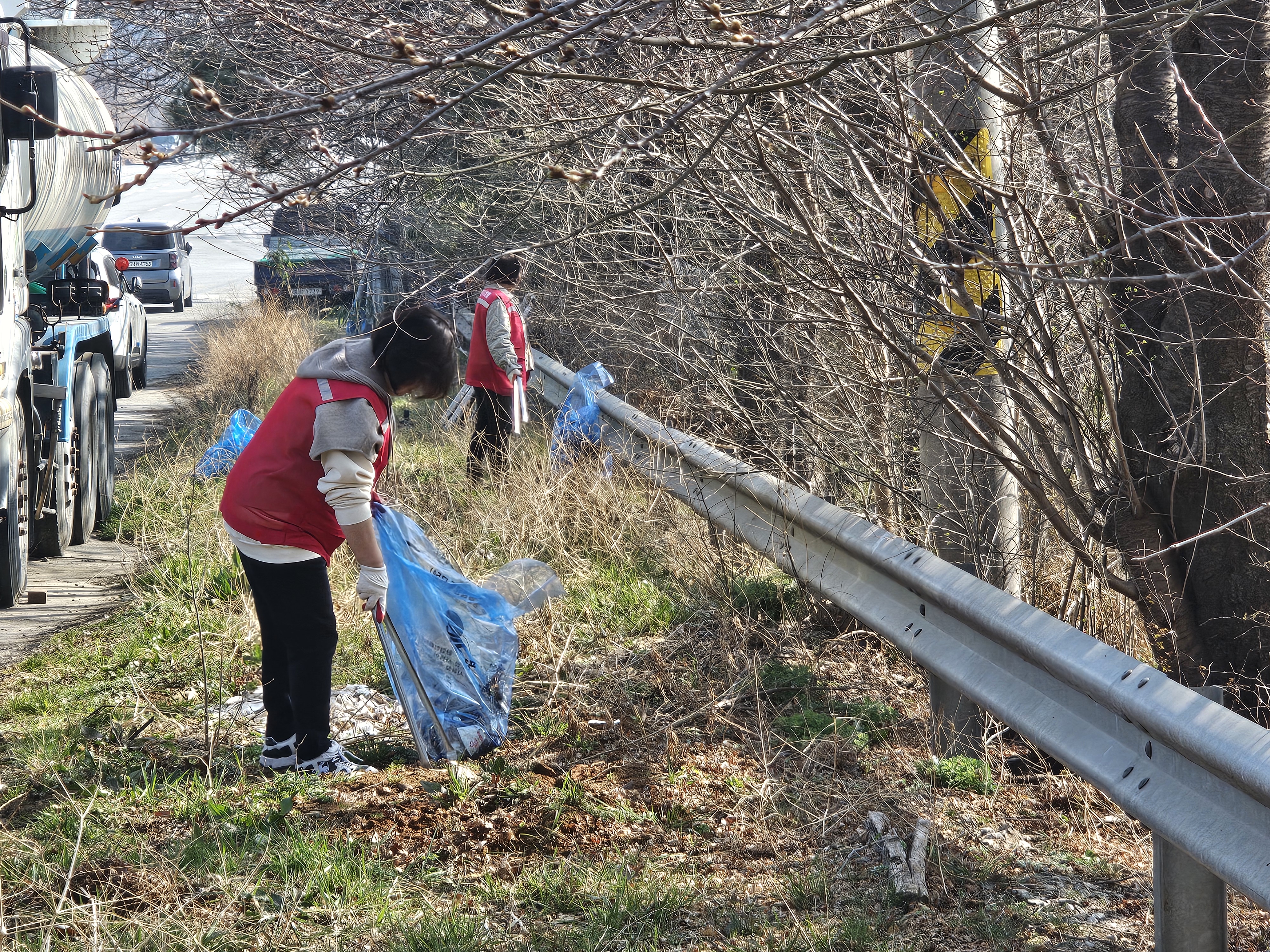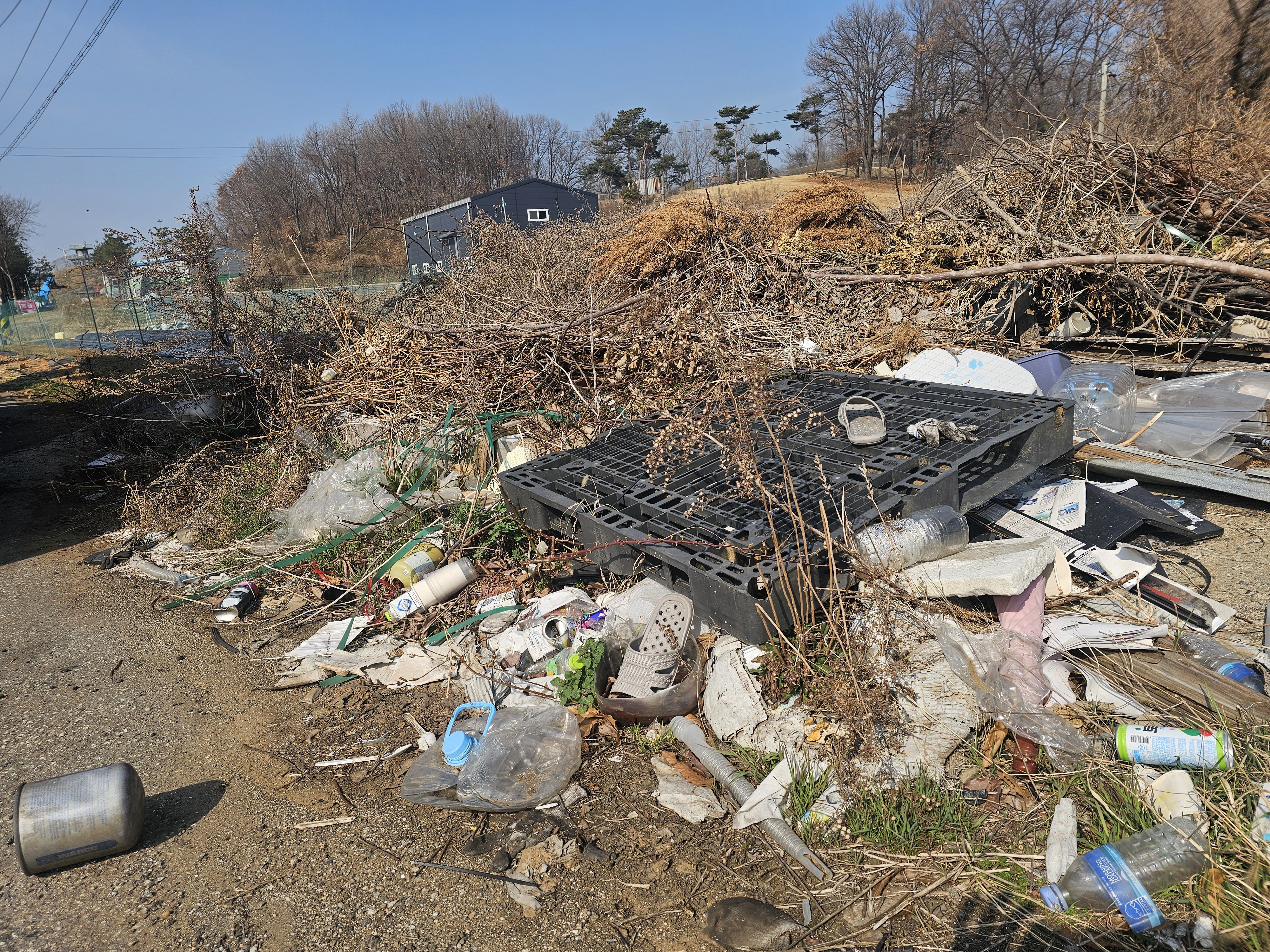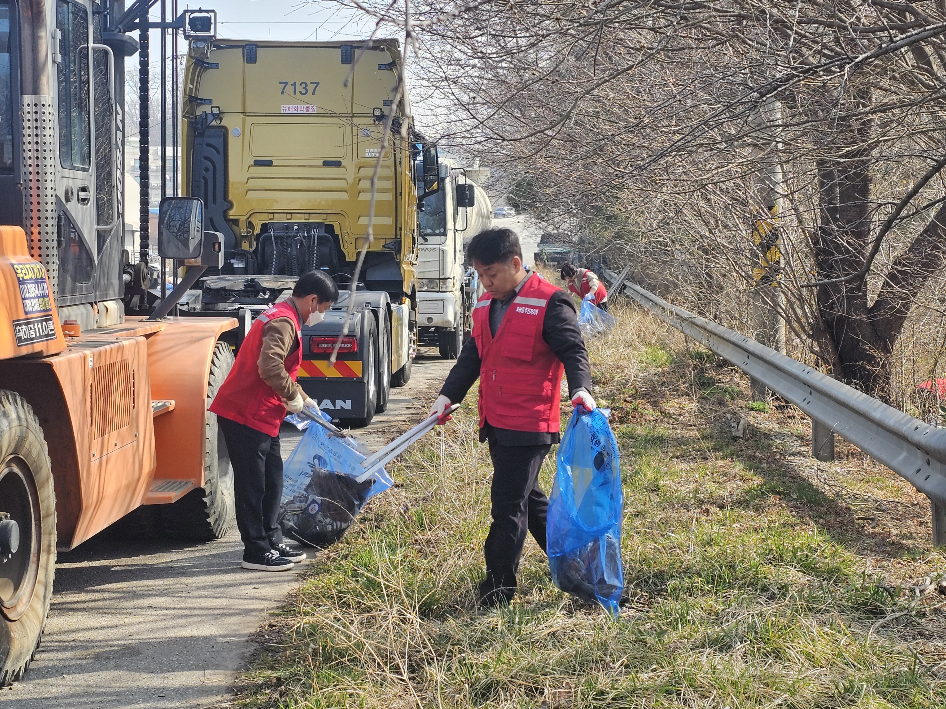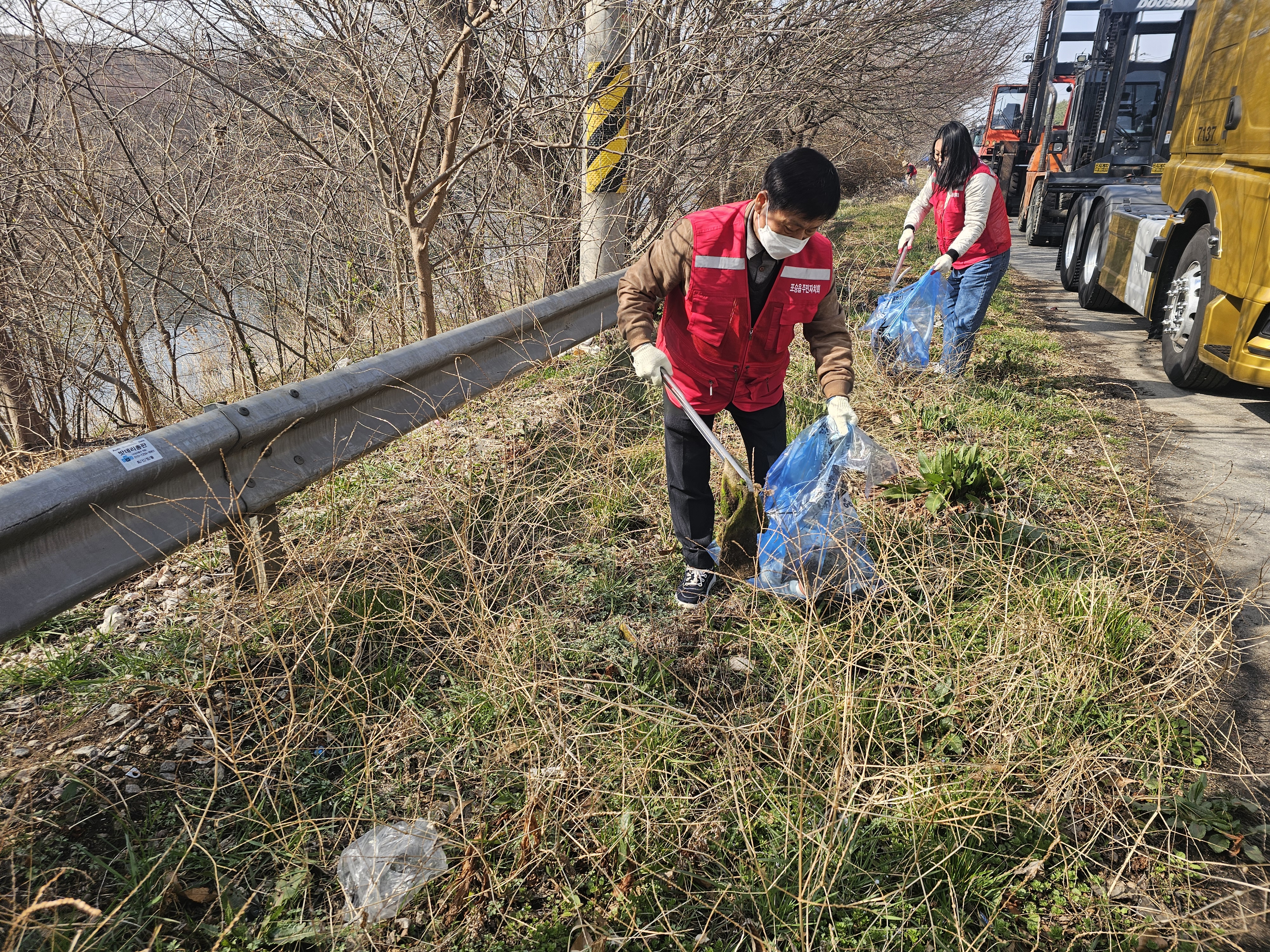 오늘 환경정화활동은 11시에 있을 주민자치월례회의 전 09:40 포승문화복지센터 앞에 집결하여 차량으로 이동, 쓰레기를 수거 했는데 겨우내 쓰레기들이 널부러져 있어 많은 양을 수거했습니다.