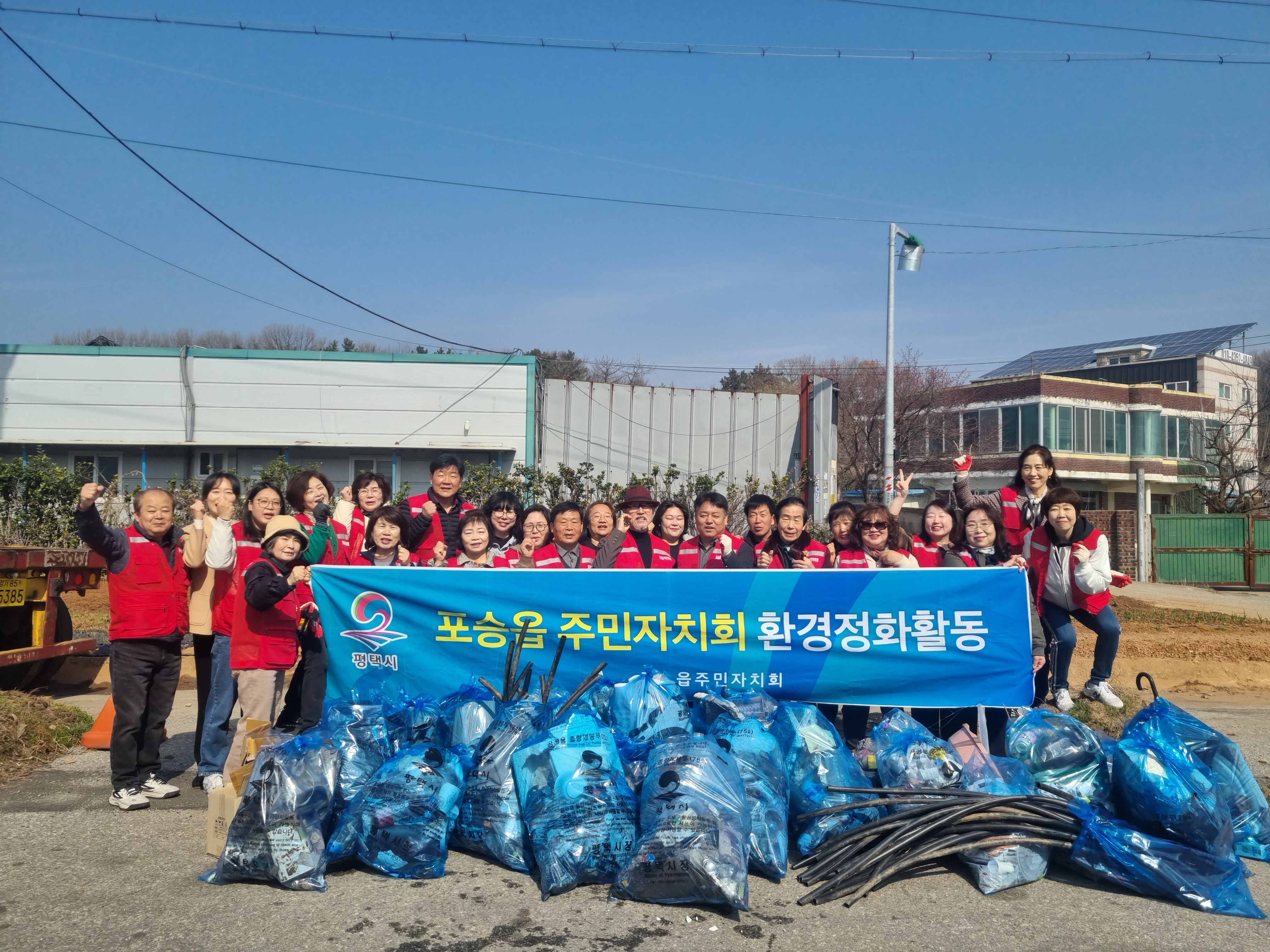 포승읍 주민자치회(회장 홍성범) 2026년 1차 환경정화활동이 3월 23일 10:00 포승읍 평택항로 373(원정3리) 도로주변에서 1차 환경정화활동을 하고 쓰레기 1톤차량 1대분을 수거했습니다.