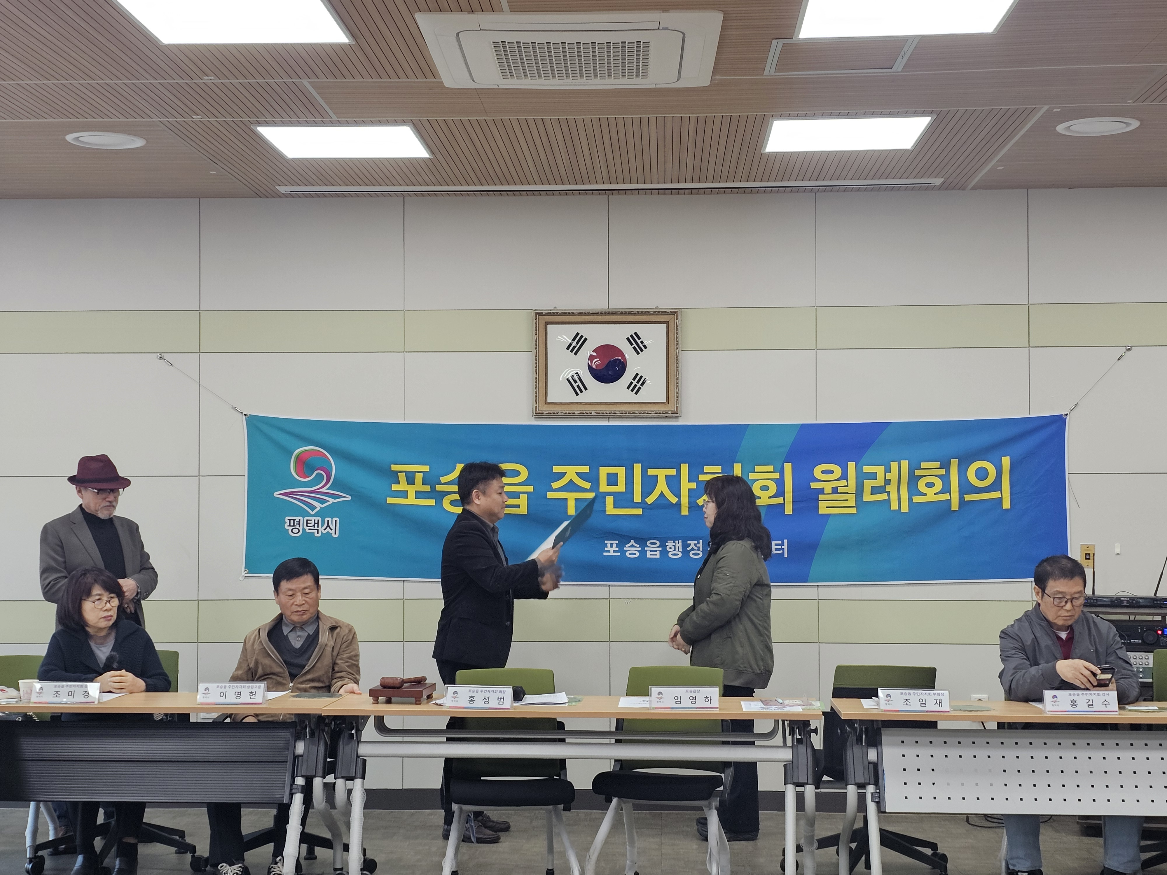 포승읍 주민자치회(회장 홍성범)는 2026년 3월 23일 포승문화센터 2층 주민자치회의실에서 3월 월례회를 갖고 아래 사안을 논의 결정했습니다.