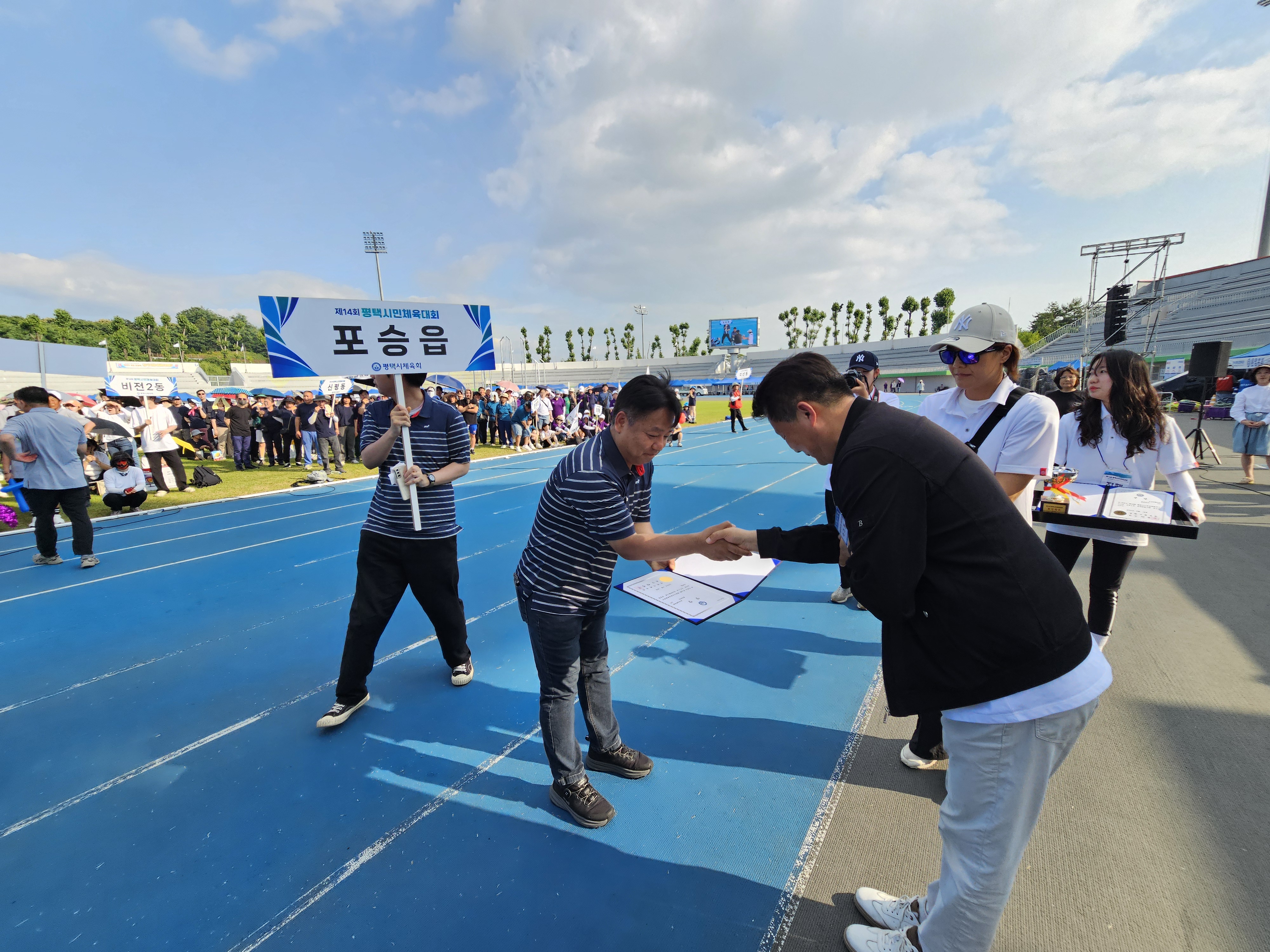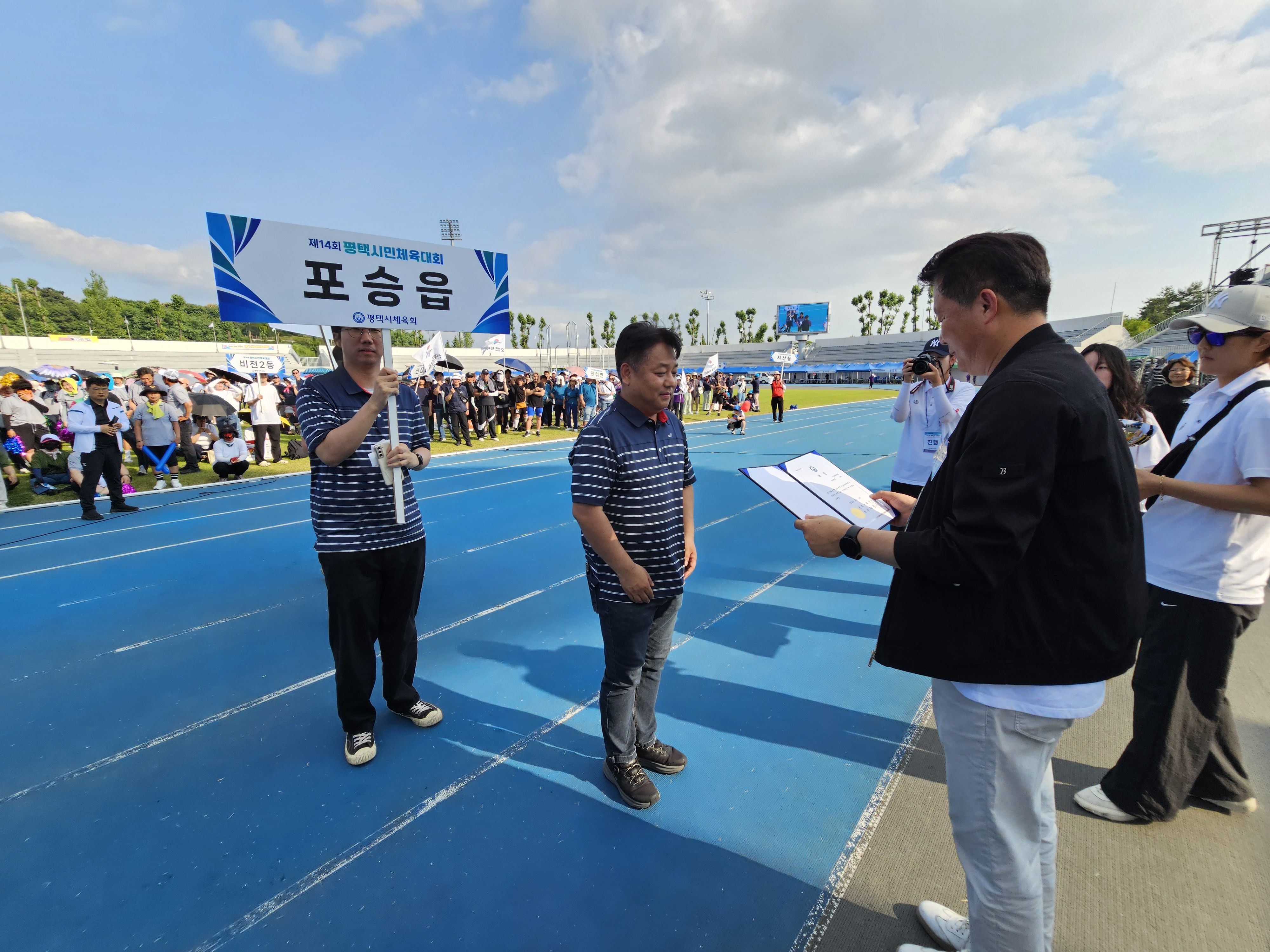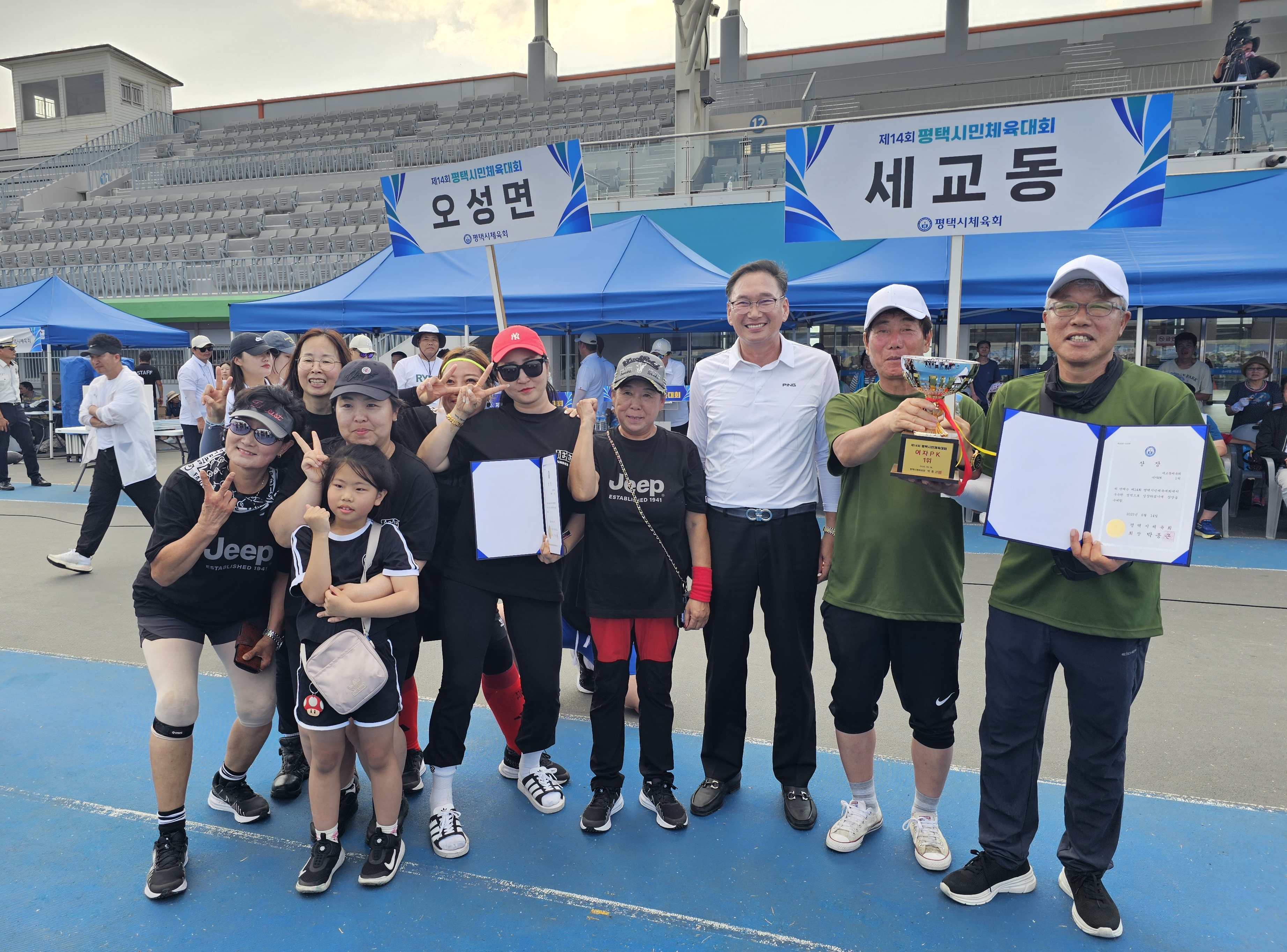 제14회 평택시민체육대회가 2025년 6월 14일 오전 9시 평택공설운동장에서 개최되어, 25개 읍면동 선수들이 열띤 경쟁을 펼치며 공설운동장을 후끈하게 달궜습니다.
