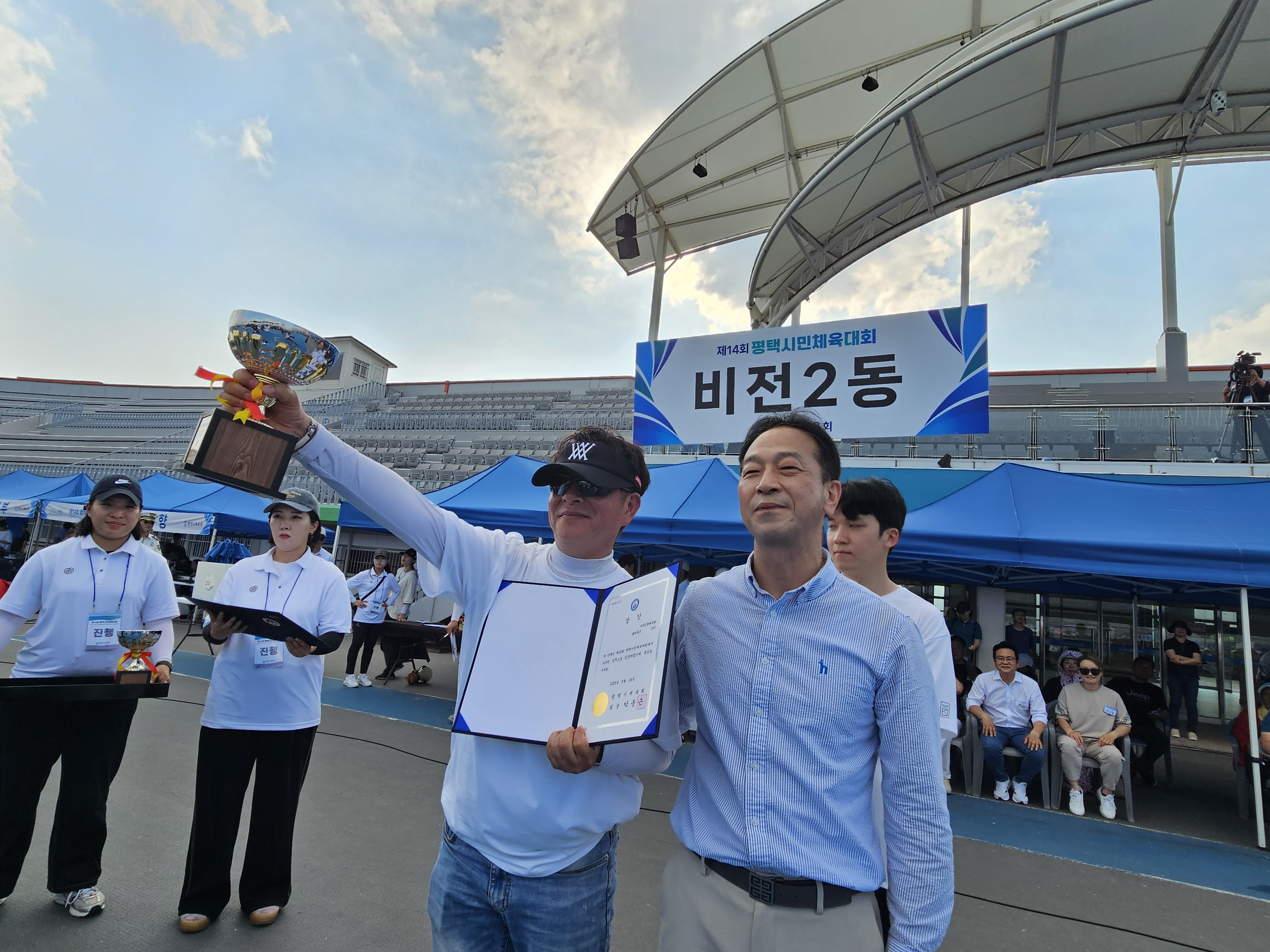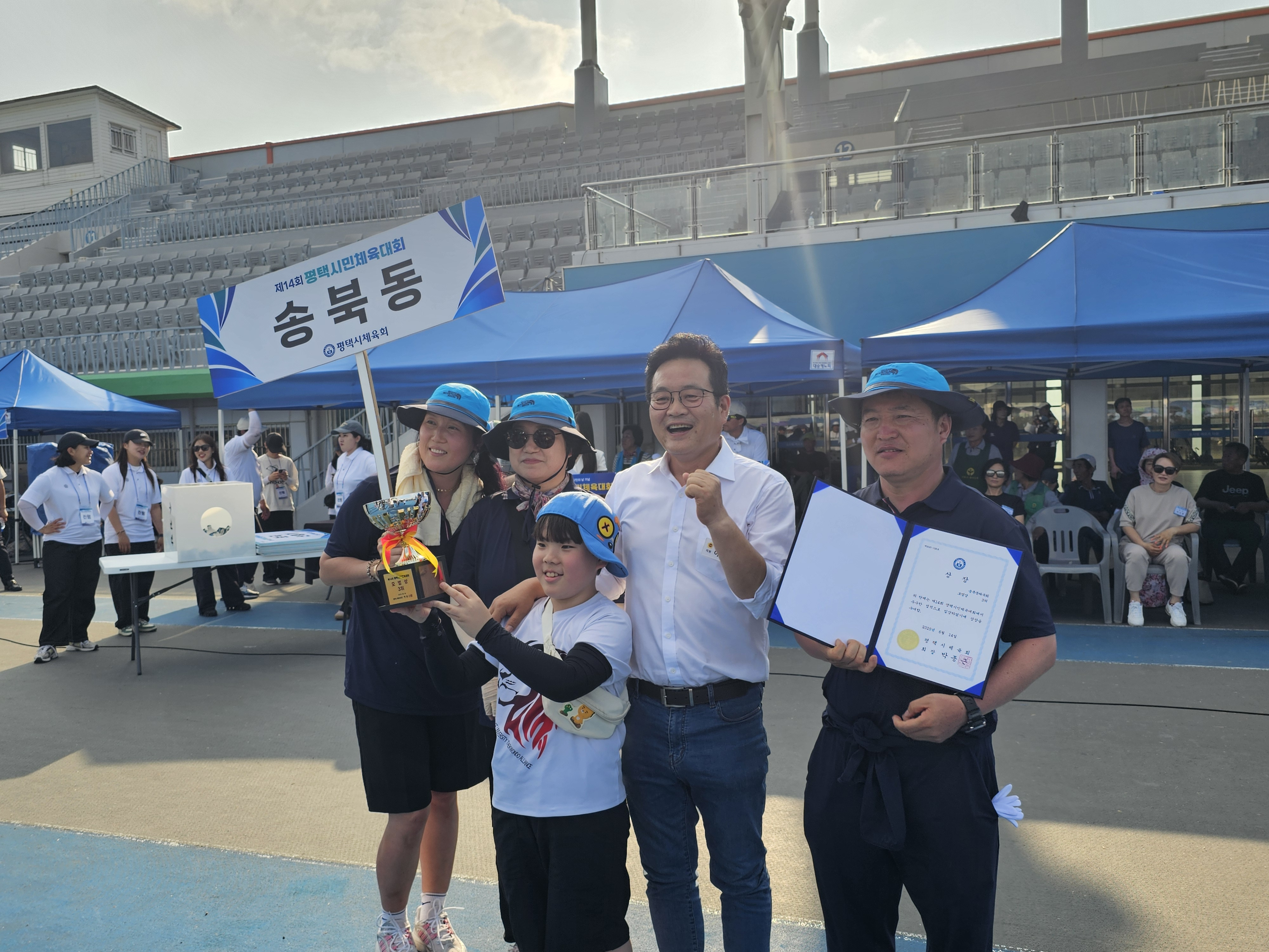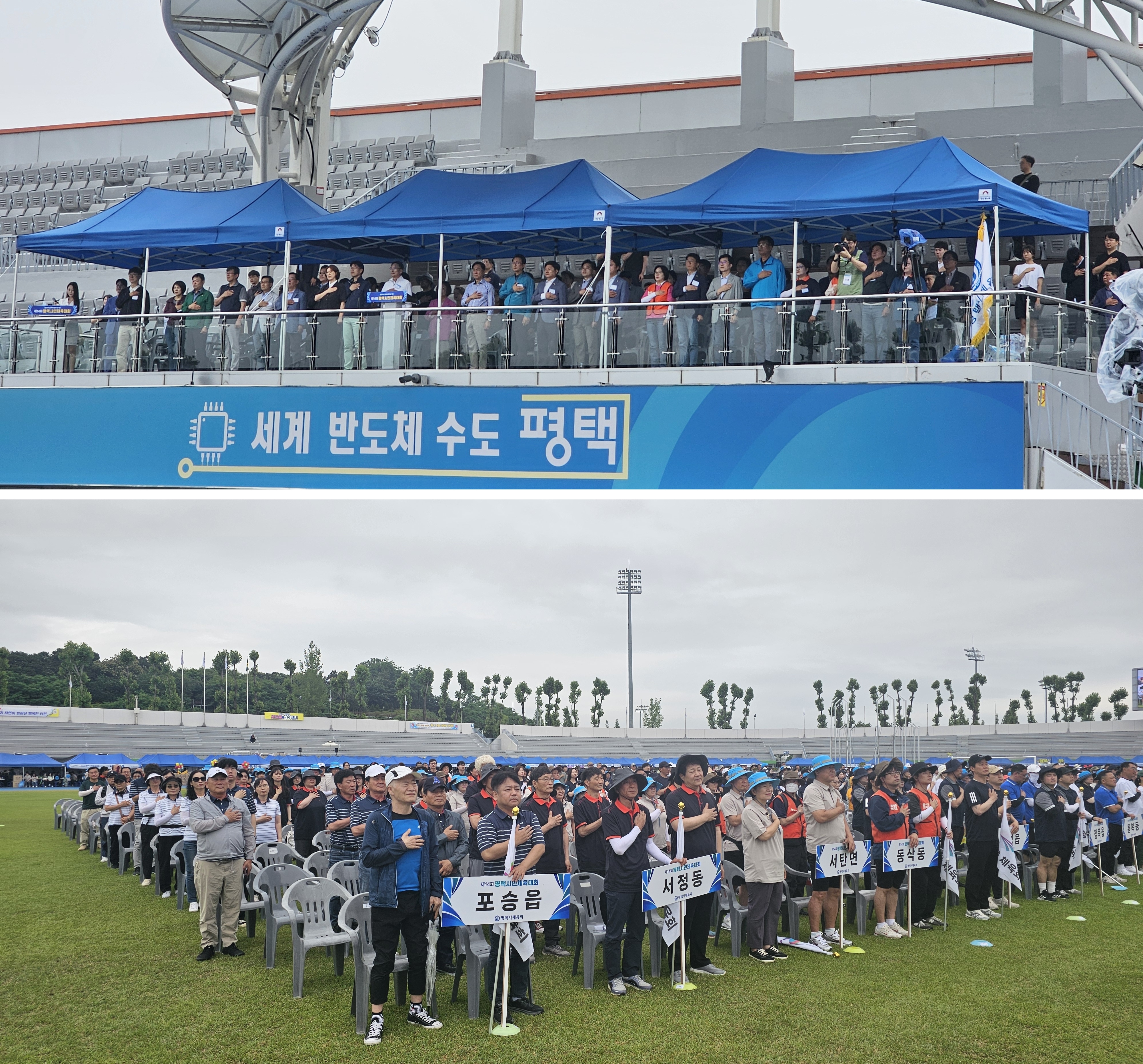 제14회 평택시민체육대회가 2025년 6월 14일 오전 9시 평택공설운동장에서 개최되어, 25개 읍면동 선수들이 열띤 경쟁을 펼치며 공설운동장을 후끈하게 달궜습니다.