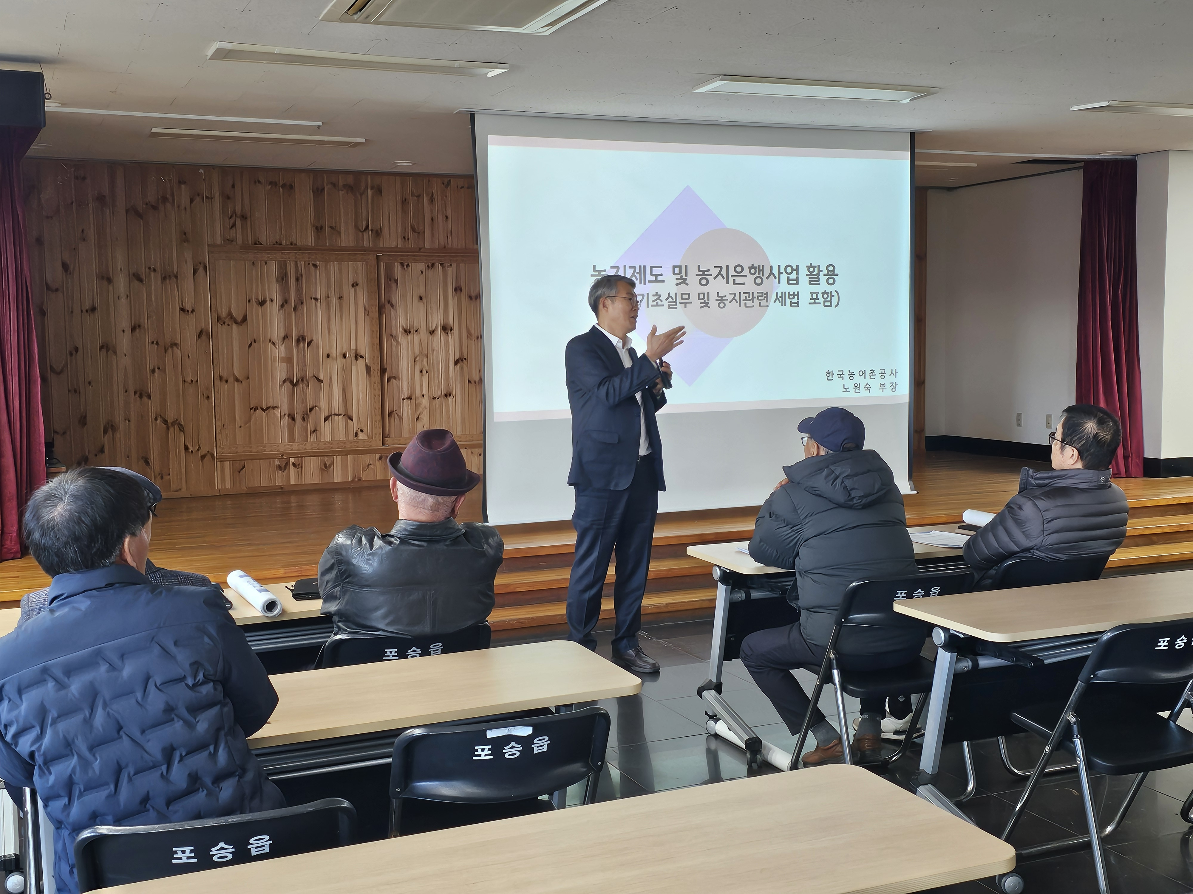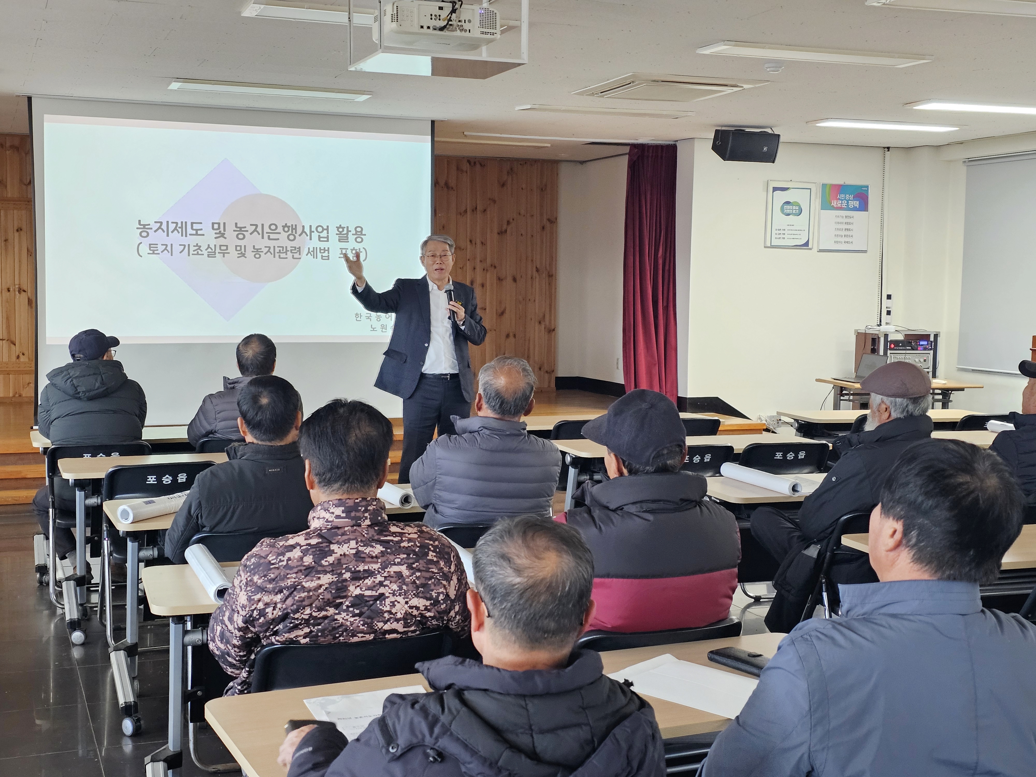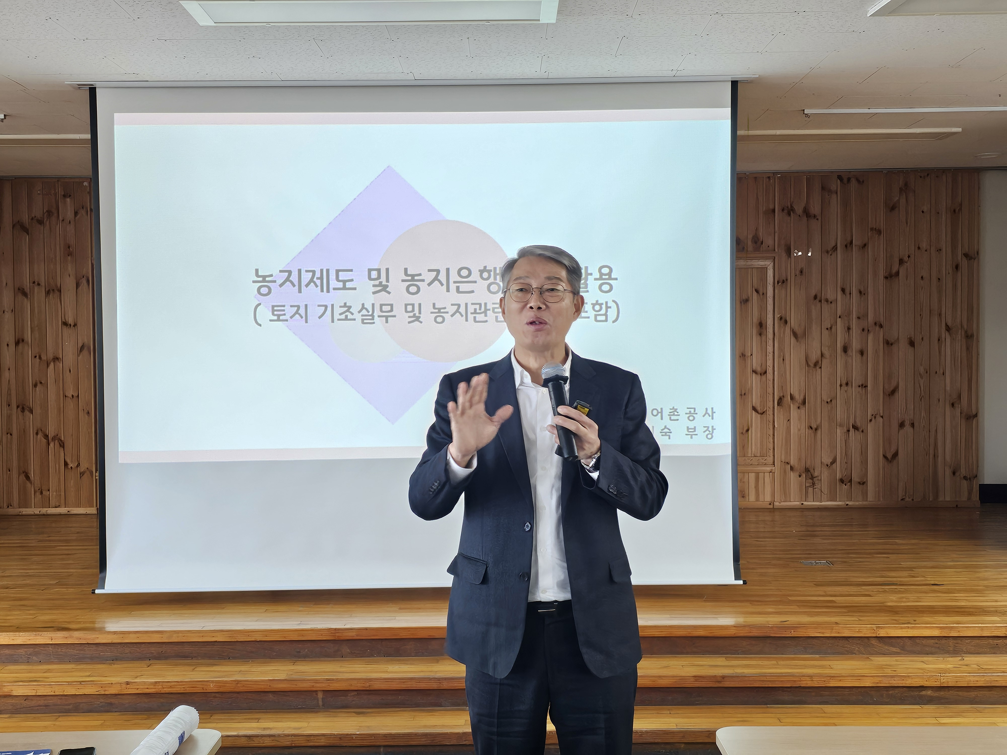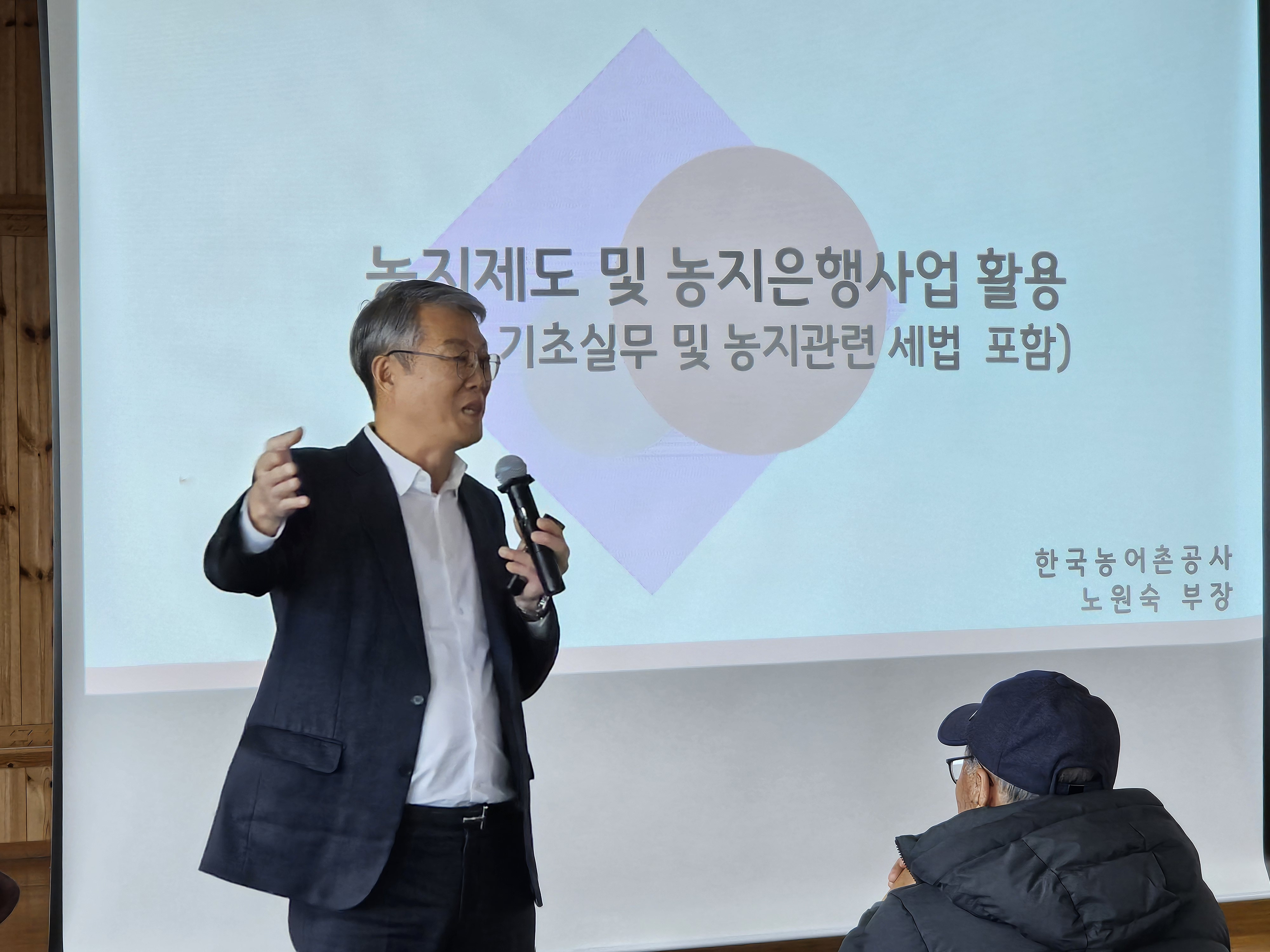 총회 마치고 한국농어촌공사 노원숙 부장의 농지제도및 농지은행사업 활용(토지 기초실무 및 농지관련세법 포함)에 관한 강연 경청