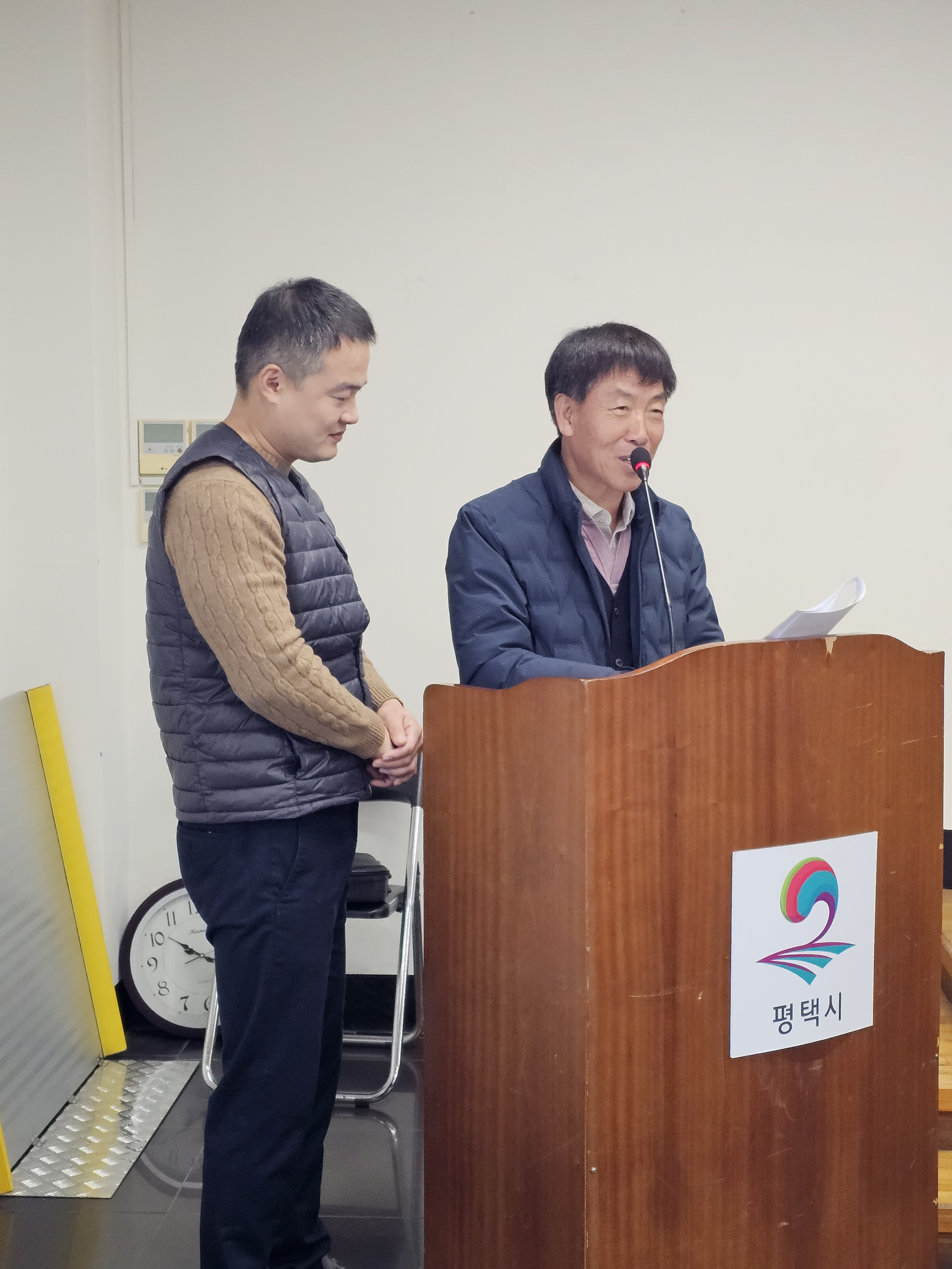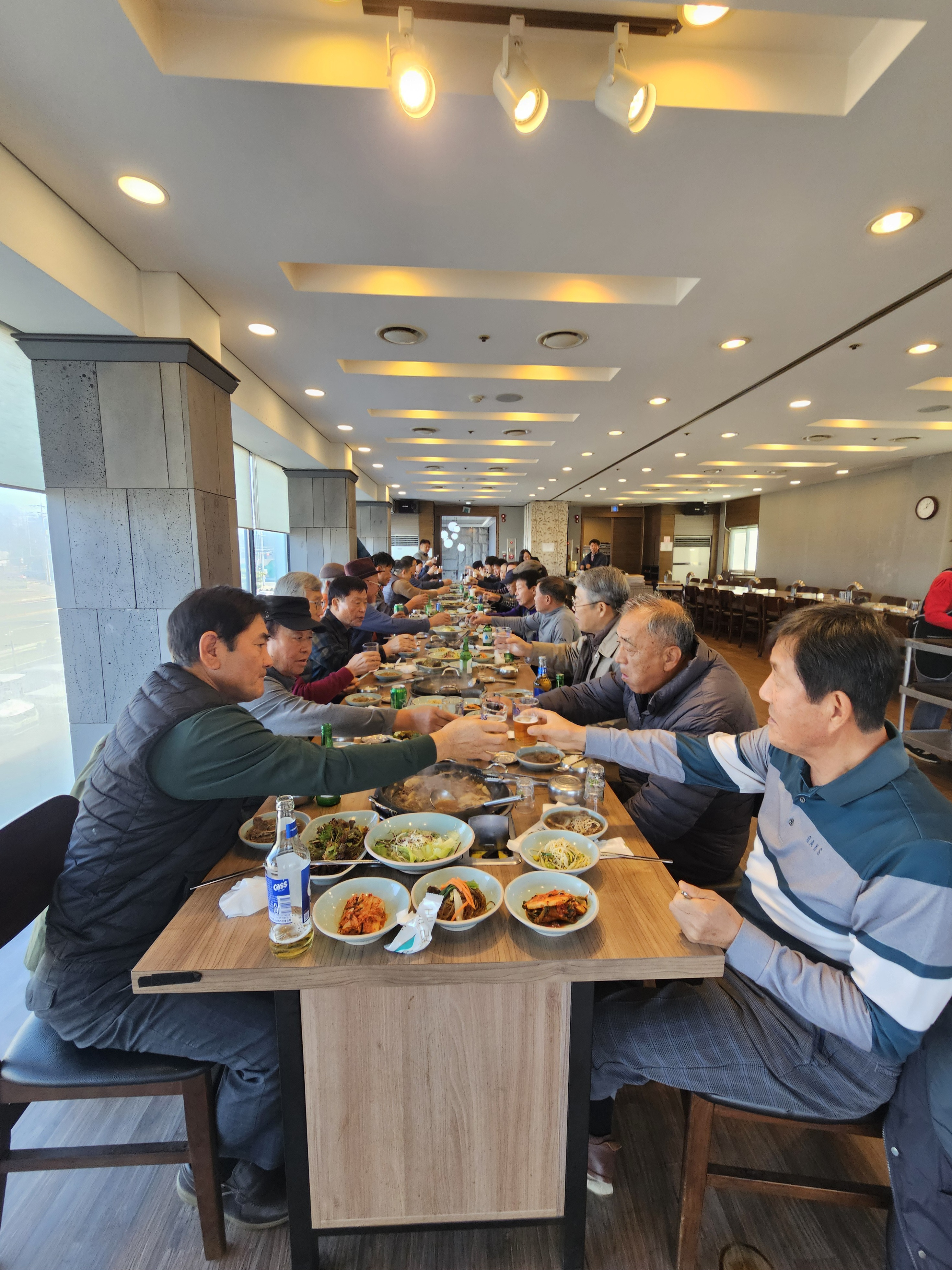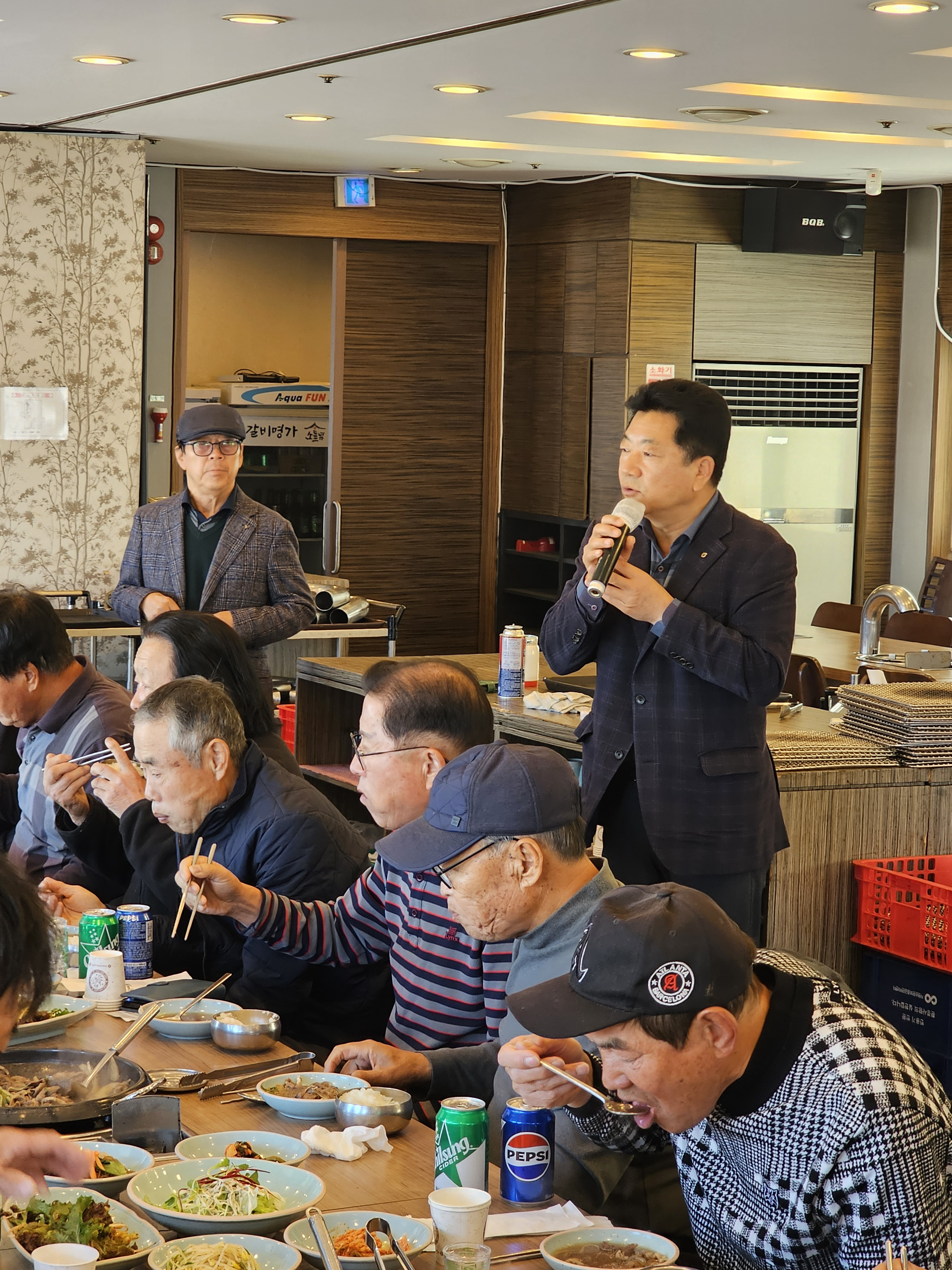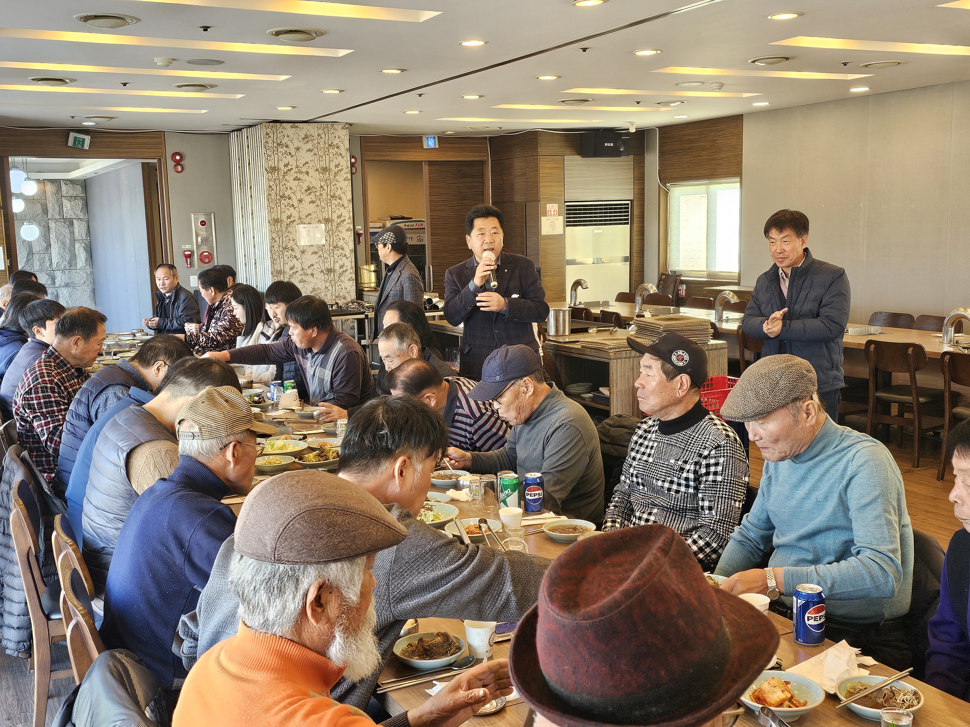 안중농협 이계필 조합장의 덕담 인사를 듣고, 화기애애하게 오찬을 즐기며 한 해를 마무리했습니다.