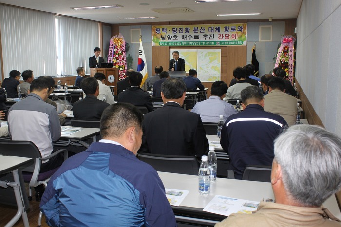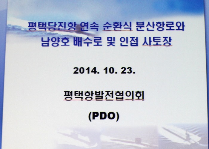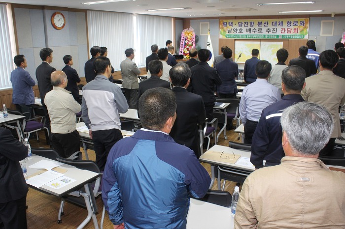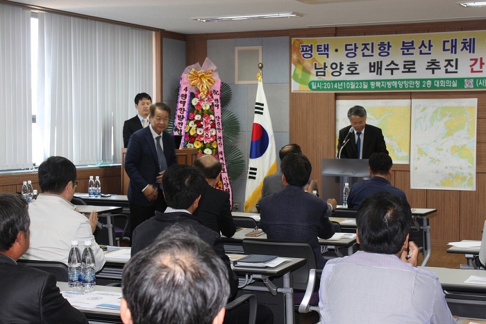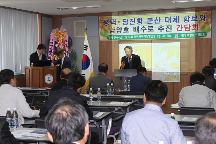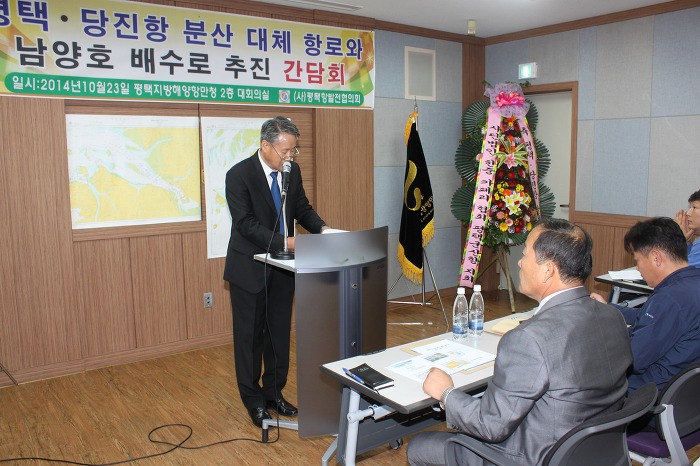 연간 1억톤이상을 처리하는 대형항만으로 성장한 평택˙당진항의 취약한 항계부근 항로개선을 위한 간담회가, (사)평택항발전협의회 주관으로 2014년 10월 23일 오후 2시 평택지방해양항만청 2층 대회의실에서, 평택항발전협의회 및 평택항 입출항 업체 관계자, 최헌화 포승읍장을 비롯한 포승지역 지도층 인사 등 50여명이 참석한 가운데 개최되었습다.