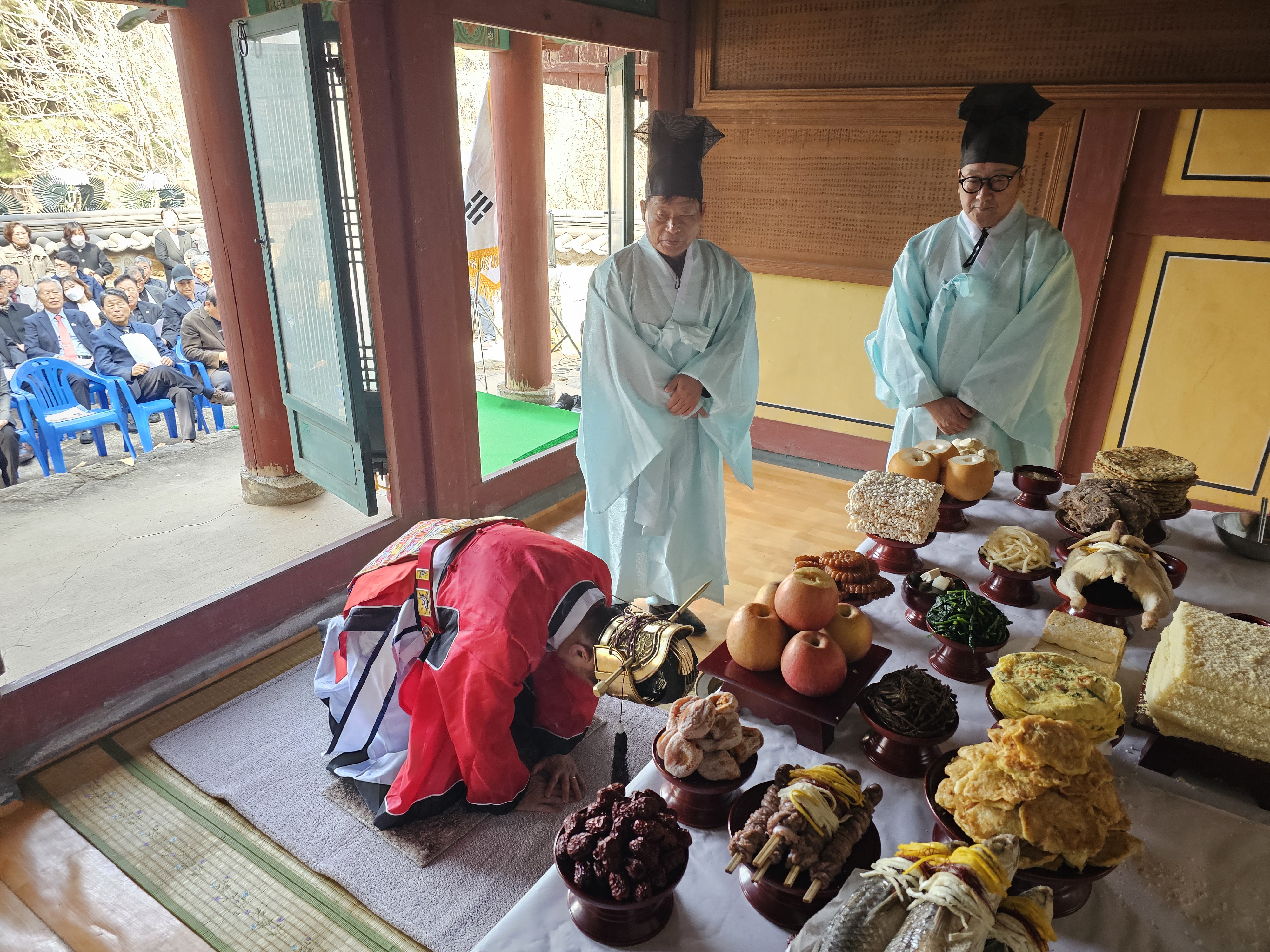 이민대 평택대종회 운영위원의 집례로 시작된 추모제향제는, 해군2함대 군악대의 연주에 마춰 국민의례와 추모곡 연주에 이어,이계은 확충사유적관리위원장의 내빈소개, 약사보고, 헌화 및 헌작 순으로 진행됐습니다.